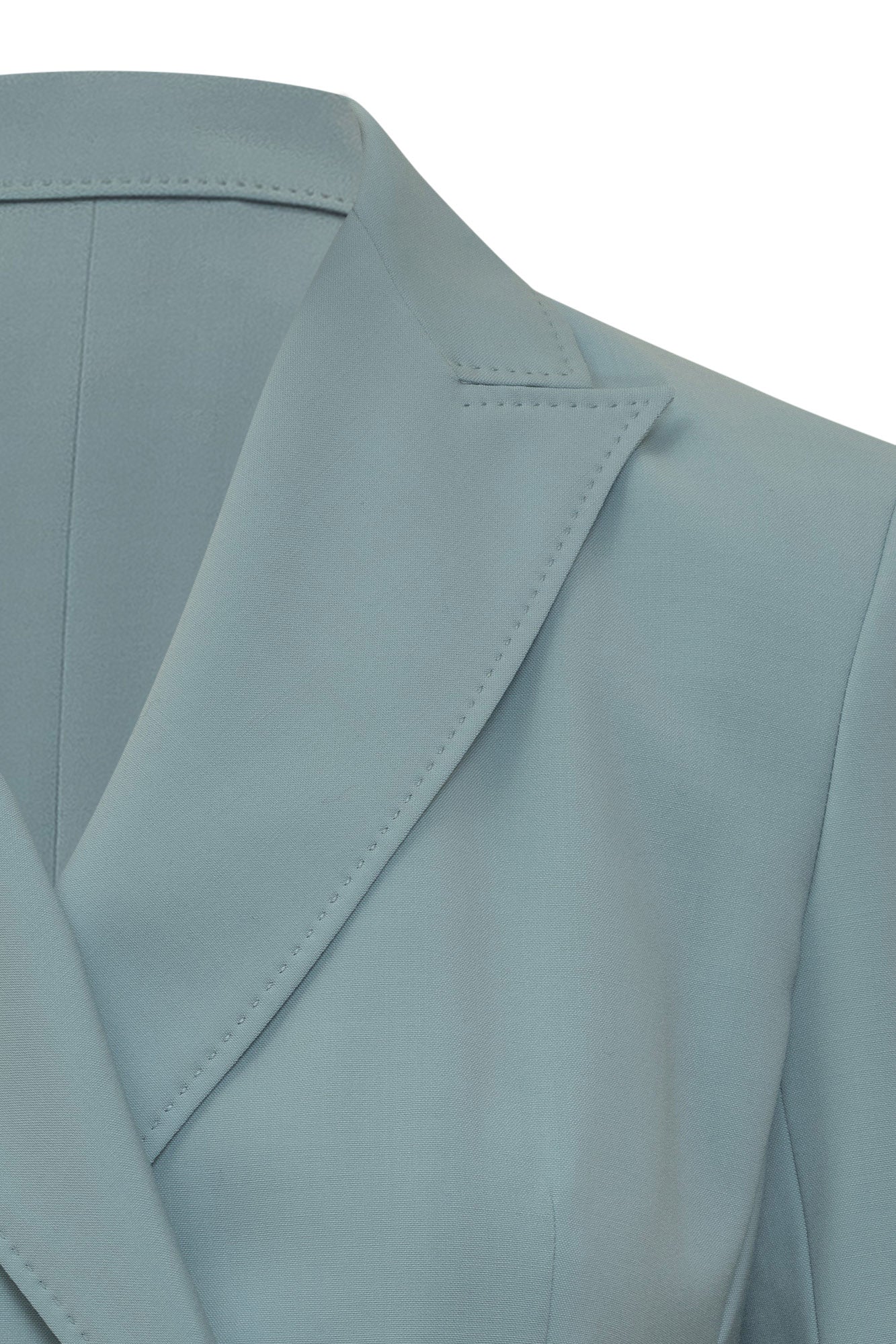 Lapel collar. Button closure. Patch pockets.