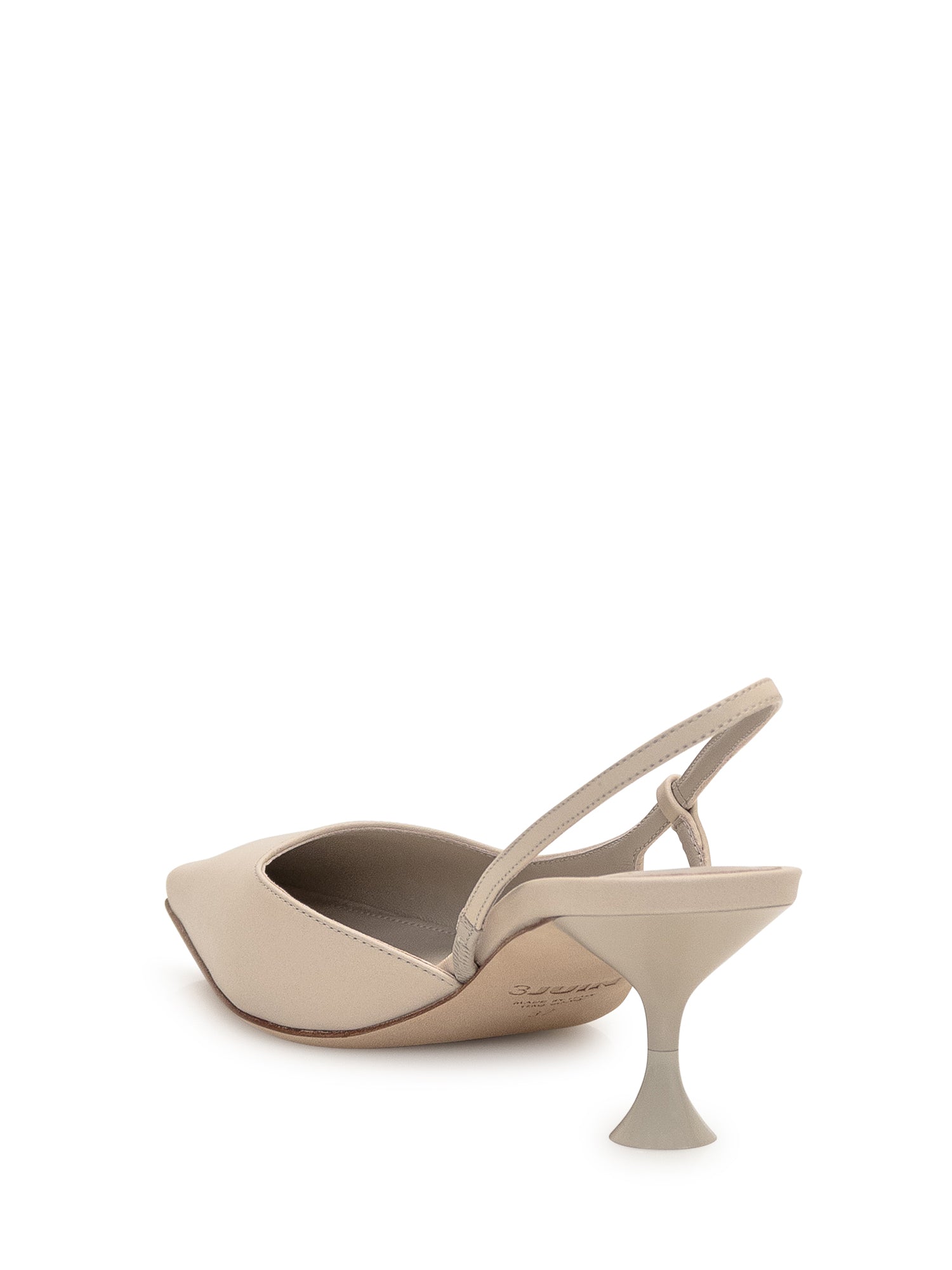 Beige leather slingback. Square toe. Flared heel.
