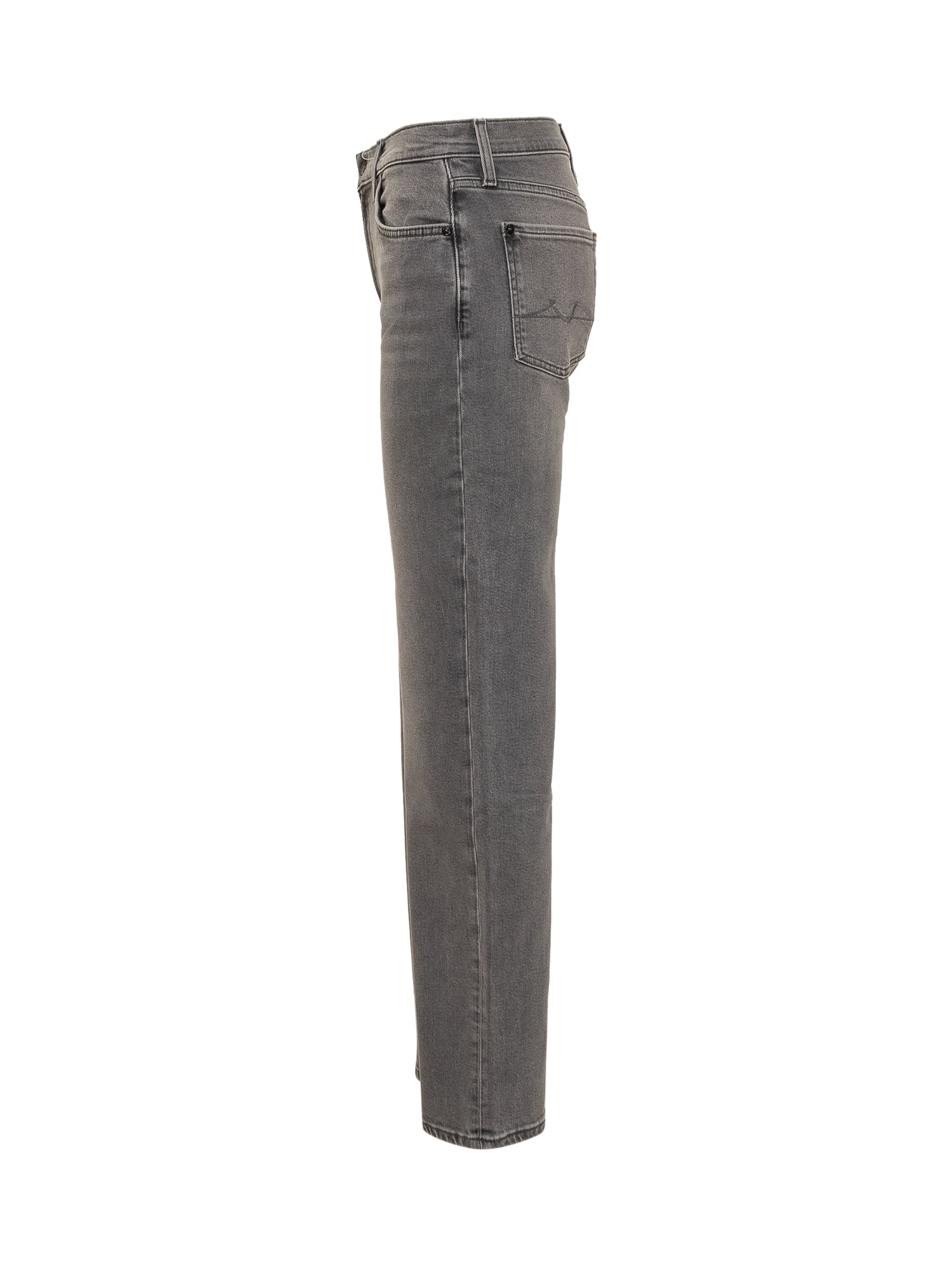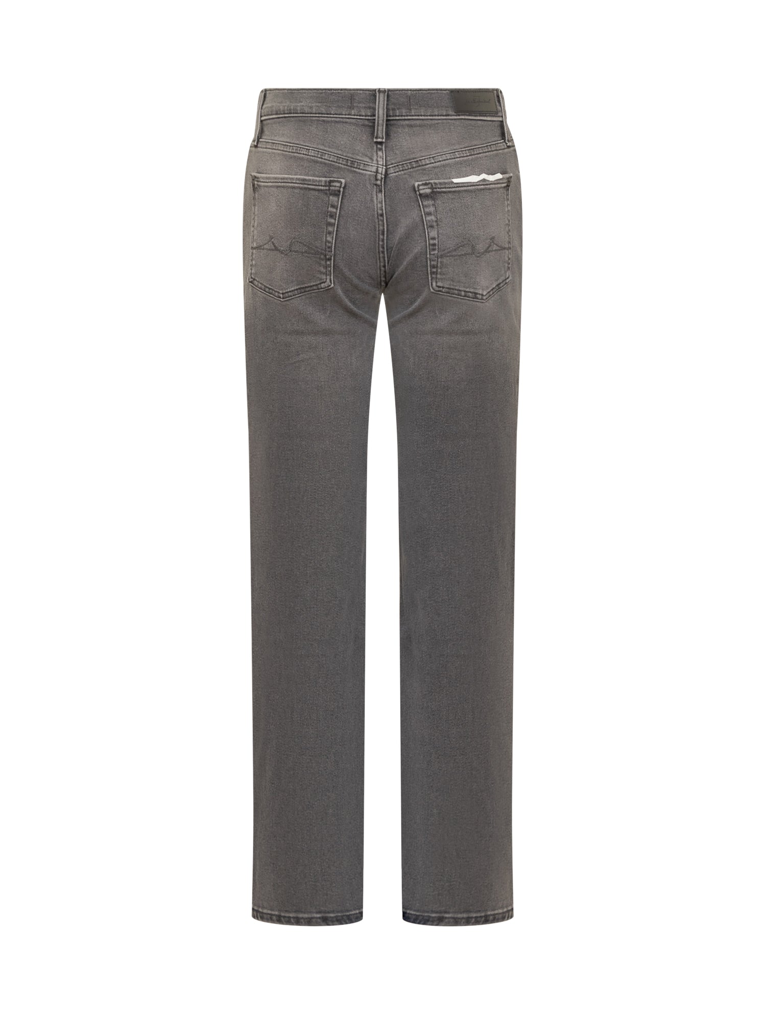 Black long jeans. Five pockets. Belt loops. Logo patch on the back. Zip and button closure.