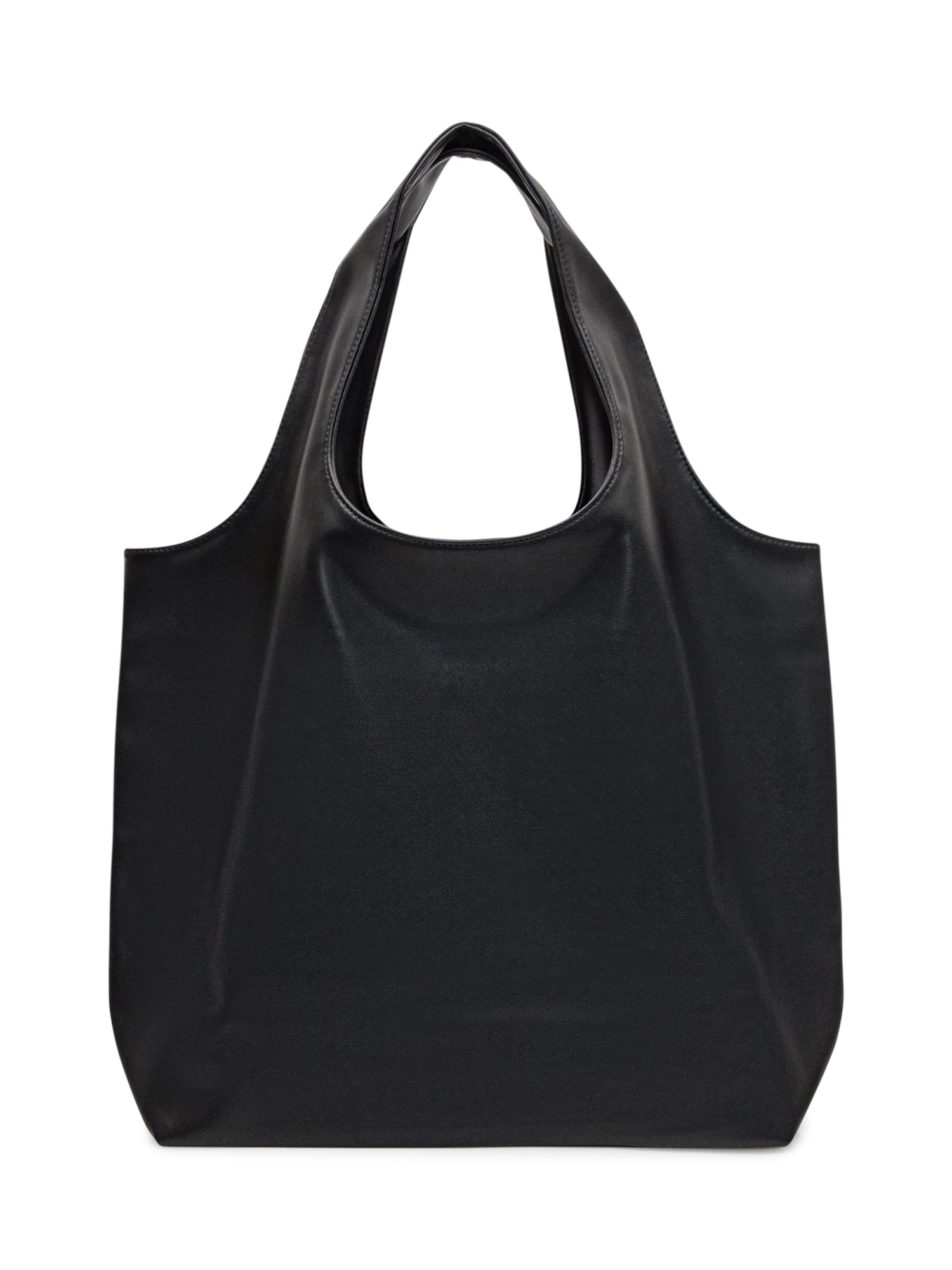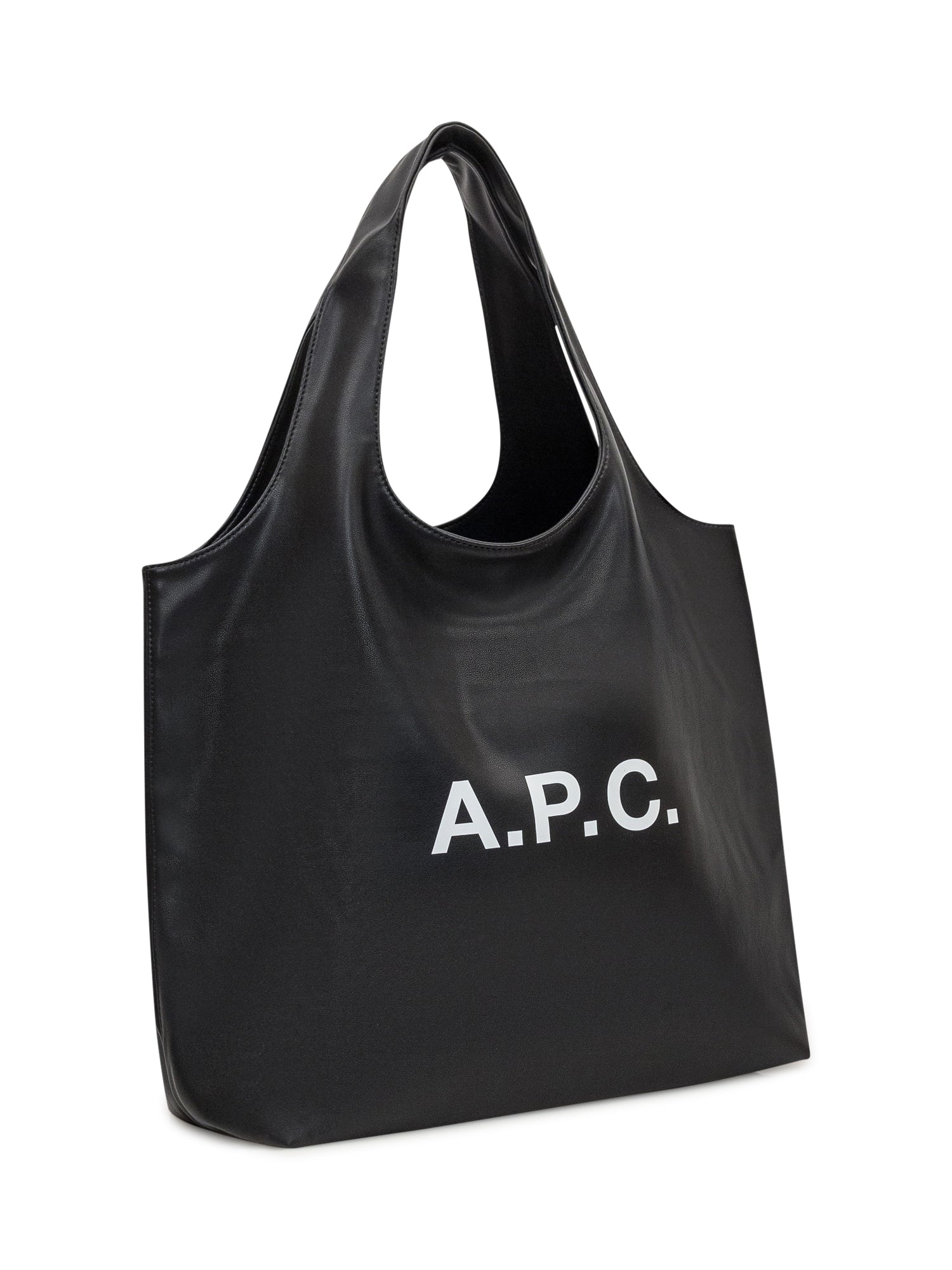 Black bag in recycled leather effect material. Two large handles. Can be carried by hand or on the shoulder. Inside pocket. White A.P.C. logo.