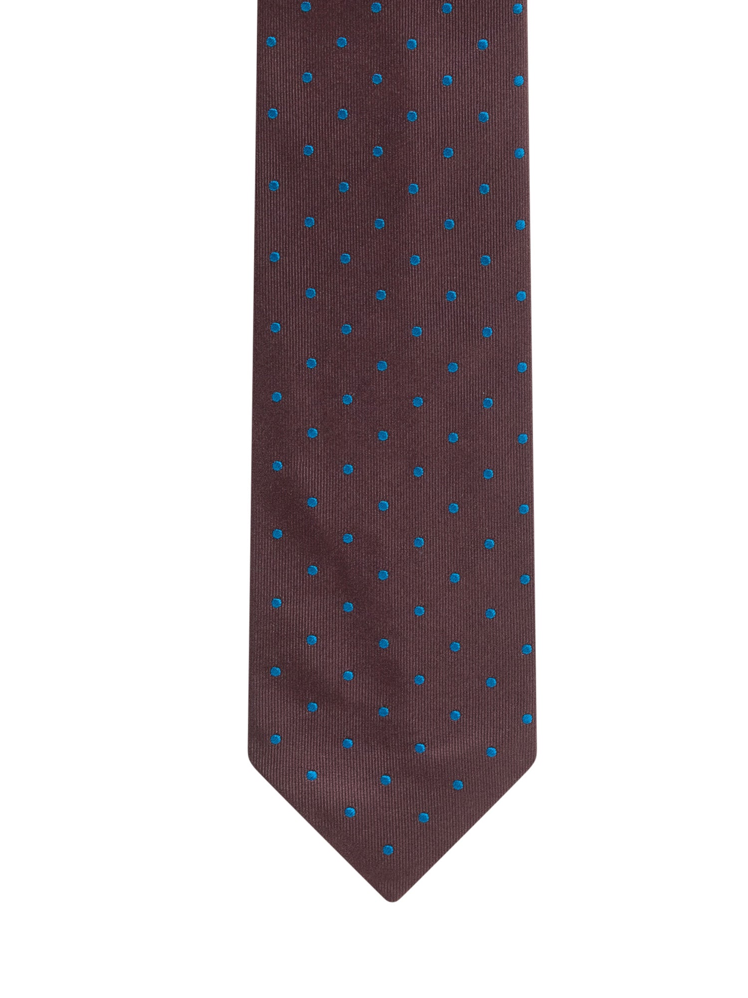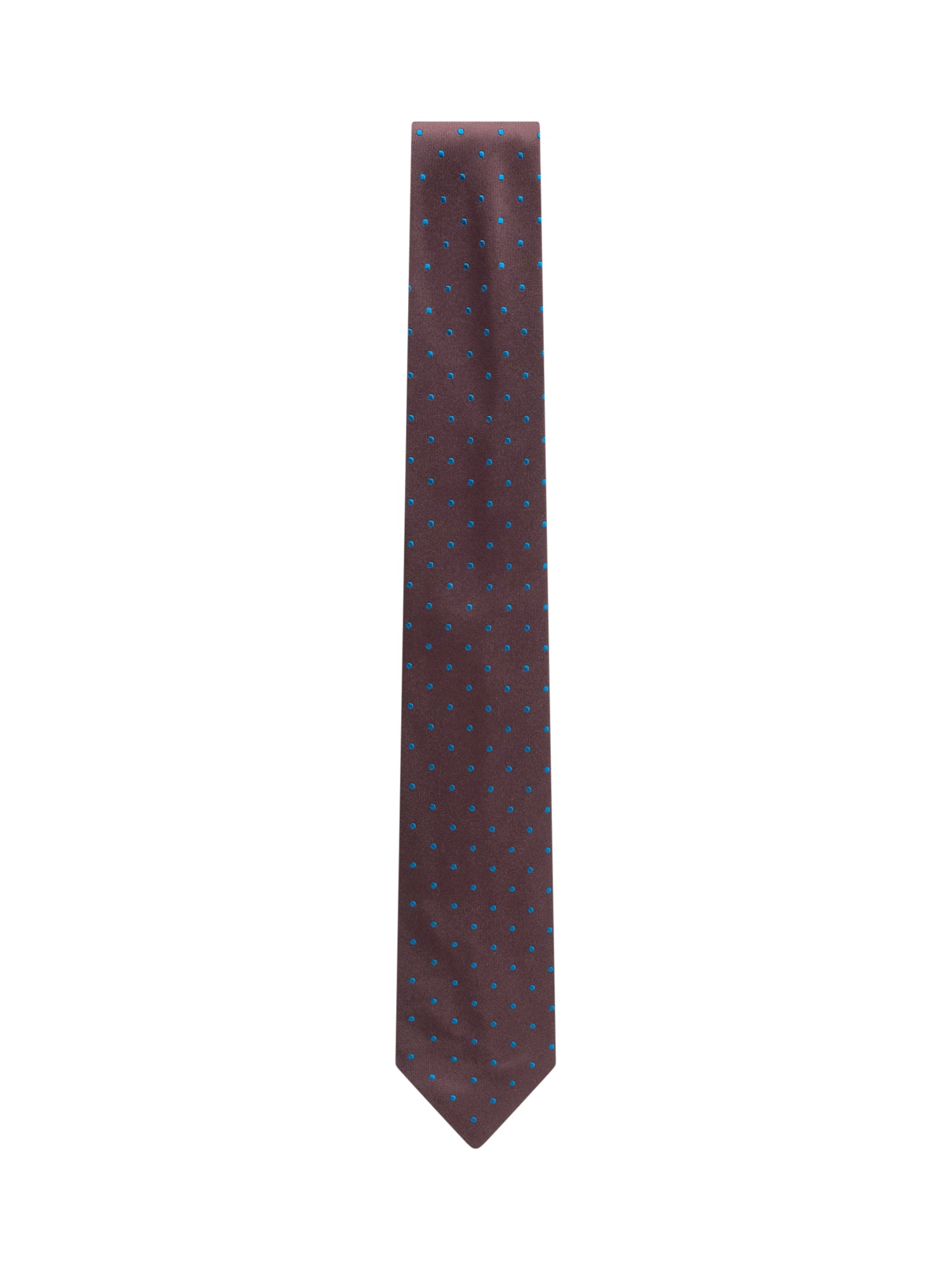 Brown Barbanapoli tie in silk with light blue micro polka dots.