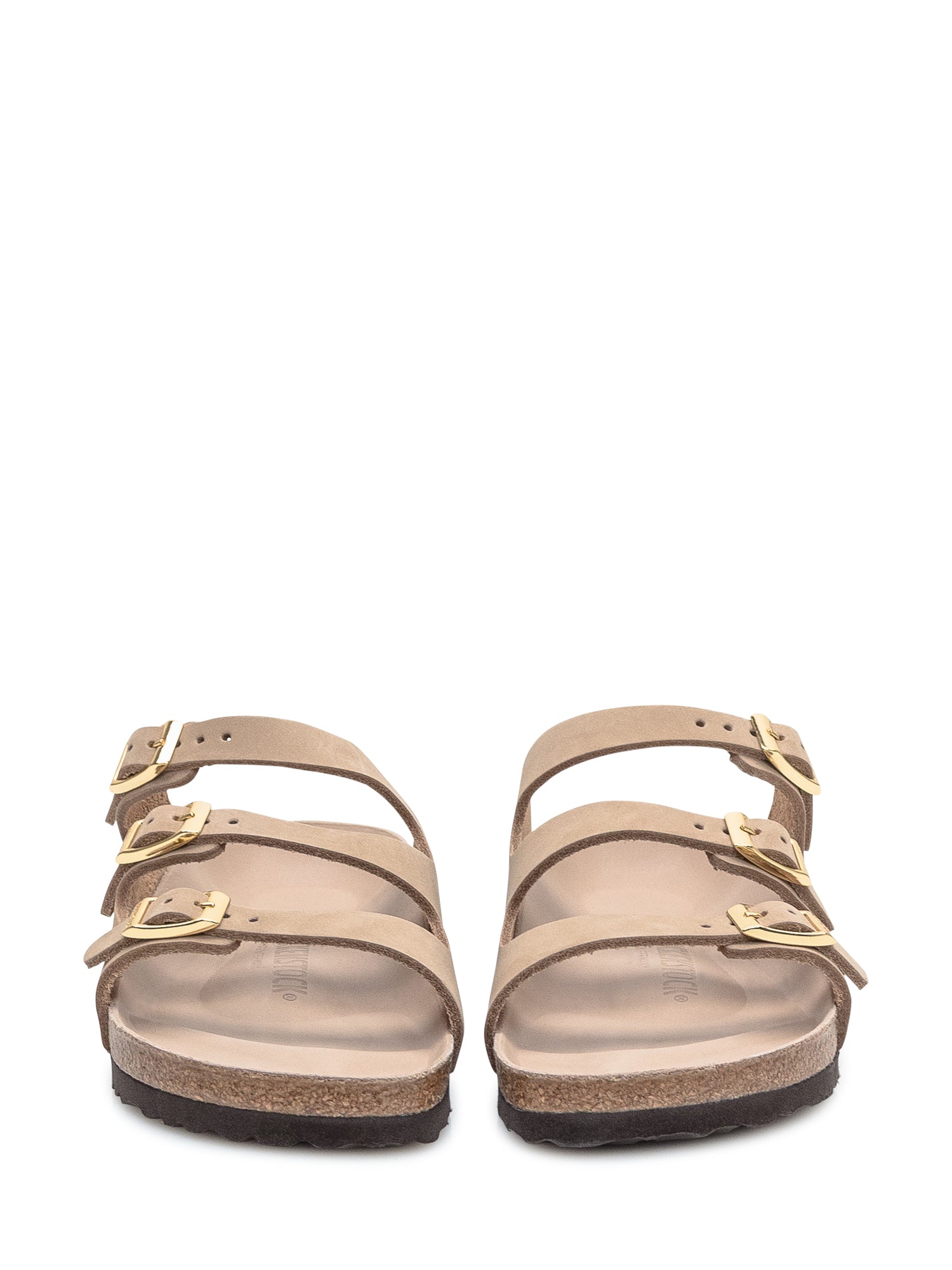 Sandal with three straps. The insole of the semi-exquisit footbed is covered in soft smooth leather in color coordinated to the shoe. The upper is made of precious and soft nubuck leather, fantastic with its natural and rustic look.