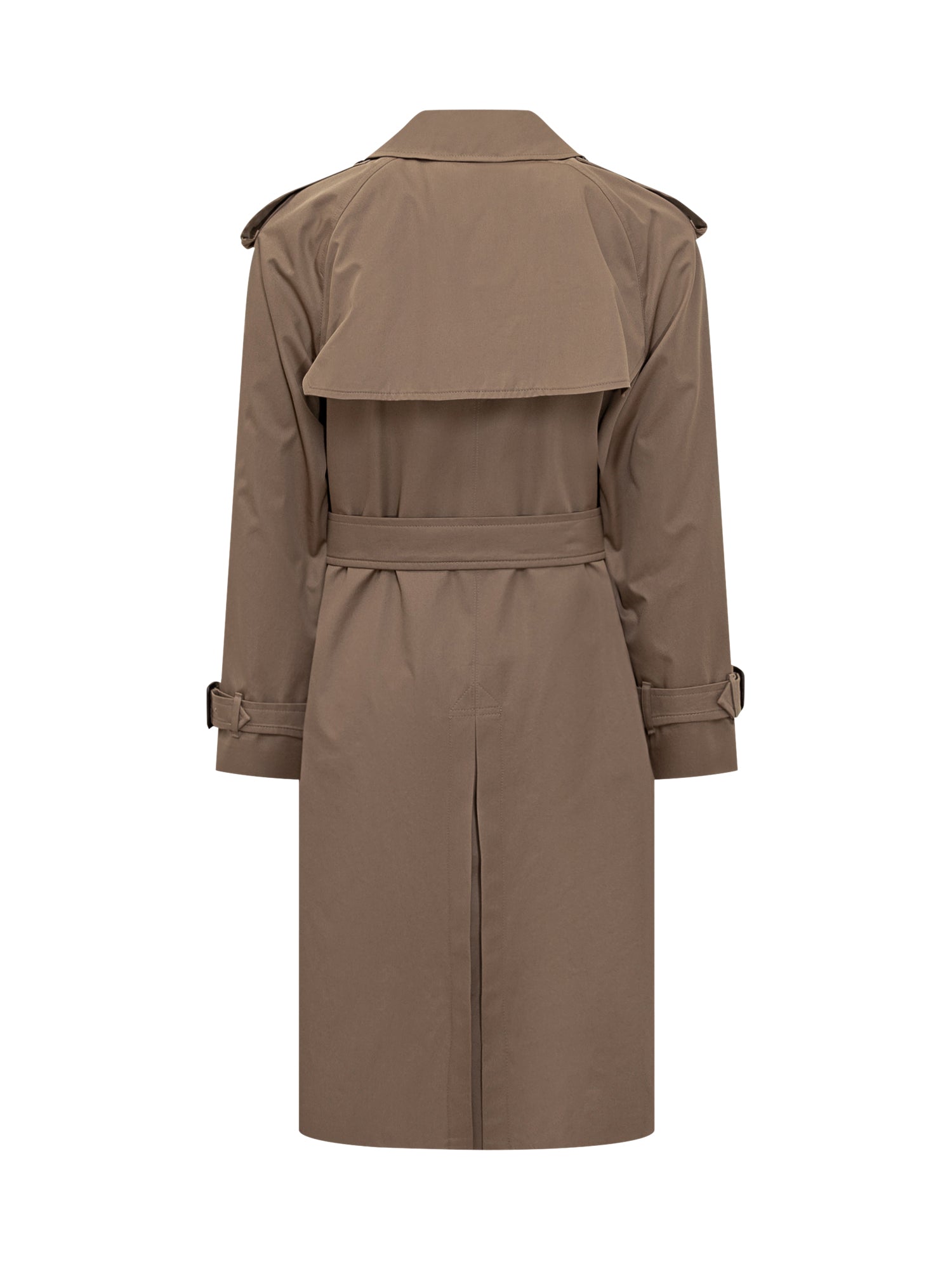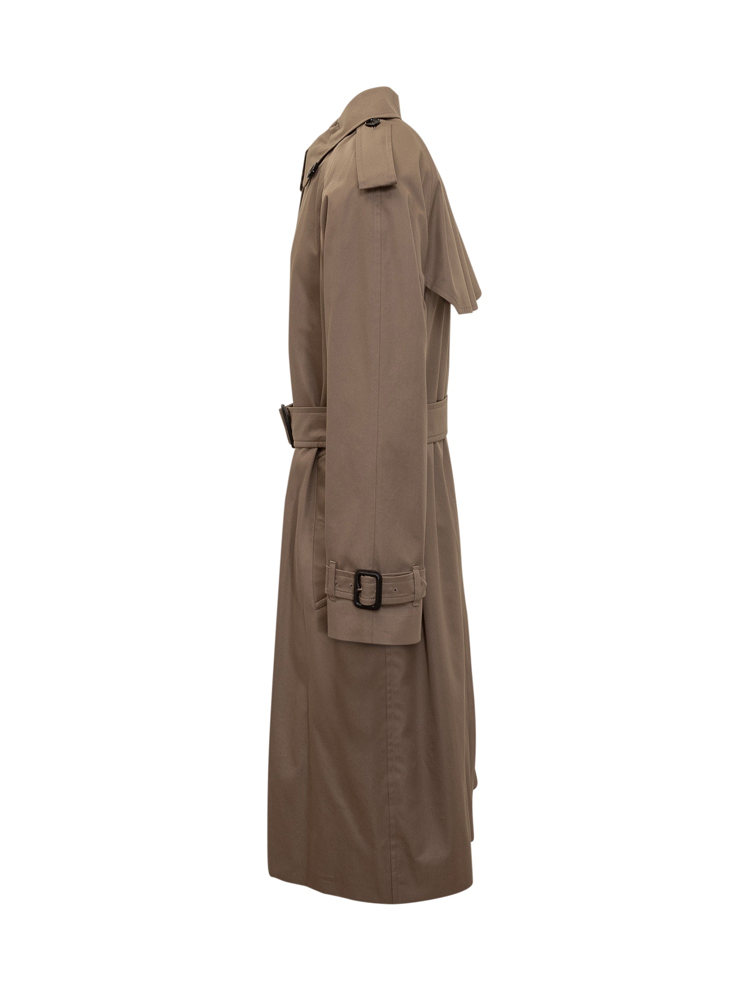Burberry long beige cotton trench with classic cut, waist belt and double-breasted closure.