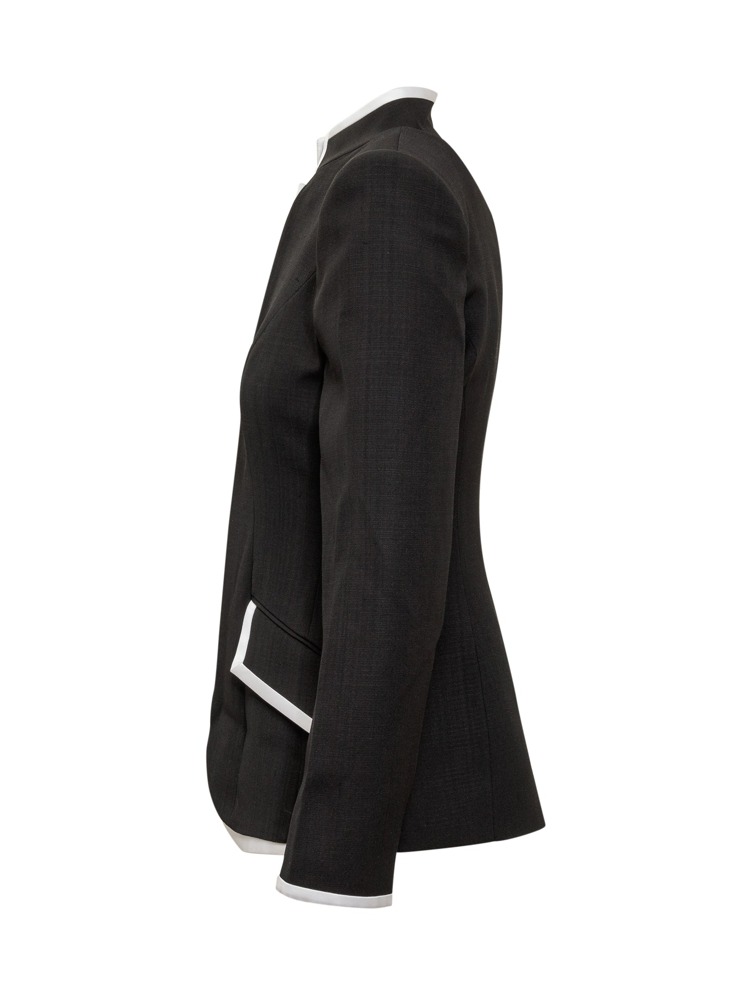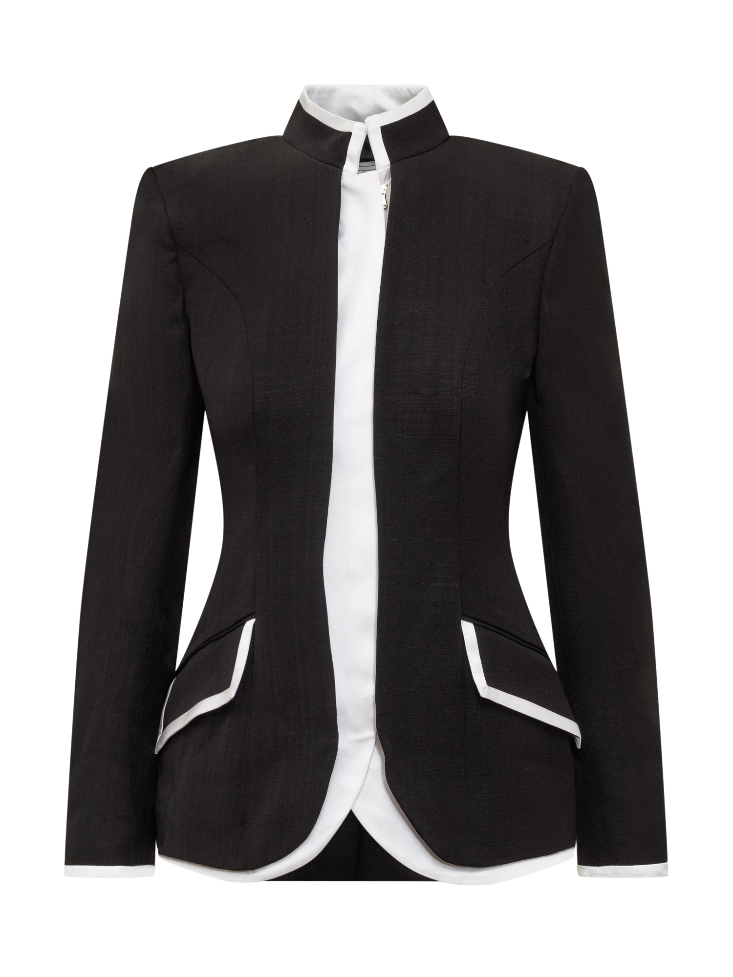 Blazer jacket with long sleeves. Zip closure. Turtleneck. Flap pockets on the front.