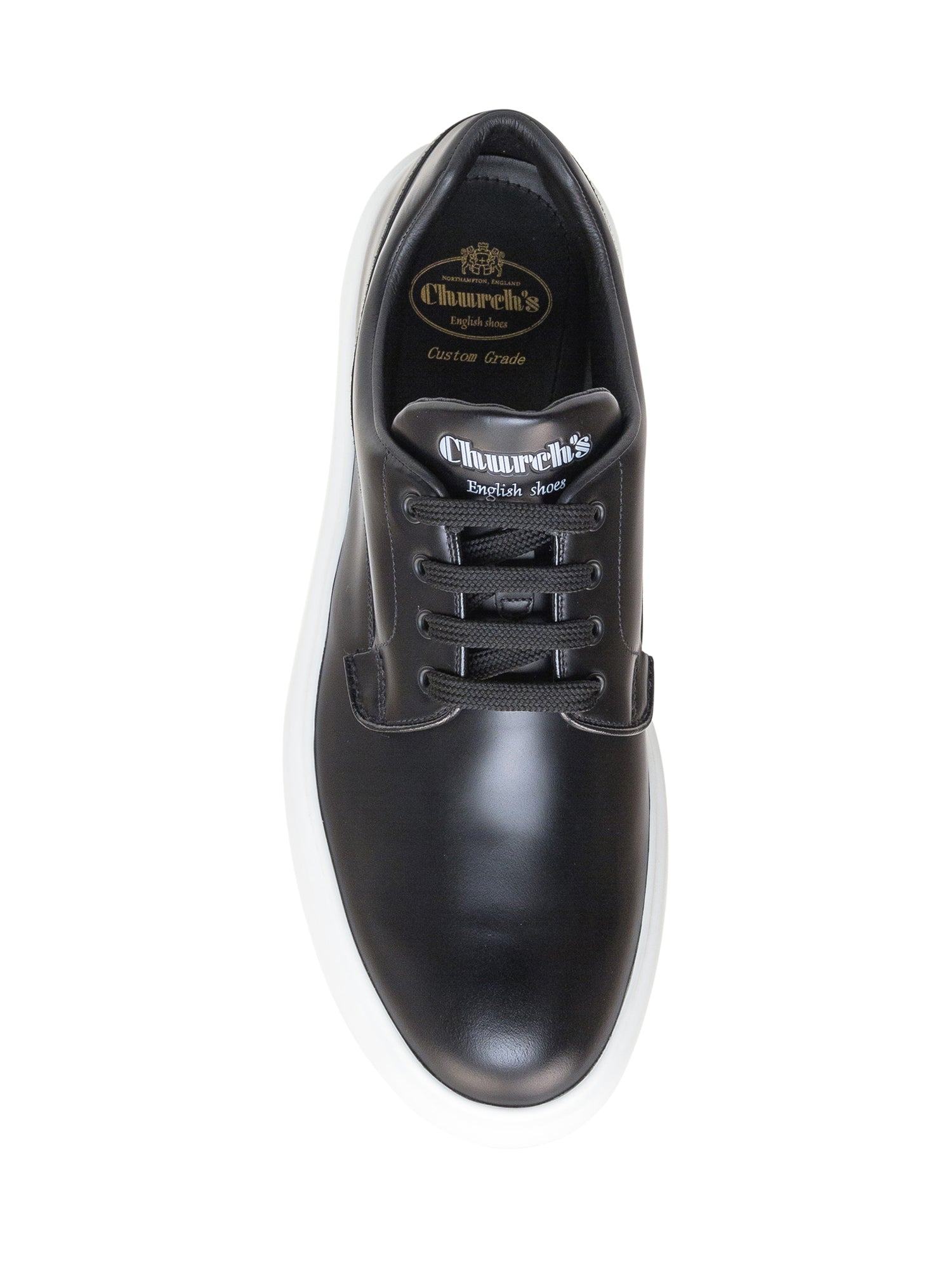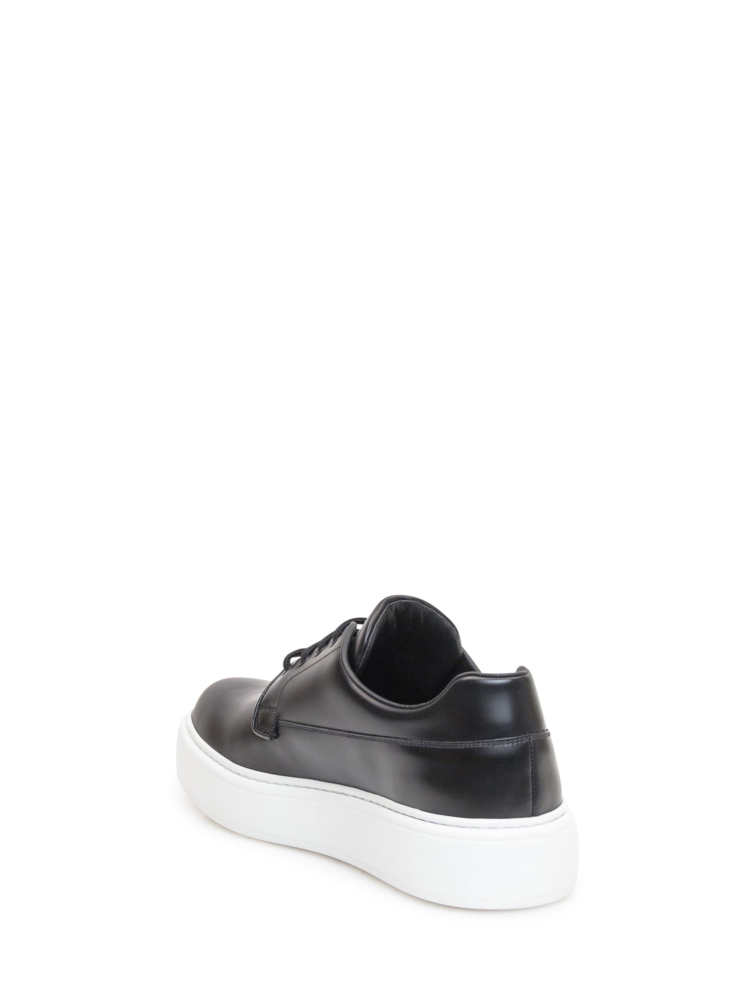 Black matte sneaker. Lace-up closure. White sole. Logo on the tongue.