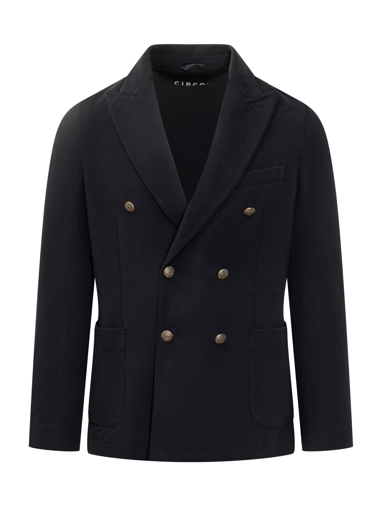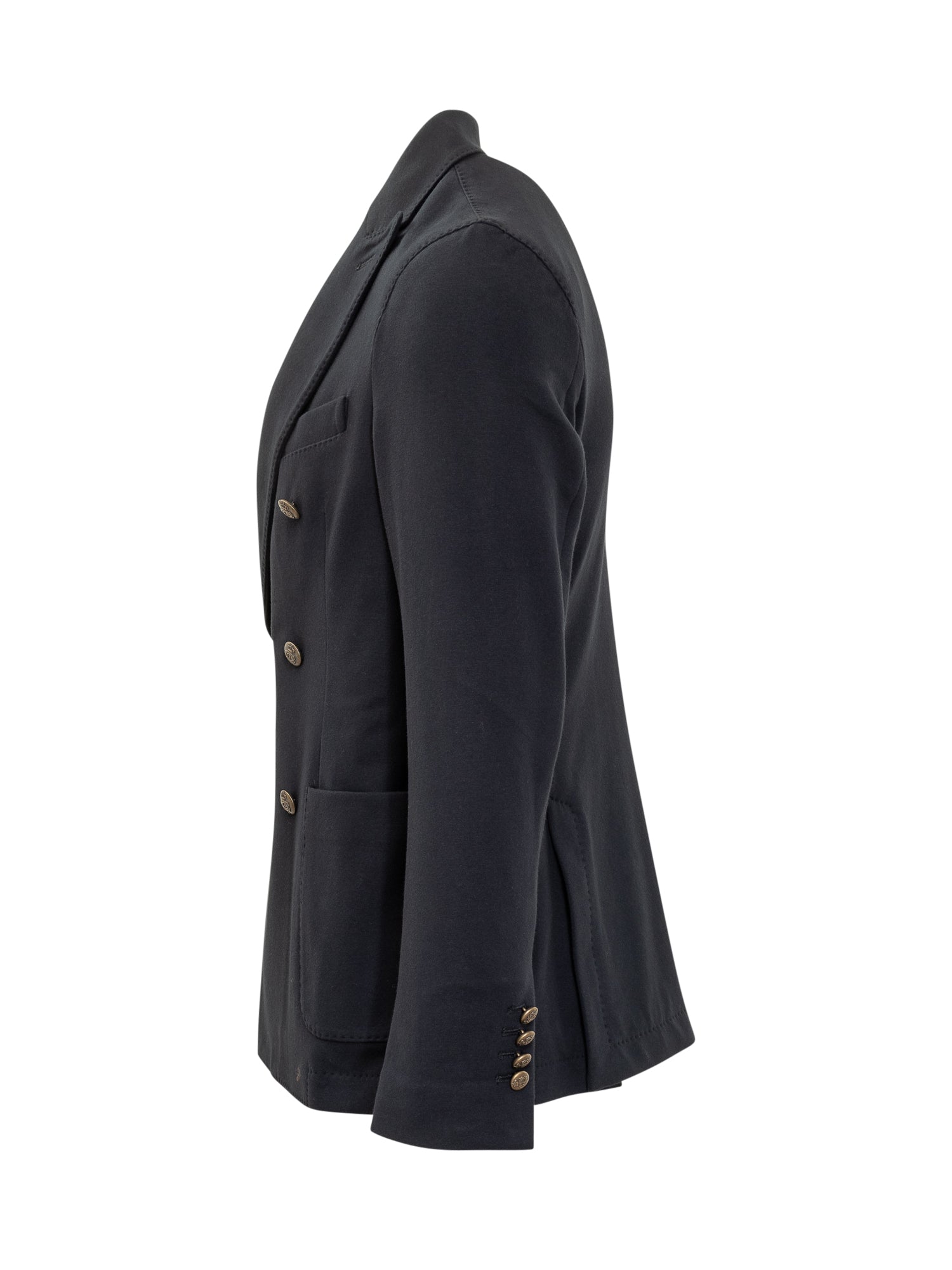 Black Circolo 1901 double-breasted blazer in light fleece jersey.