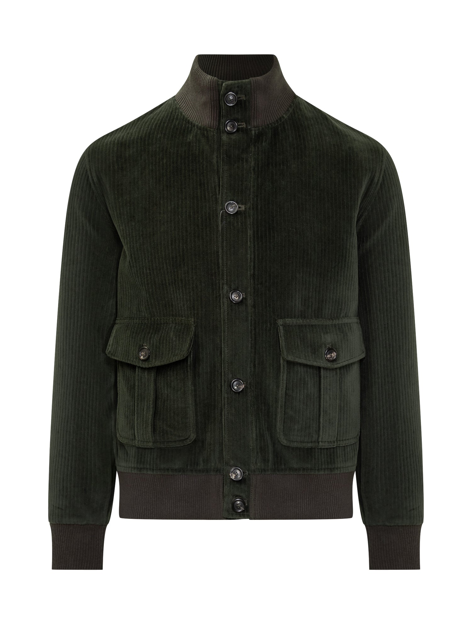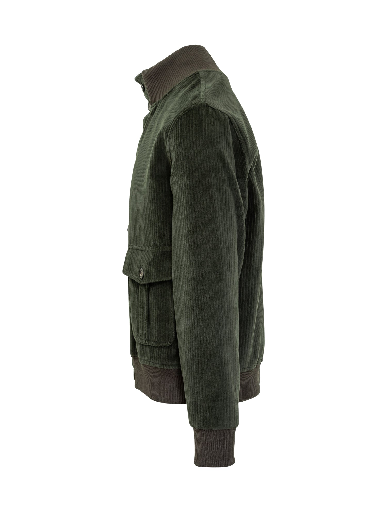 COR Circolo 1901 pilot jacket in green corduroy. Button closure, flap pockets, and knitted collar.