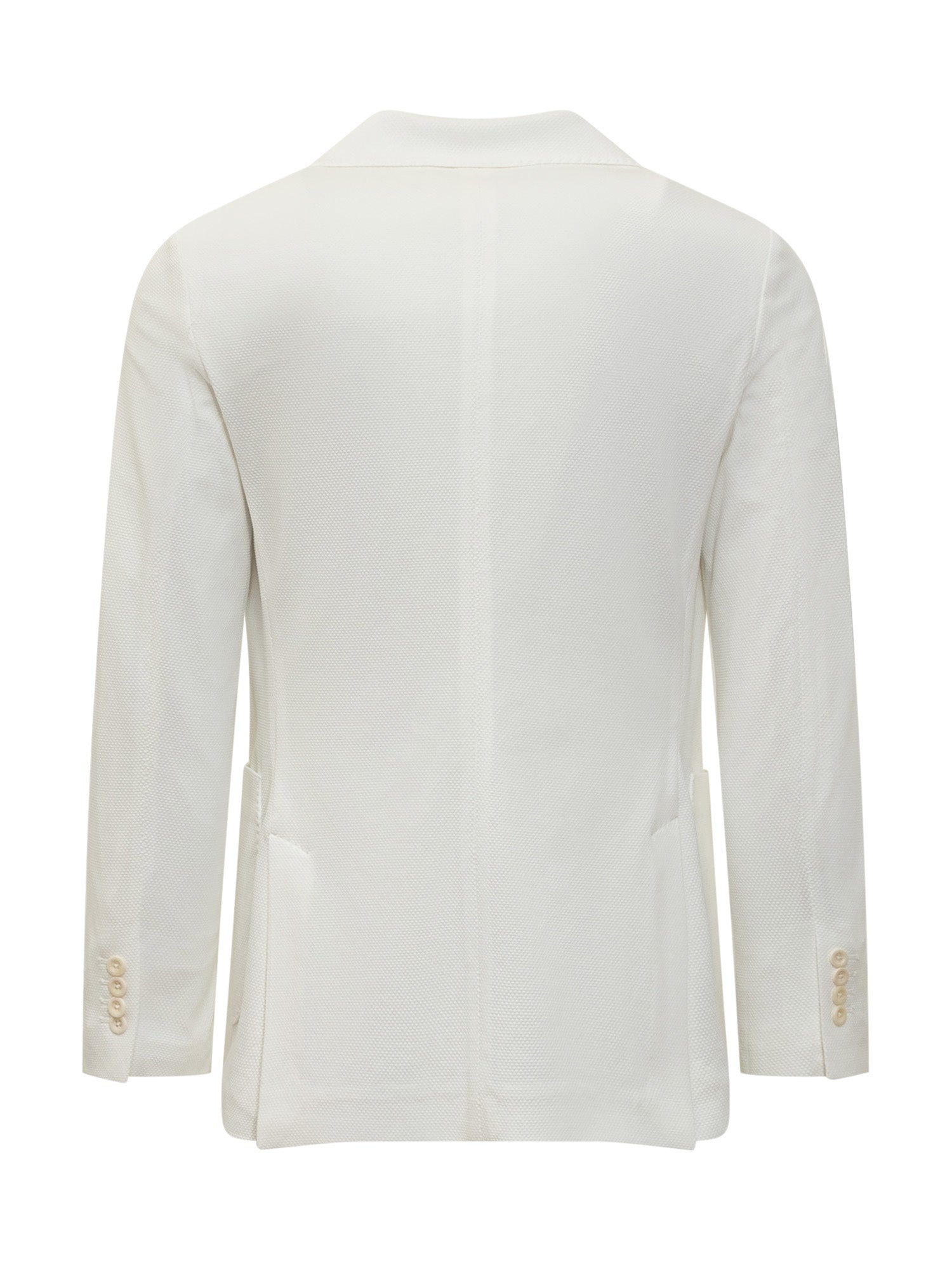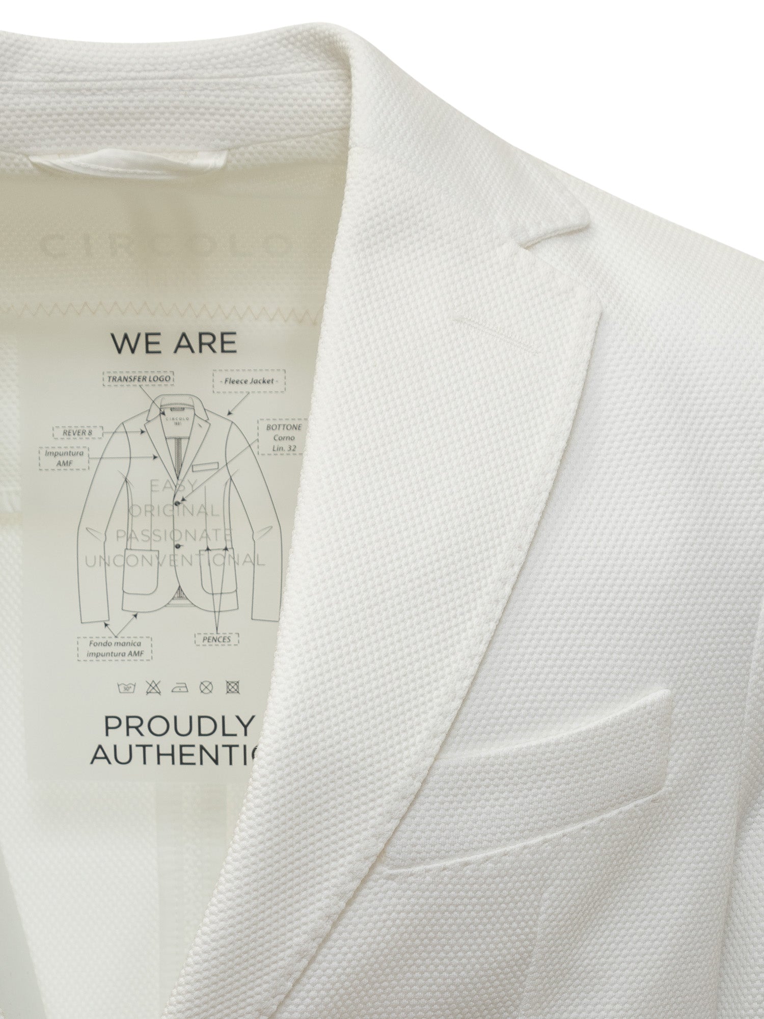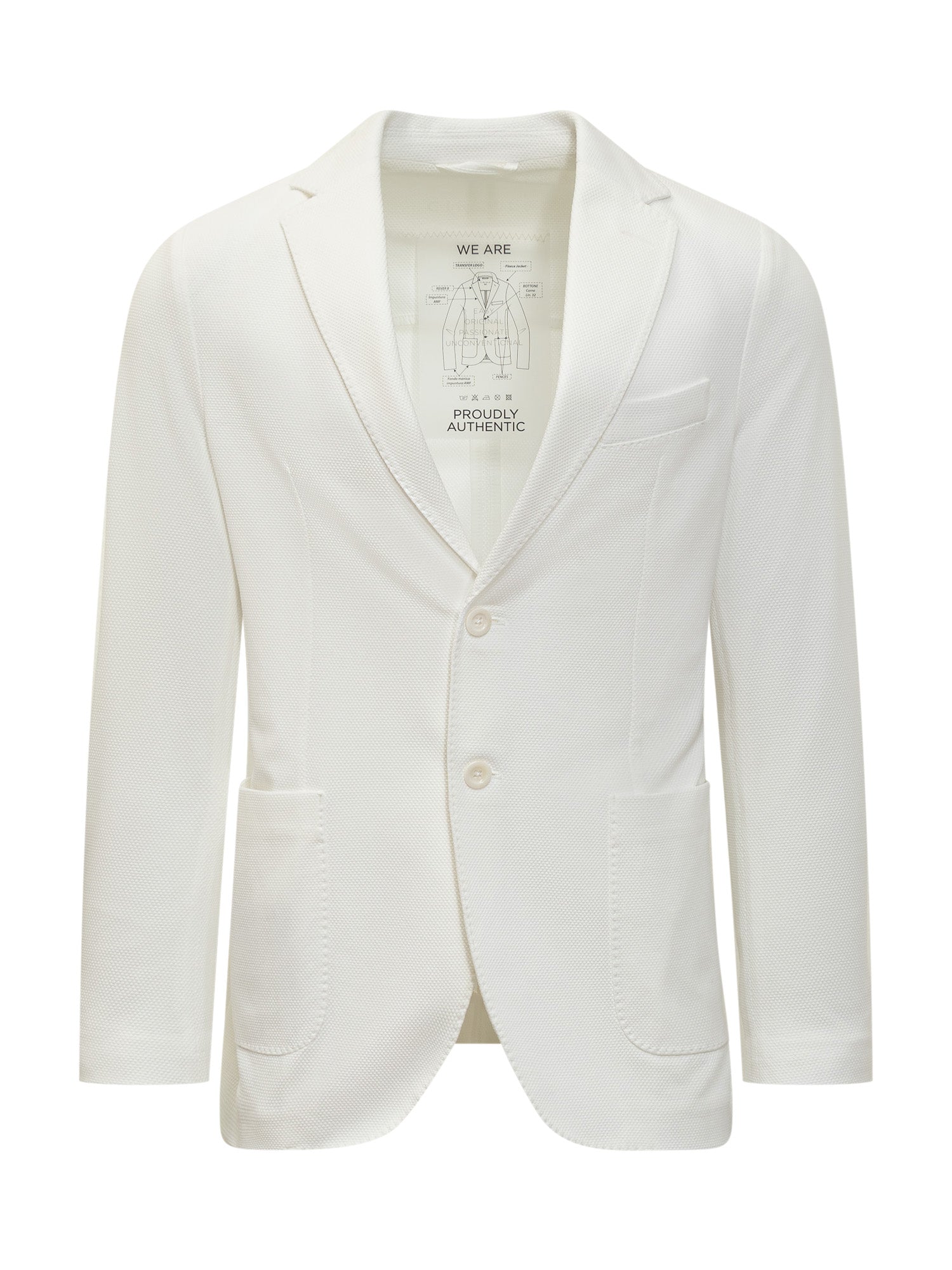 Single-breasted jacket. Button closure. Cuffs with buttons. Spear lapels with eyelet.Two patch pockets and one welt pocket.Double back vent.