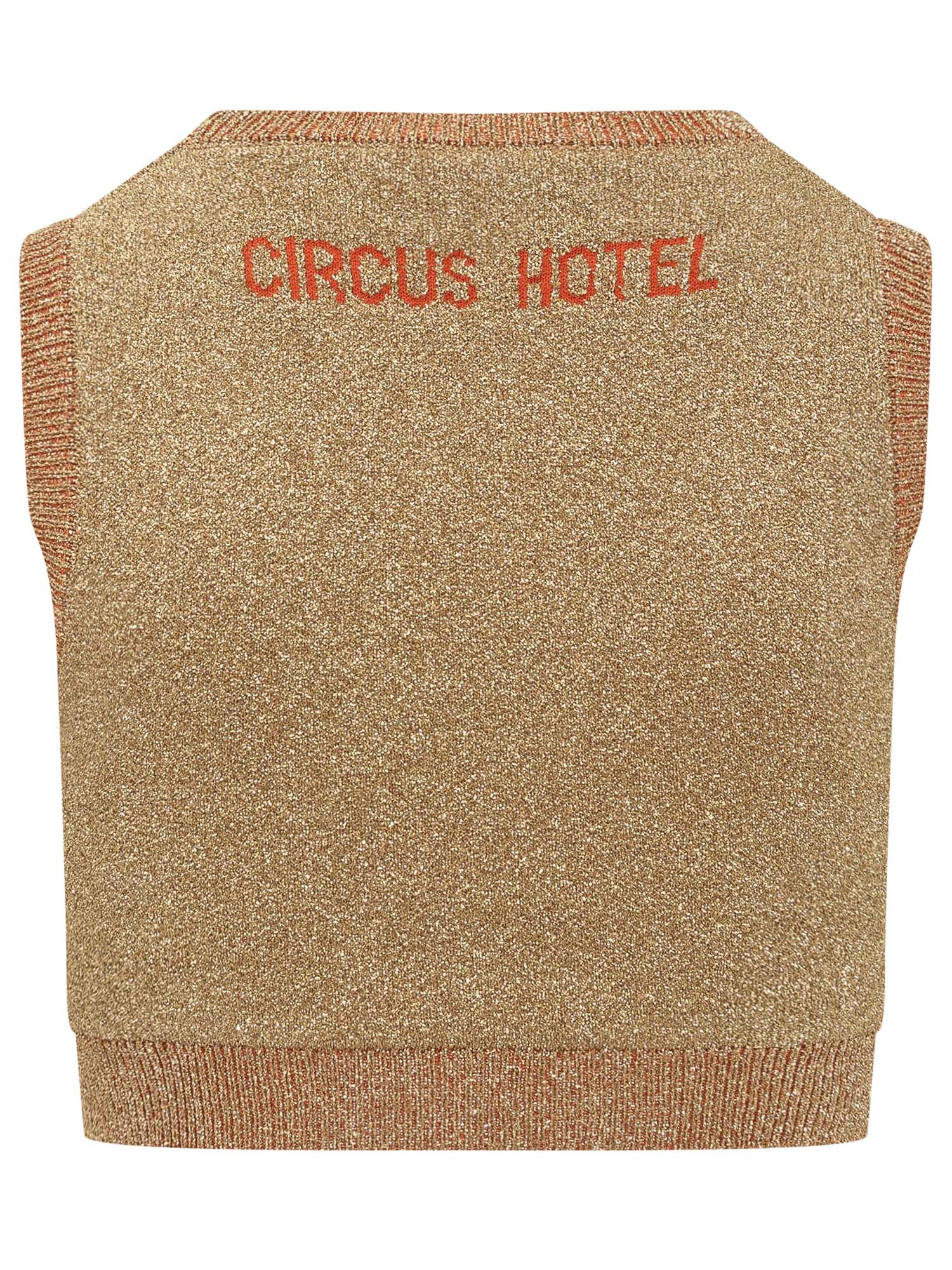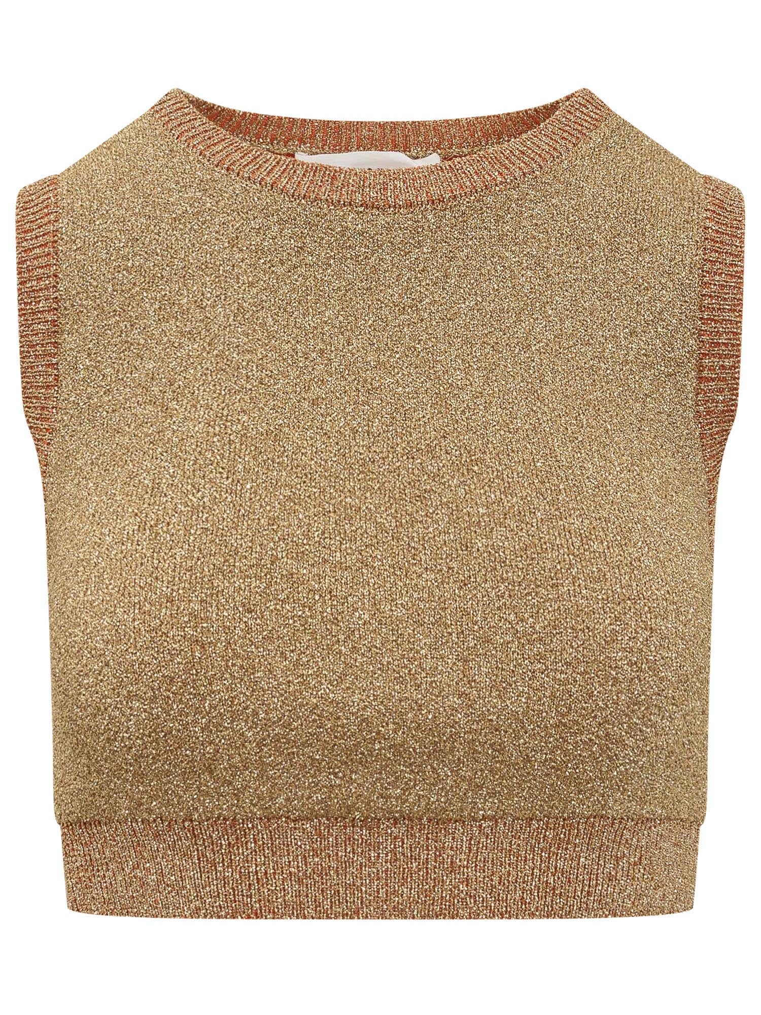 Sleeveless top. Crewneck. Logo on the back. Ribbed edges.