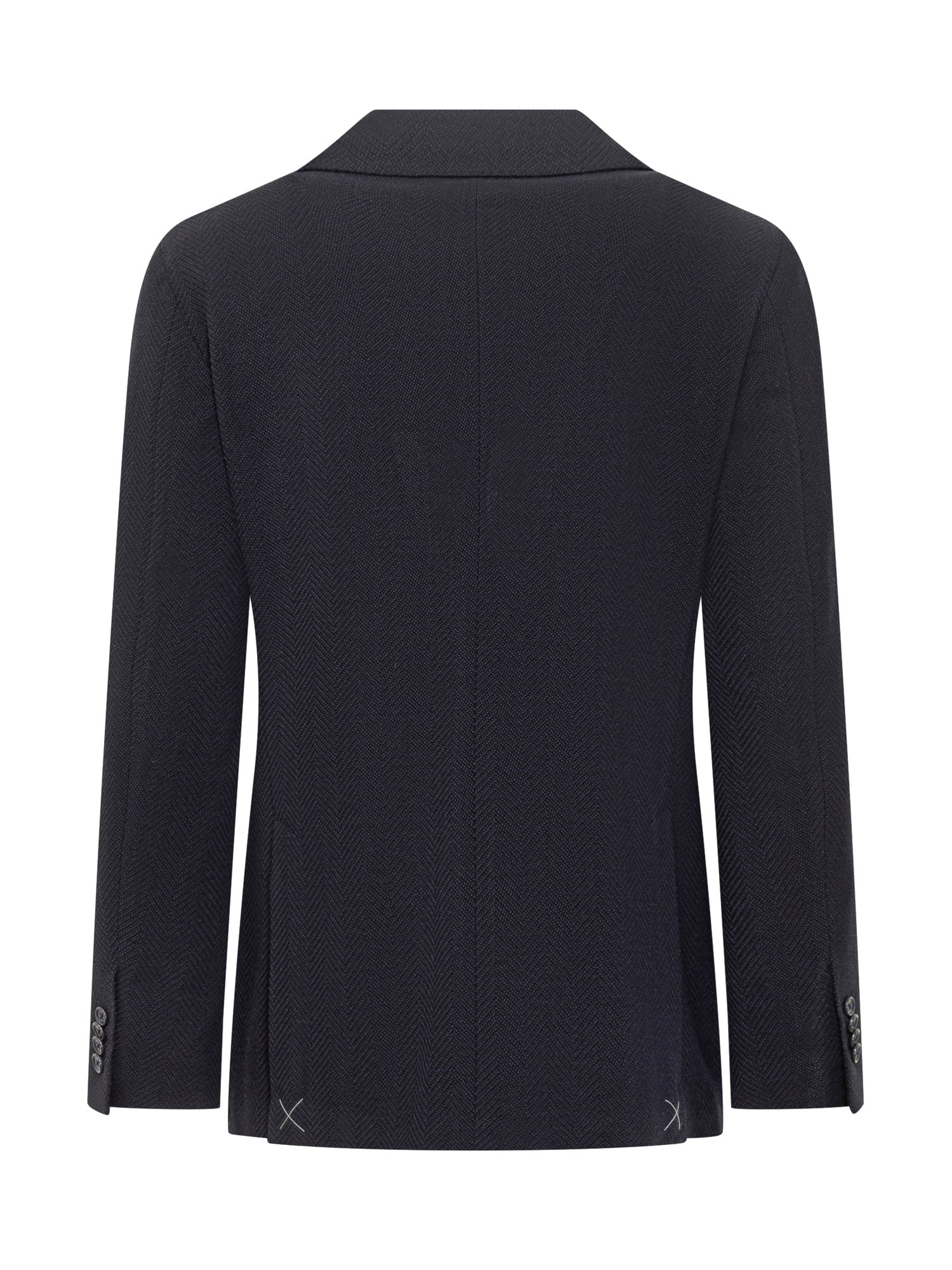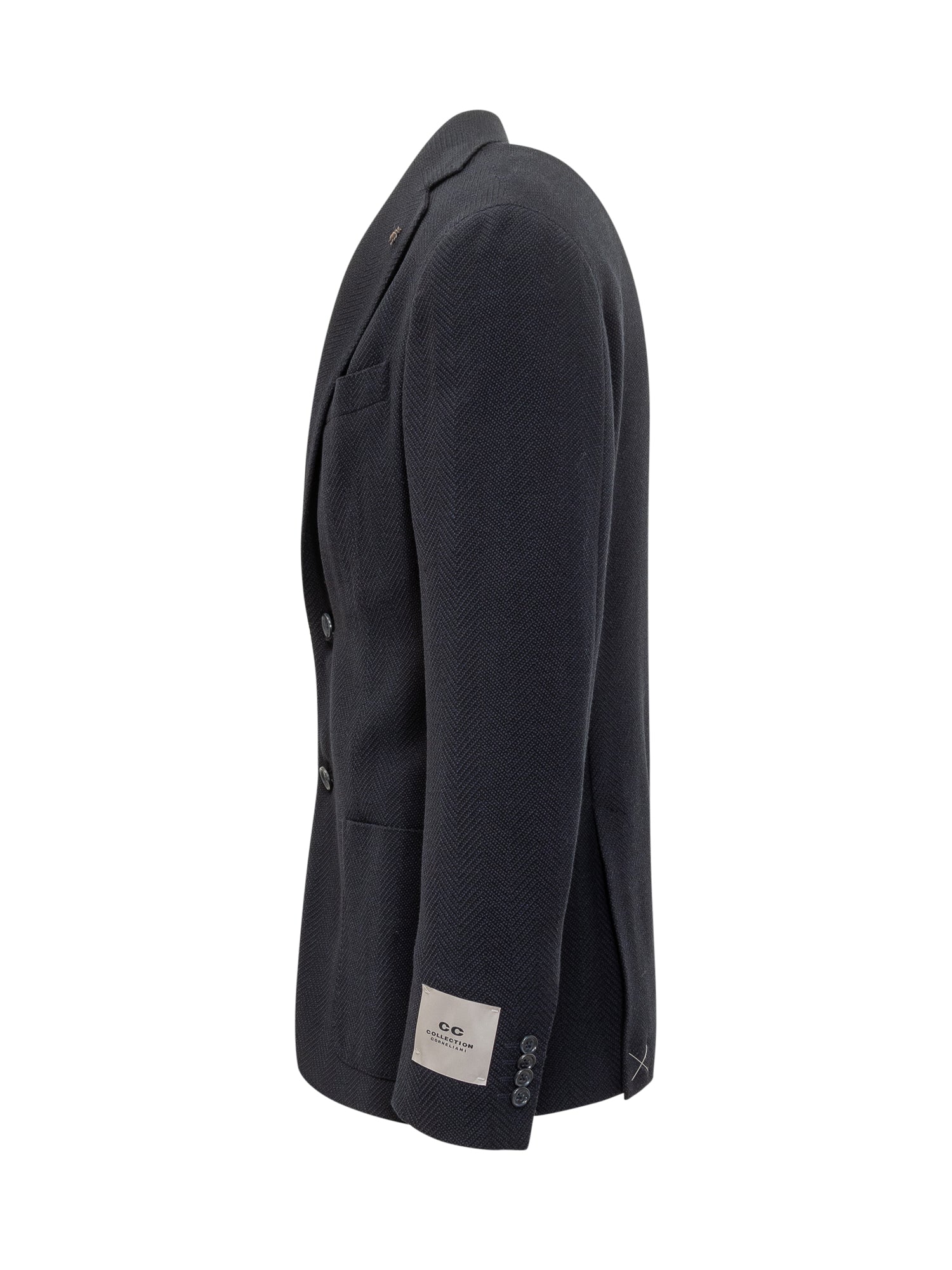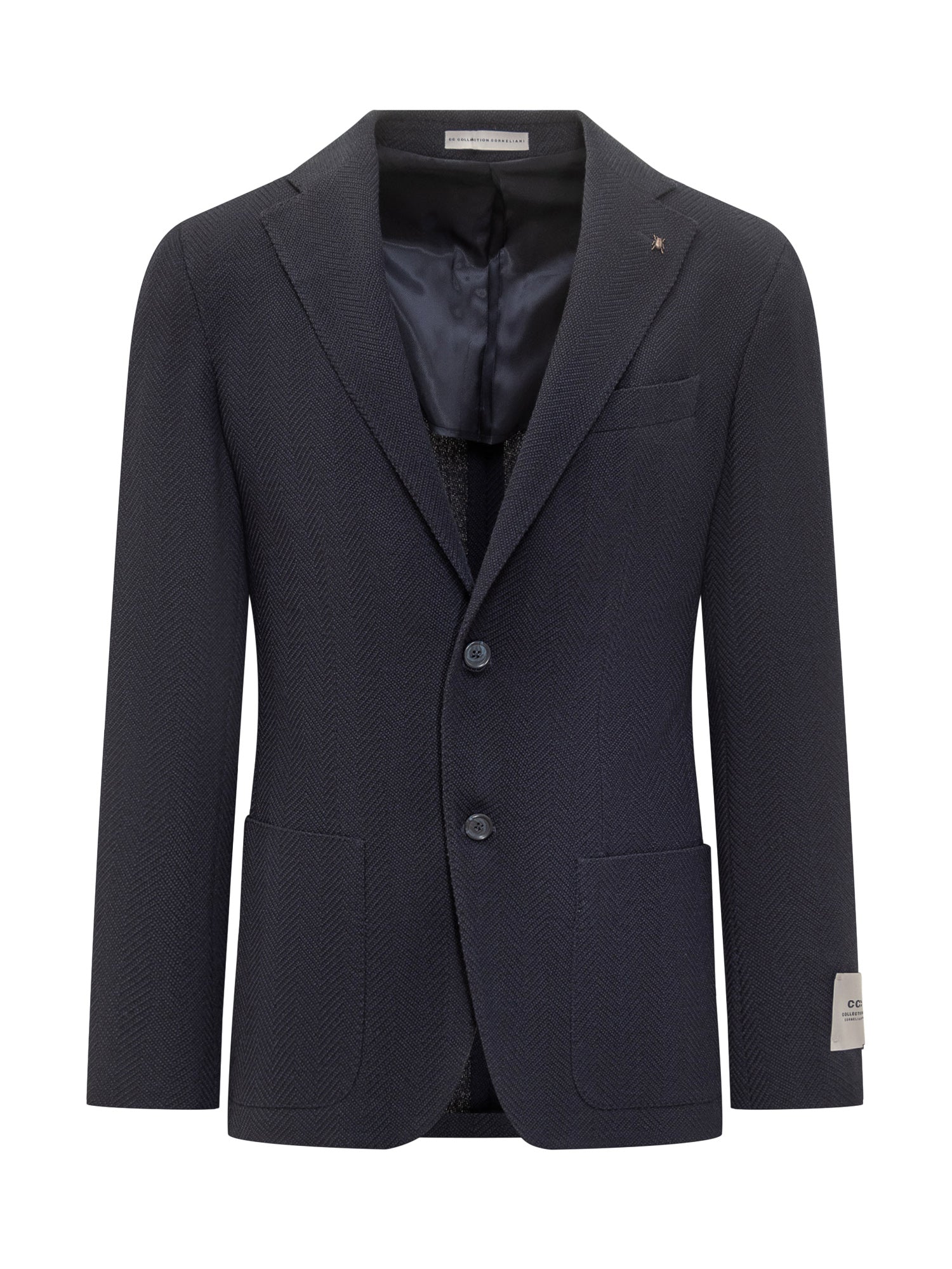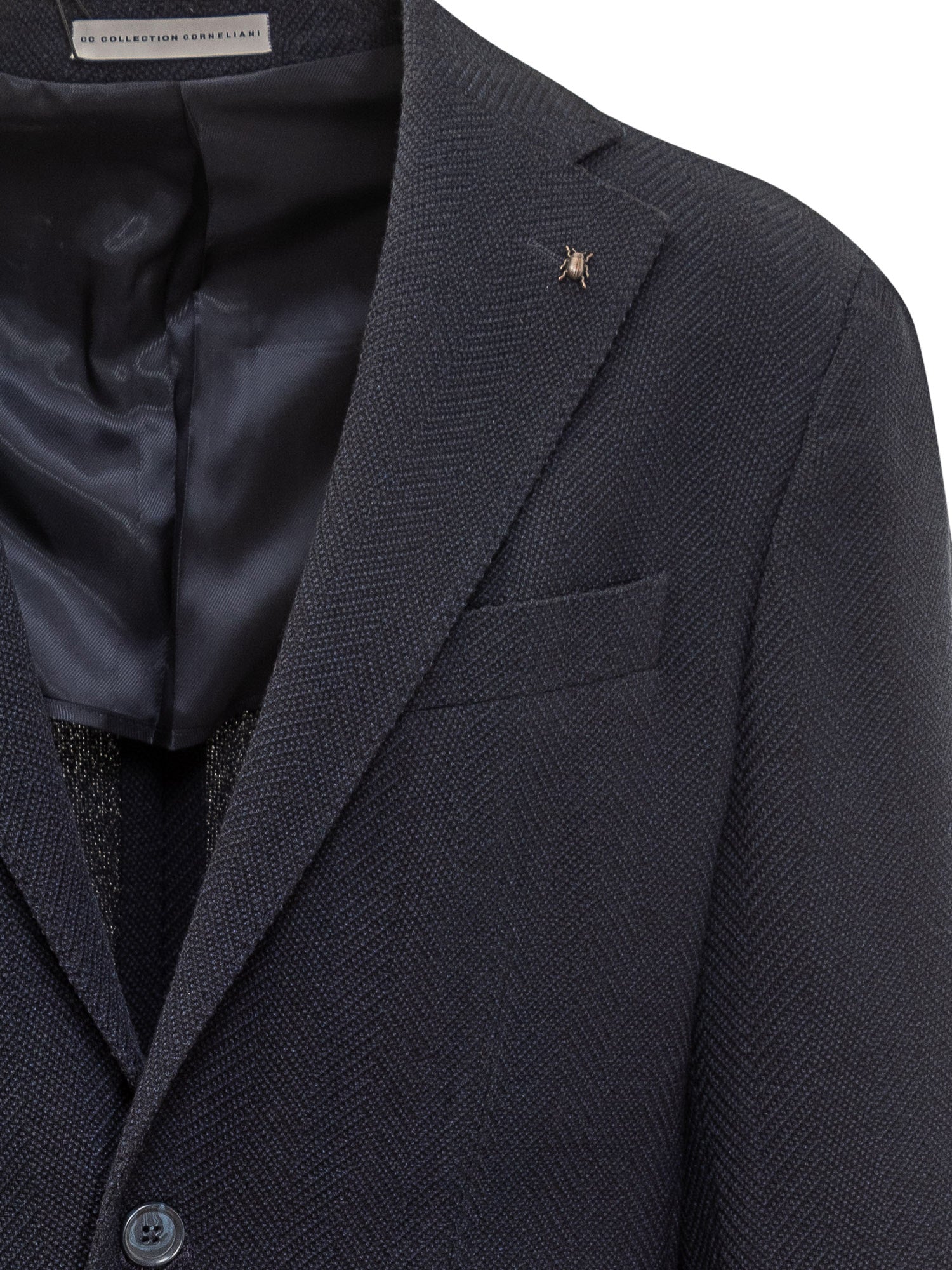 Corneliani blue wool jacket featuring classic lapels, two-button closure and patch pockets.