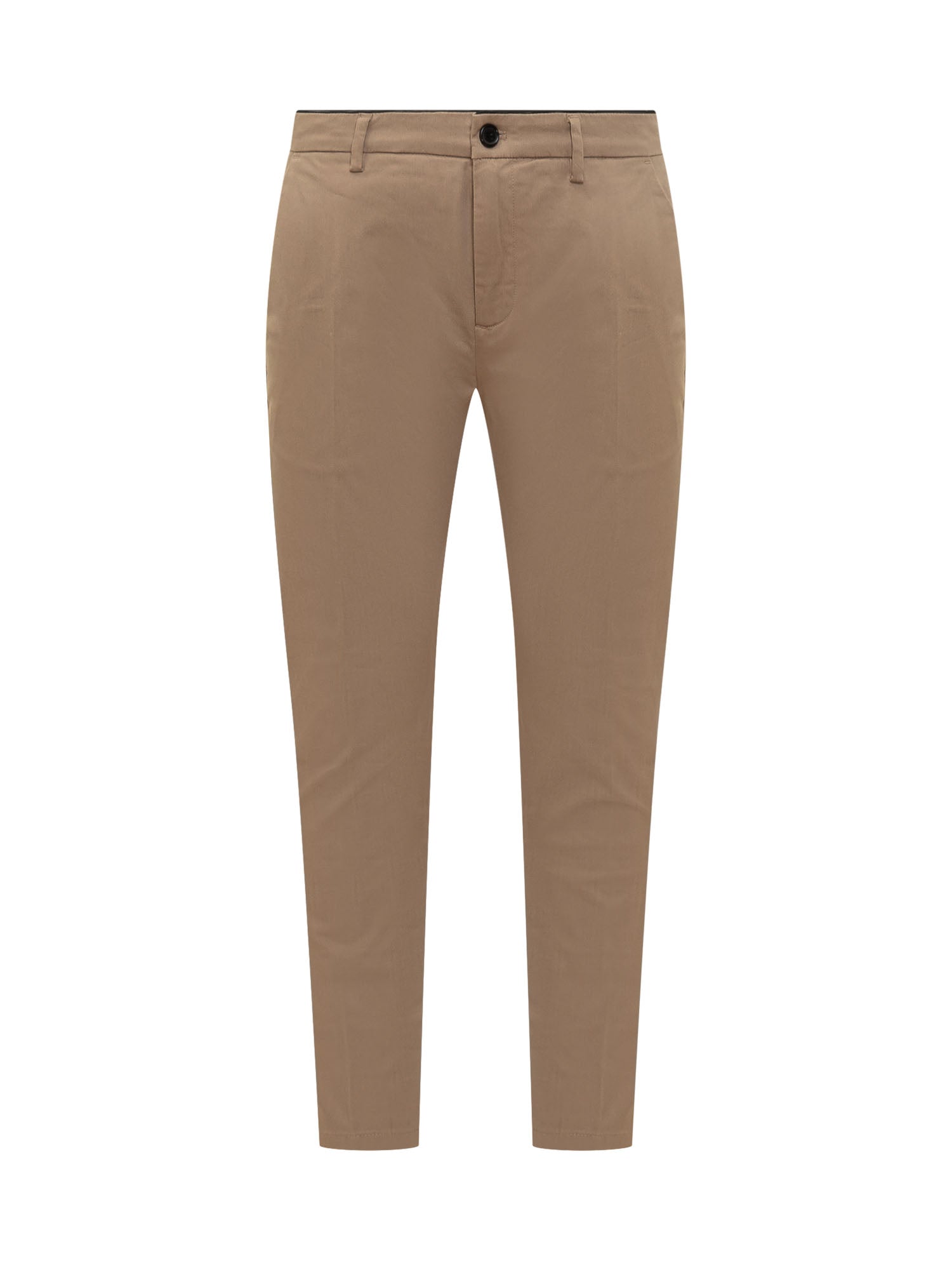 Long pants. Button and zipper closure. Belt loops. Four pockets.