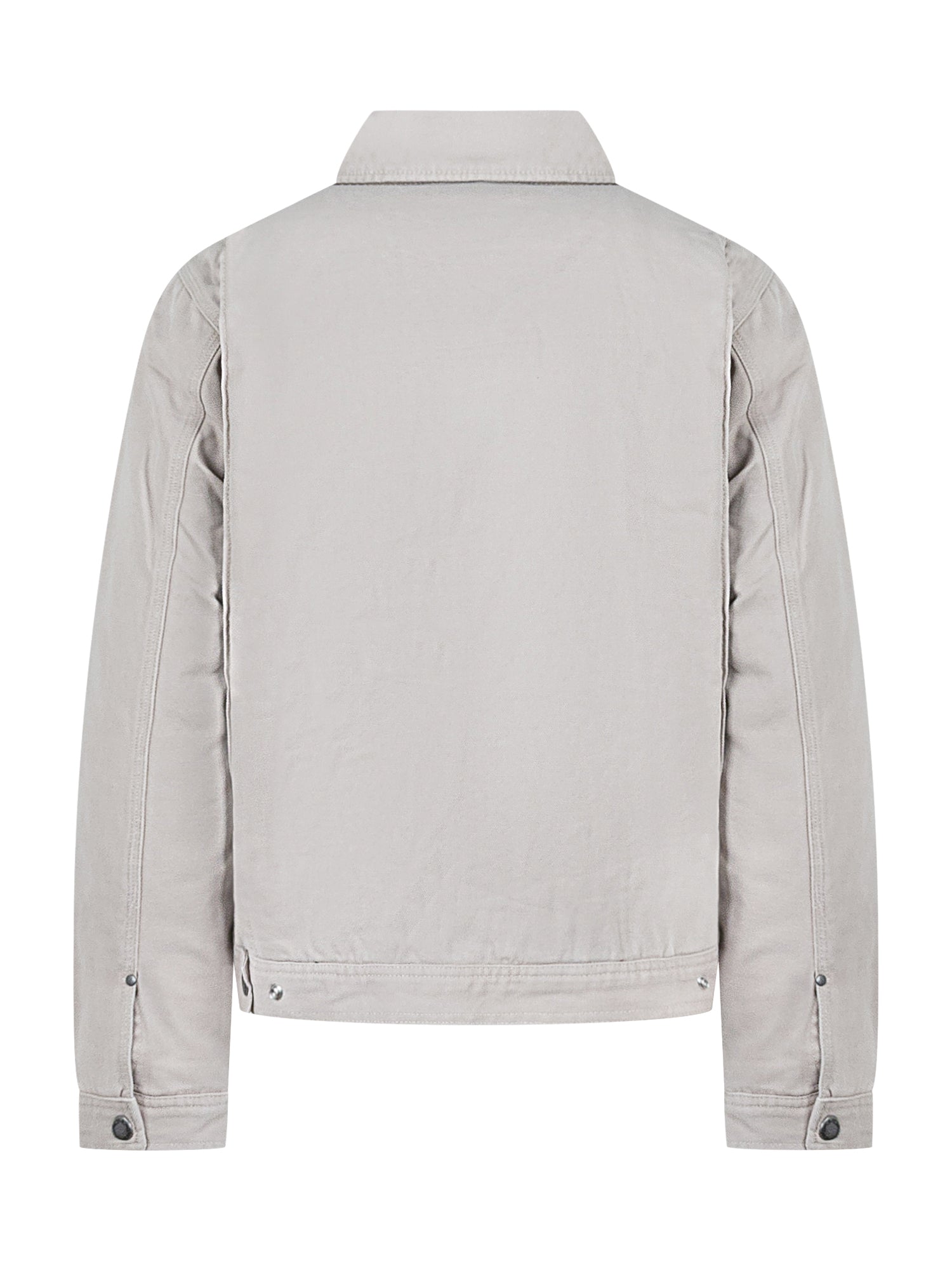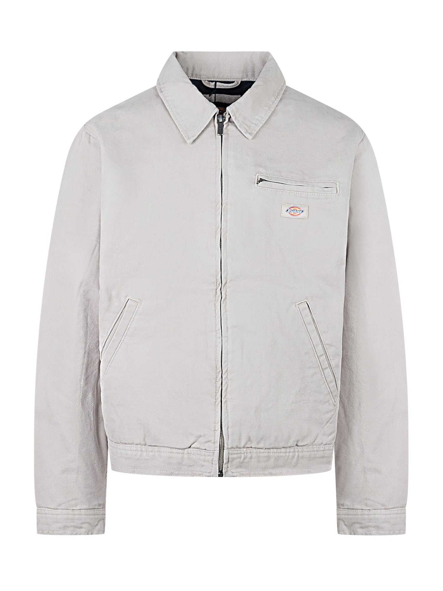 Dickies grey jacket with front zip closure and side pockets. Features logo patch on the chest and zip pocket.