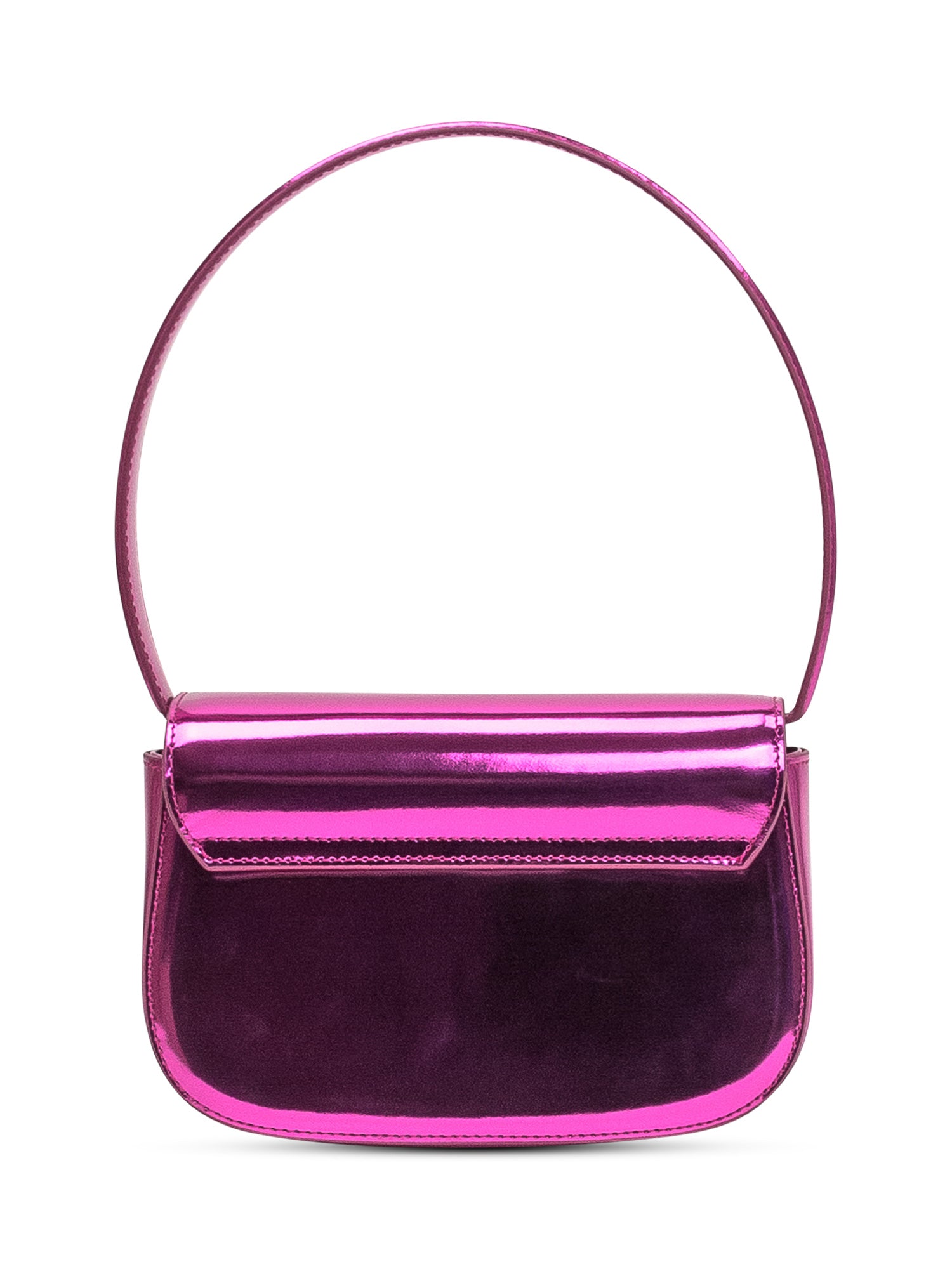 Diesel pink patent mirror-effect shoulder bag with tone-on-tone oversized D logo.
