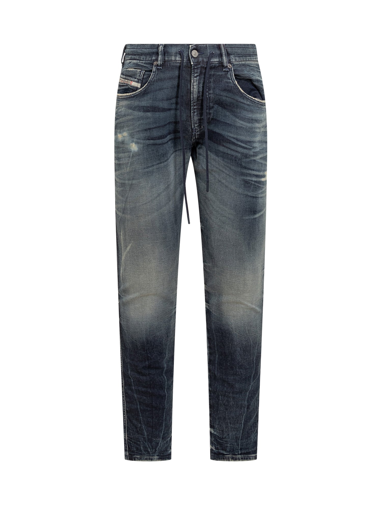 Diesel jeans in dark blue denim with washed effect, drawstring waist and five-pocket design.
