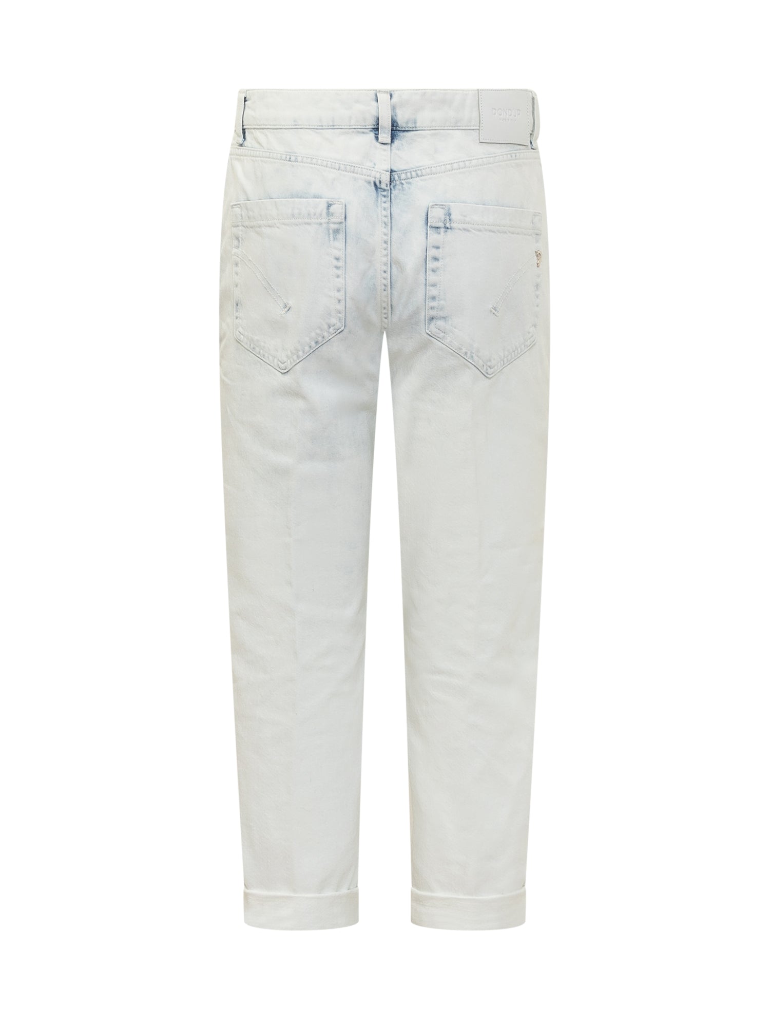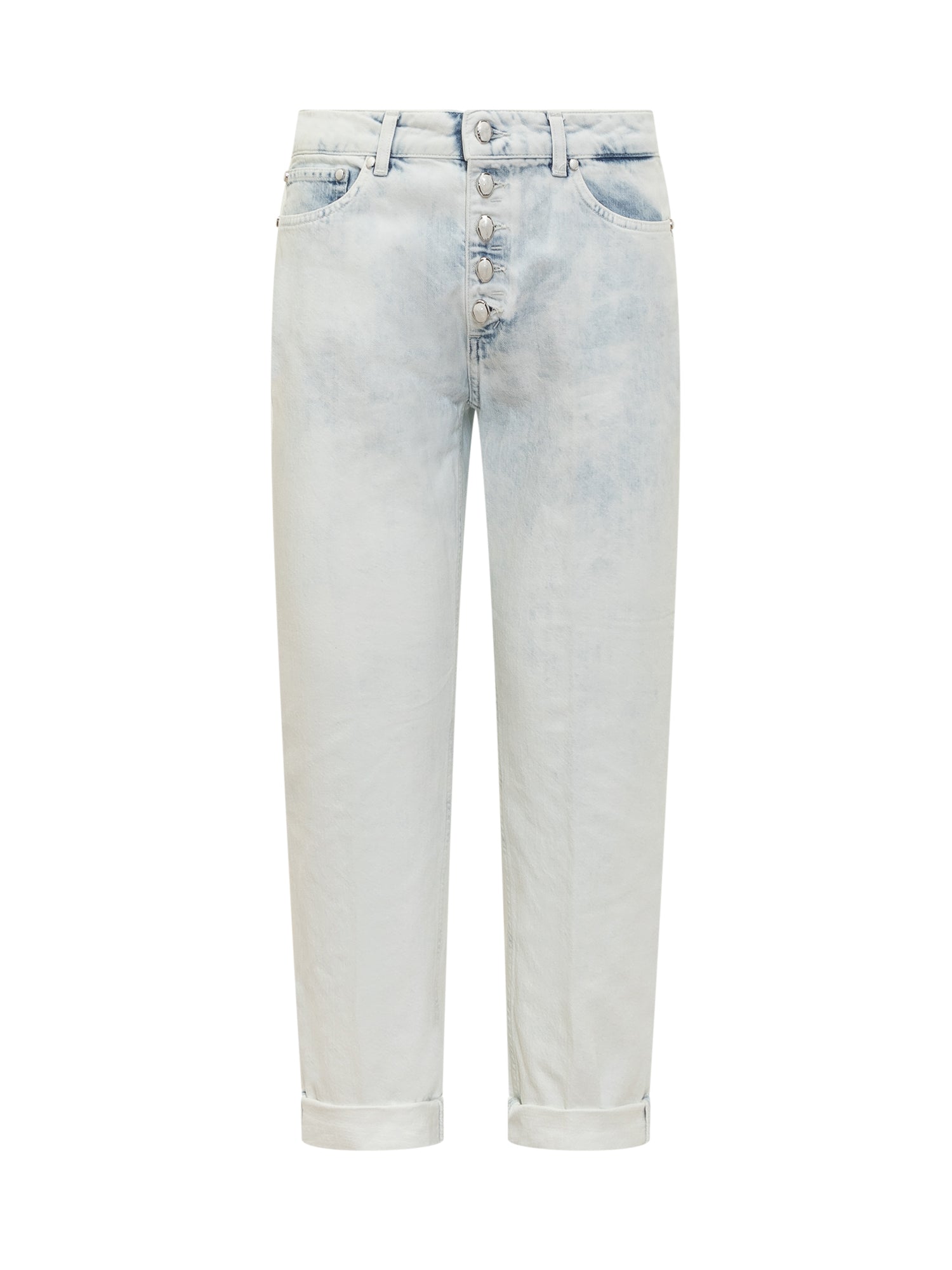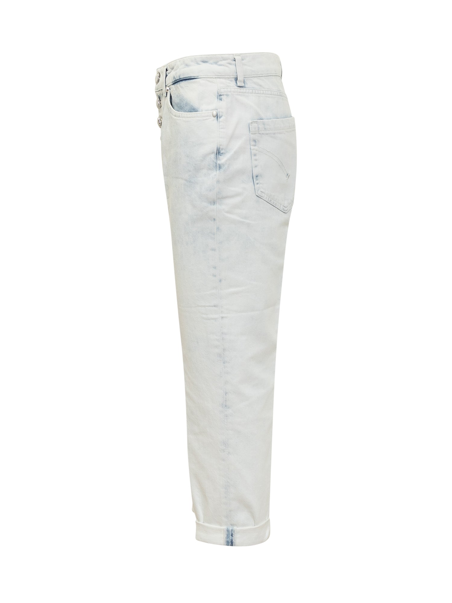 Straight fit long jeans. Button closure. Belt loops. Five pockets.