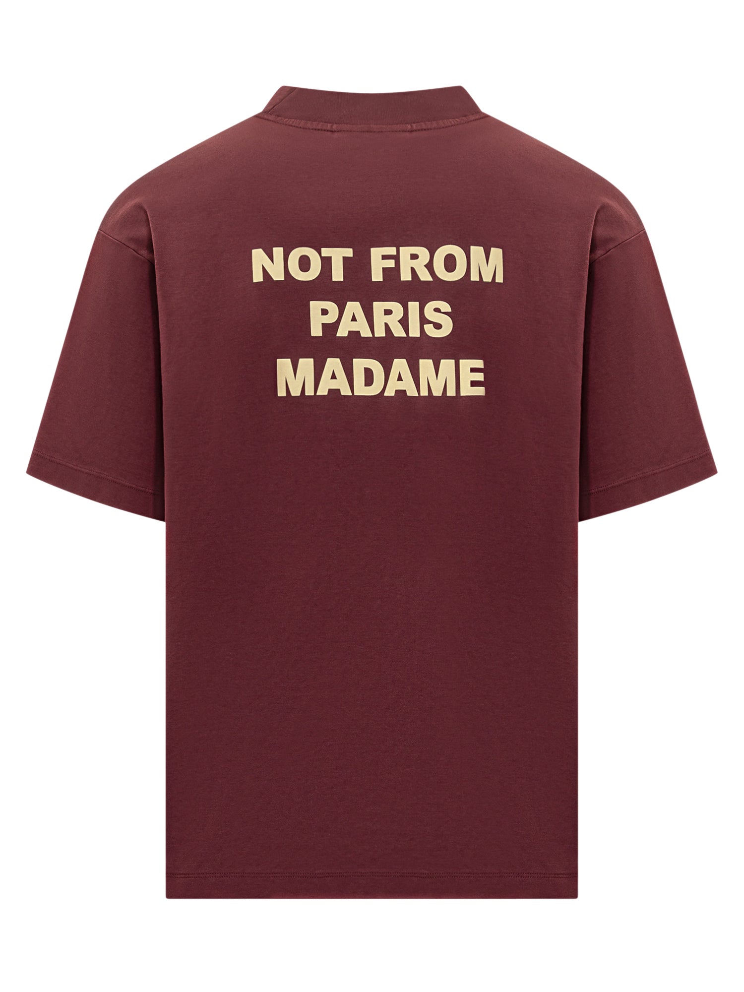 Drole de Monsieur cotton T-shirt in bordeaux with Not From Paris Madame front print.