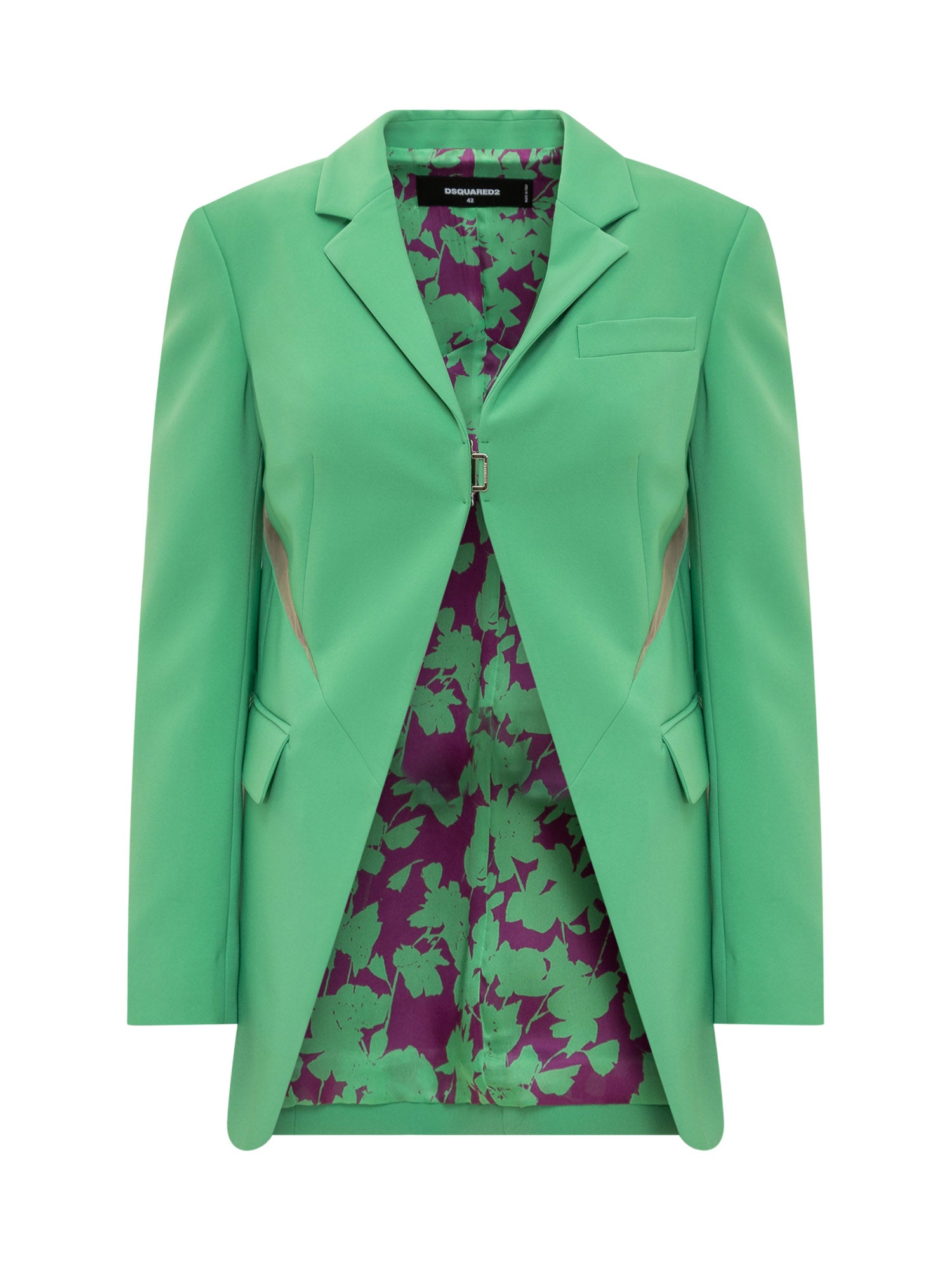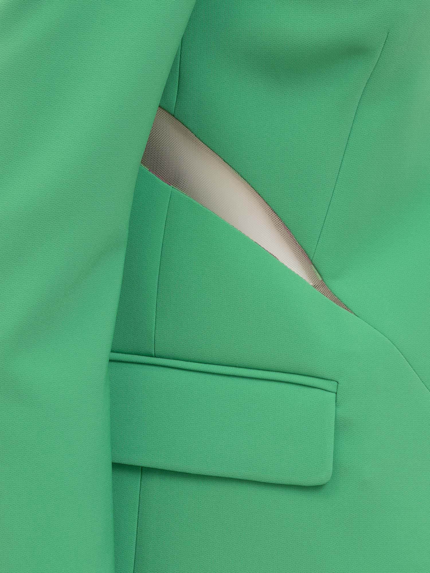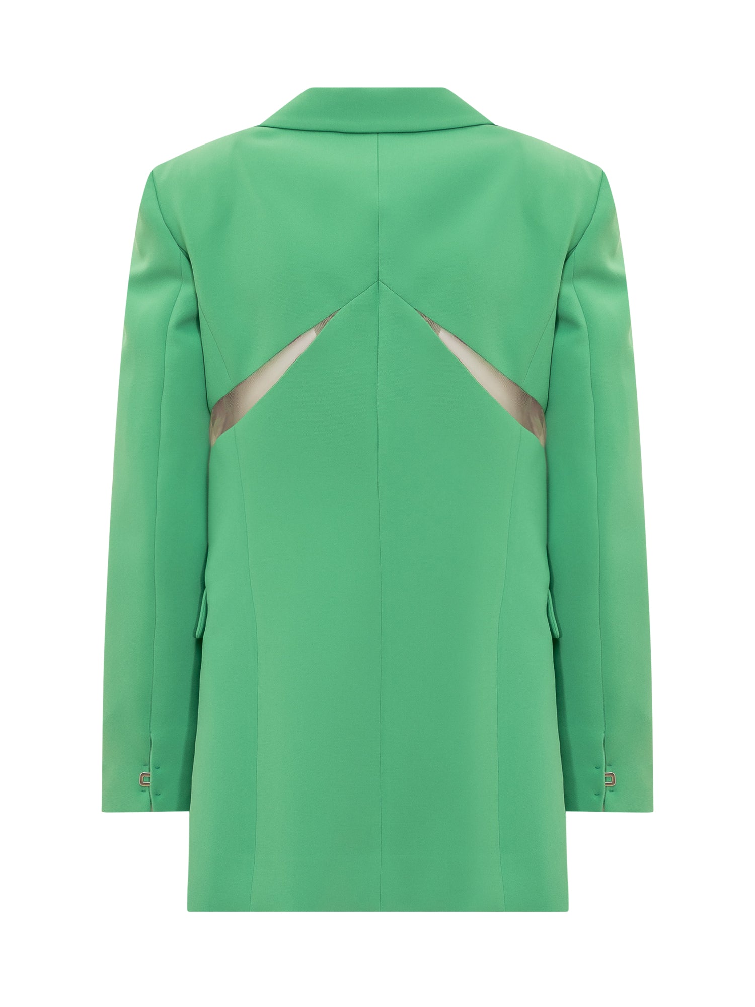 Blazer with hook closure. Two side pockets and one on the chest. Hooks on the wrists. Cut out on the hips and back.