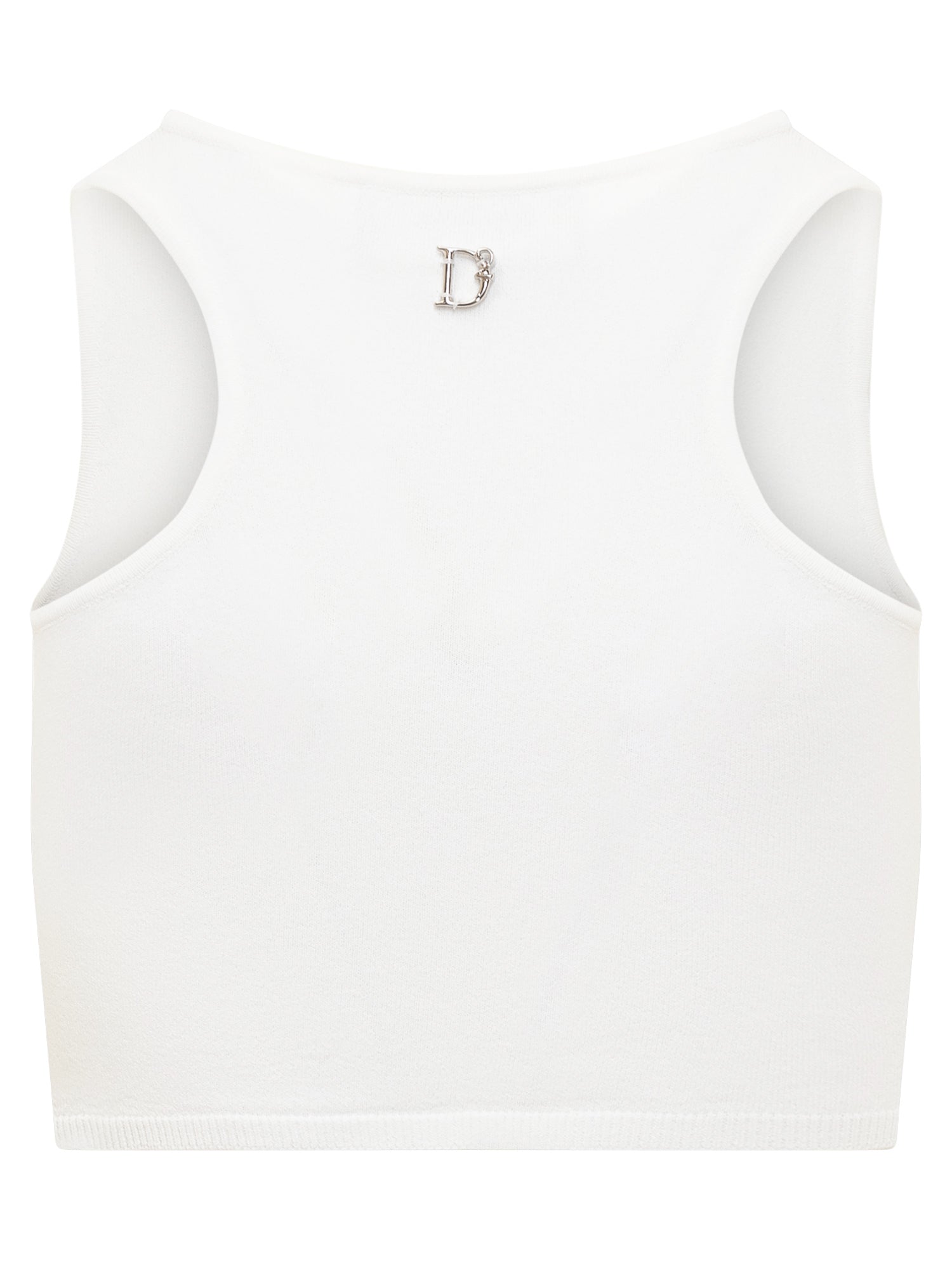 Sleeveless top. Round neckline. Cut out on the front. Logo detail applied on the back.