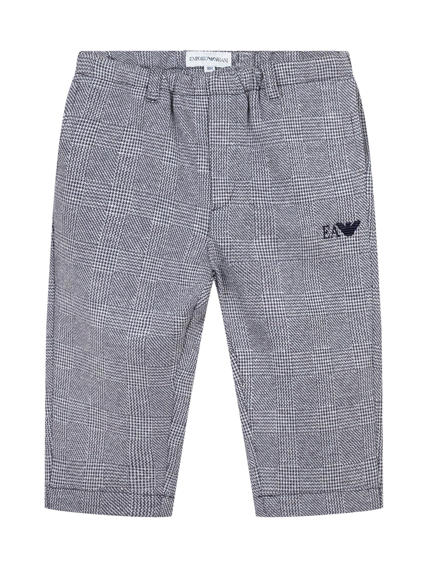 Emporio Armani boys checked trousers with elastic waistband. Finished with embroidered EA logo on the side.