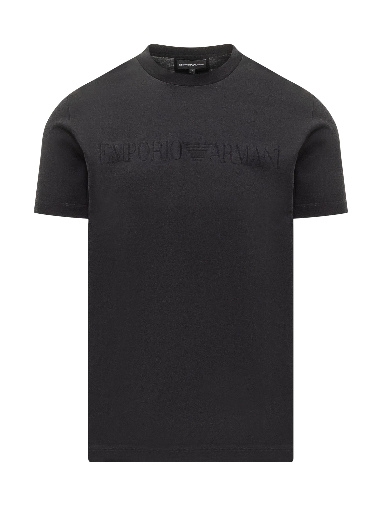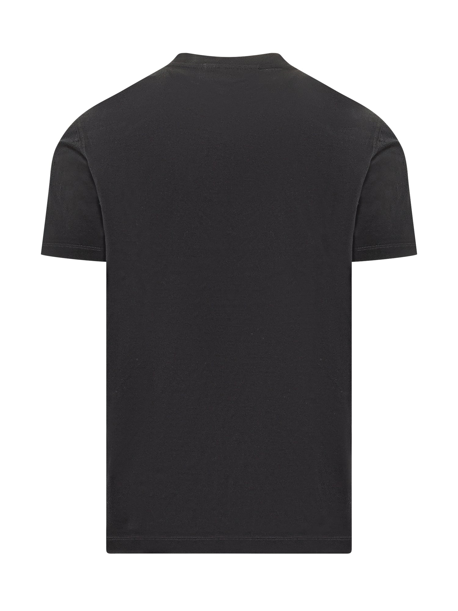 Black cotton T-shirt. Round neck. Embroidered logo.