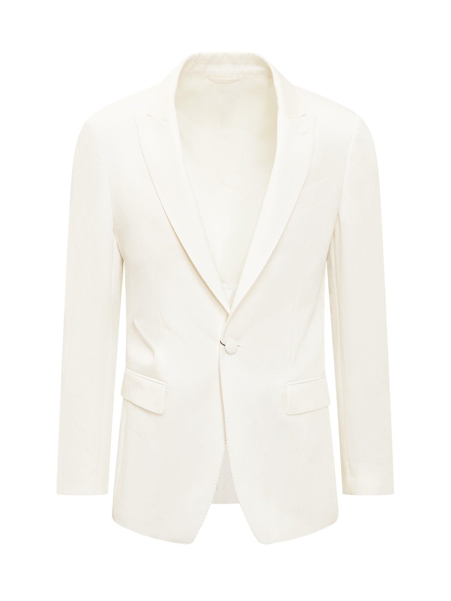 Single-breasted blazer. V-neck. Button closure. Cuffs with buttons. Three pockets.