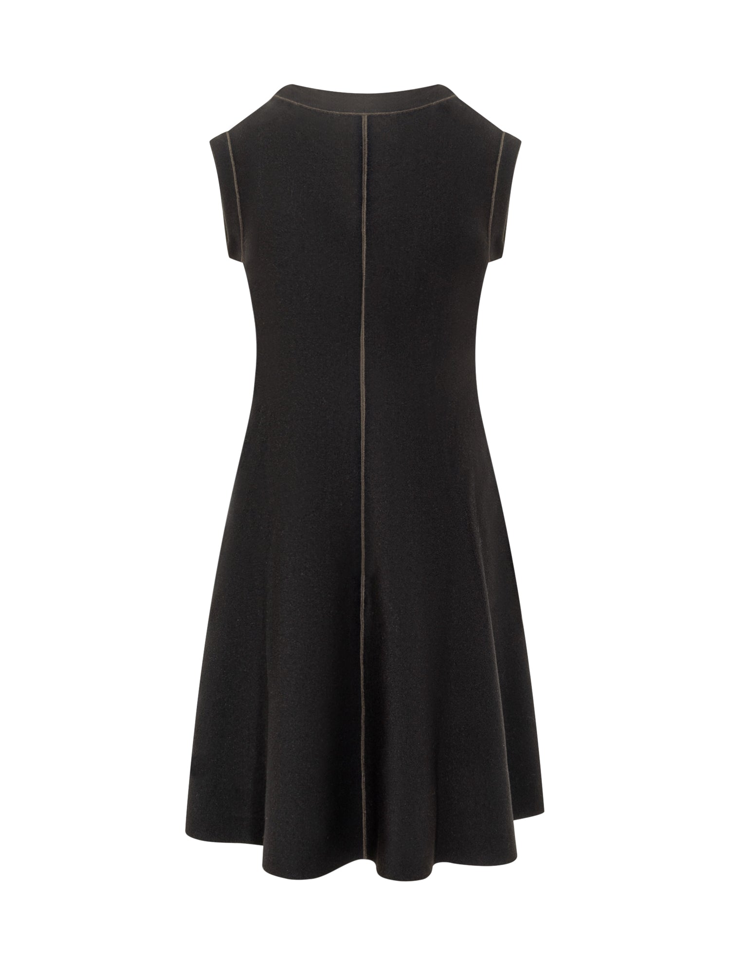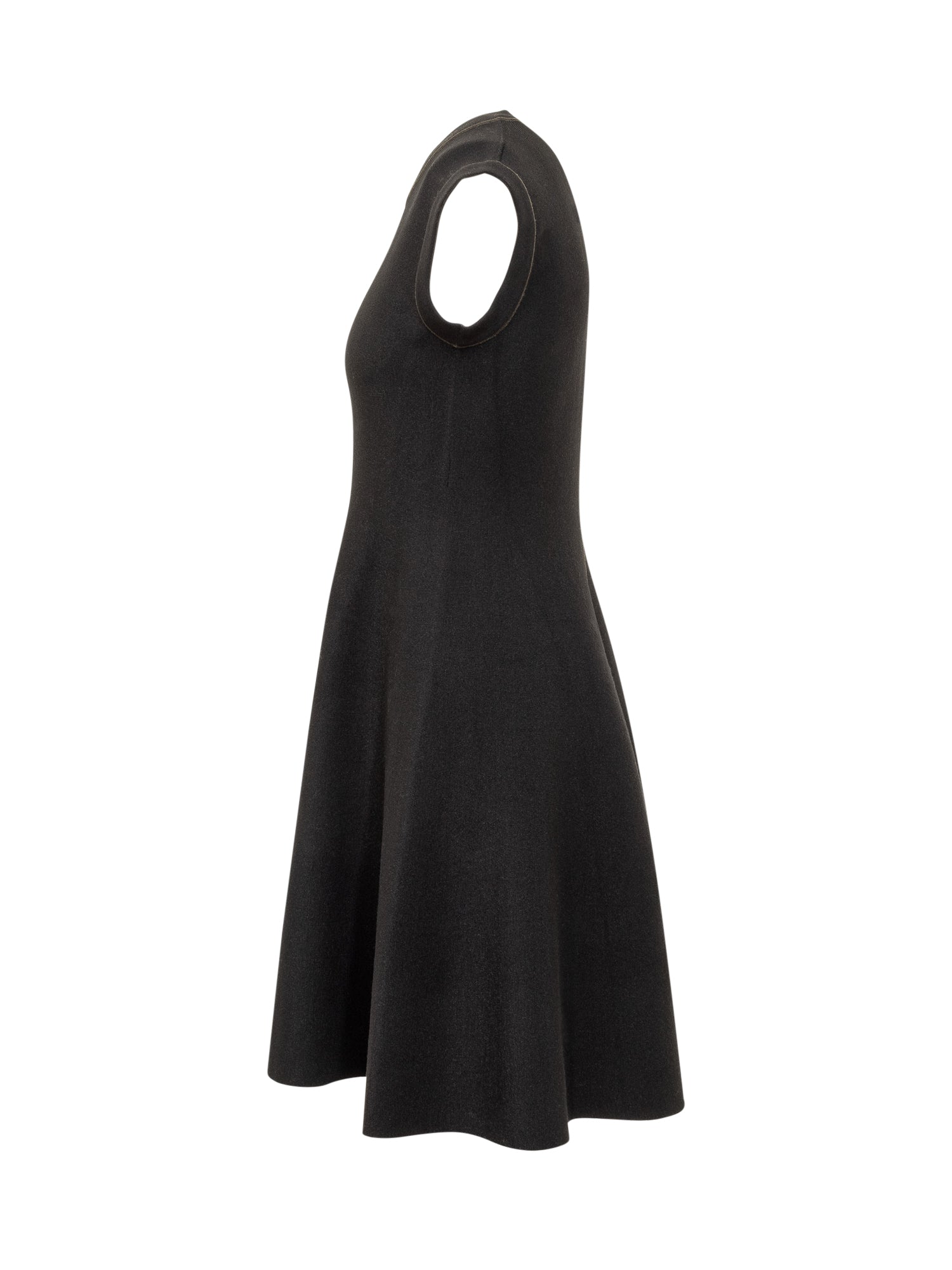 Exterior flared knit dress with sleeveless design and soft silhouette.