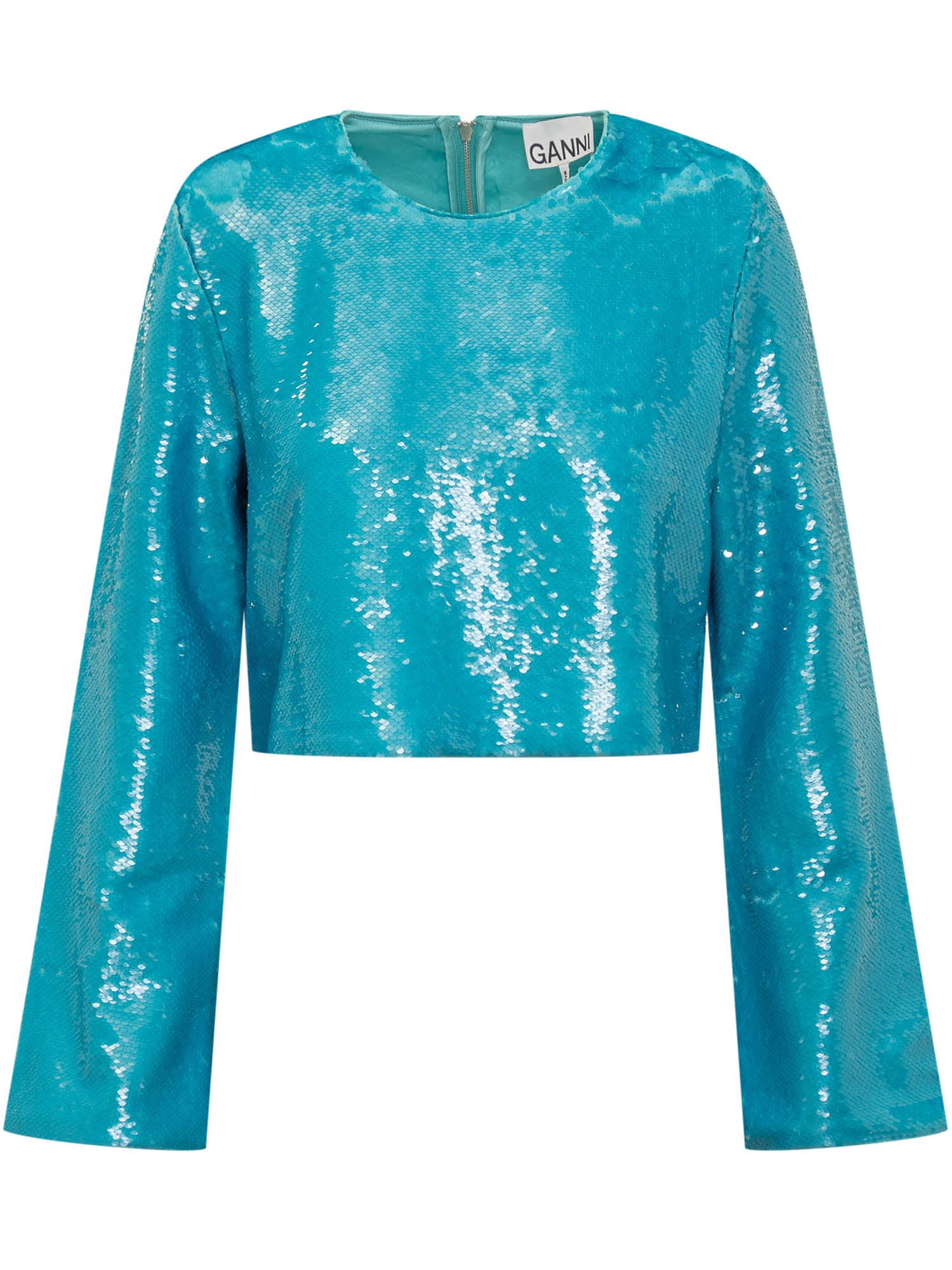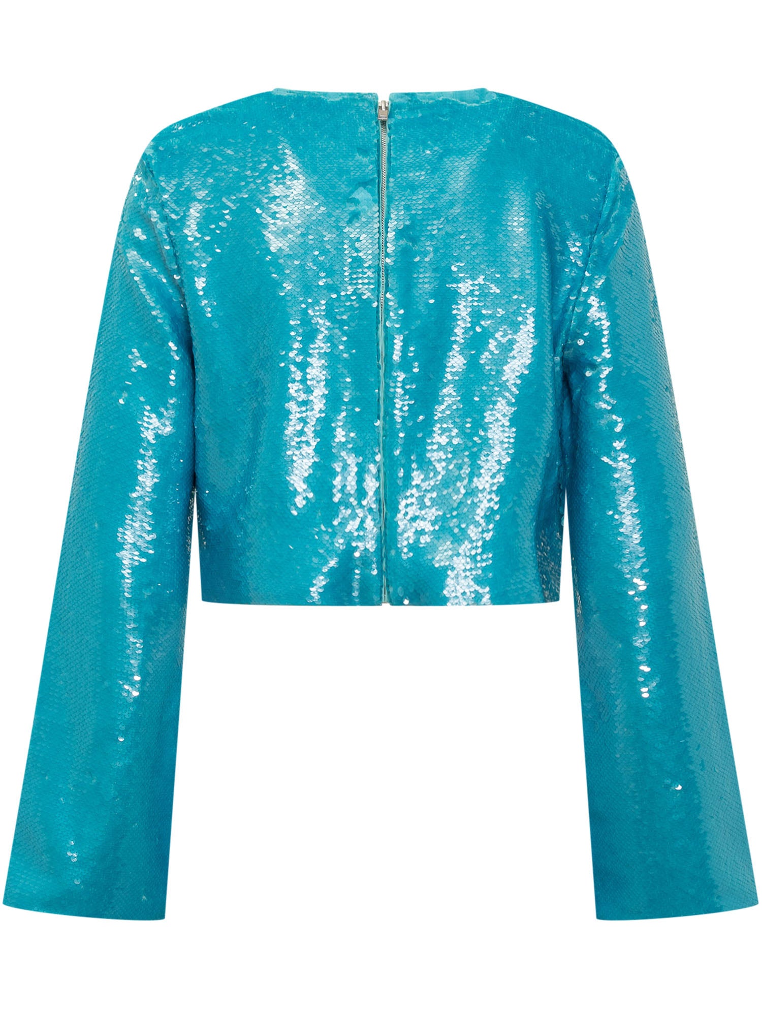 Crop blouse. Long sleeves. Zip back closure. Round neck.