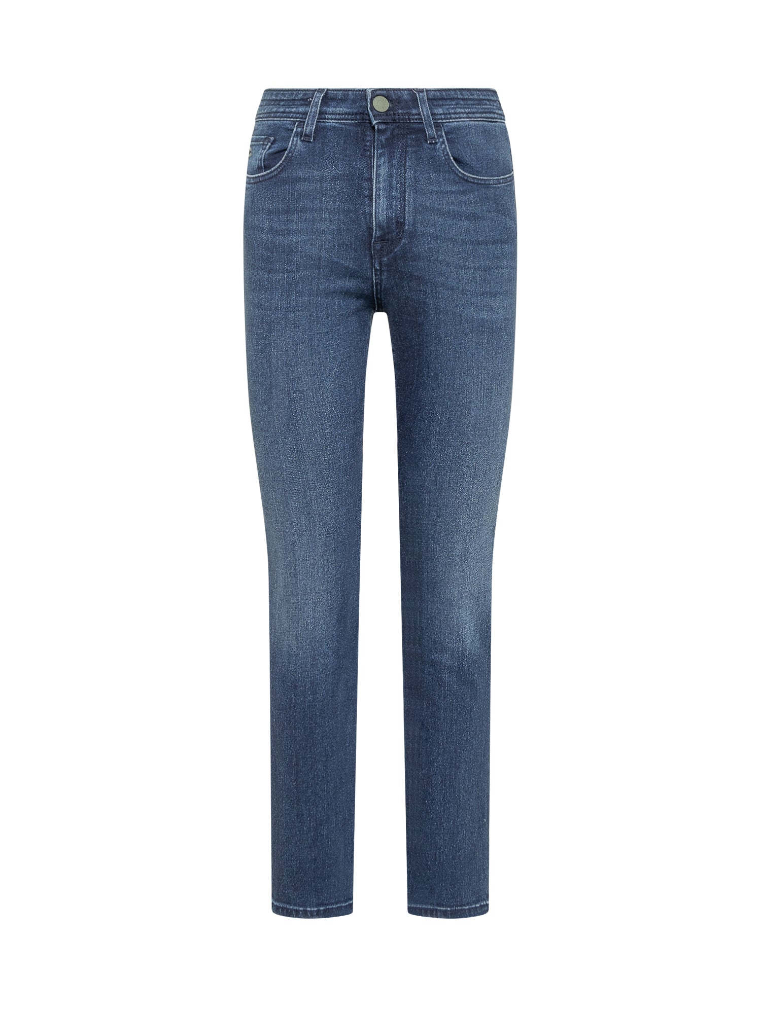 Long jeans. Button and zip closure. Belt loops. Five pockets.