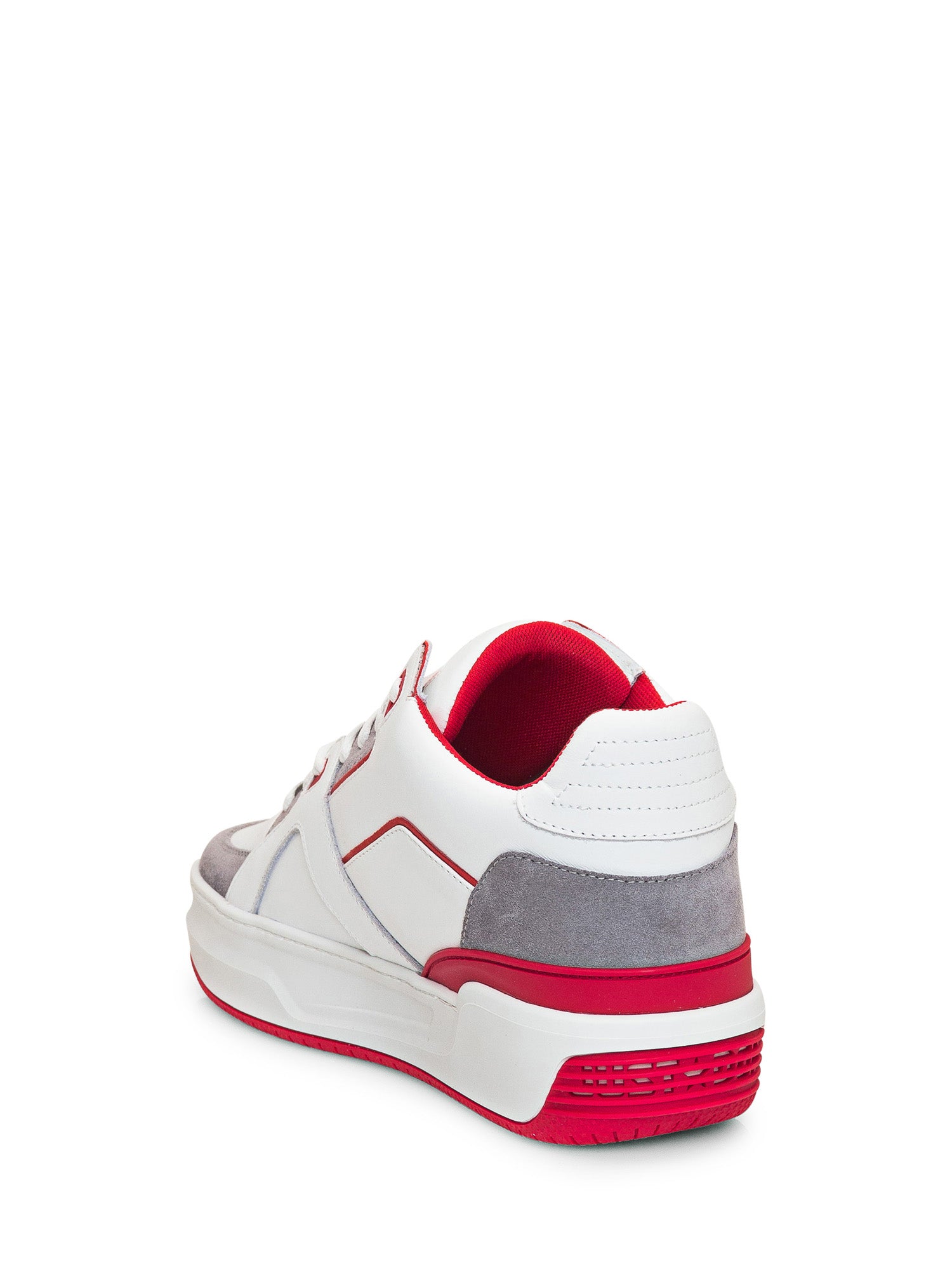 White low sneaker. Closure with laces. Suede inserts. Logo on the tongue.