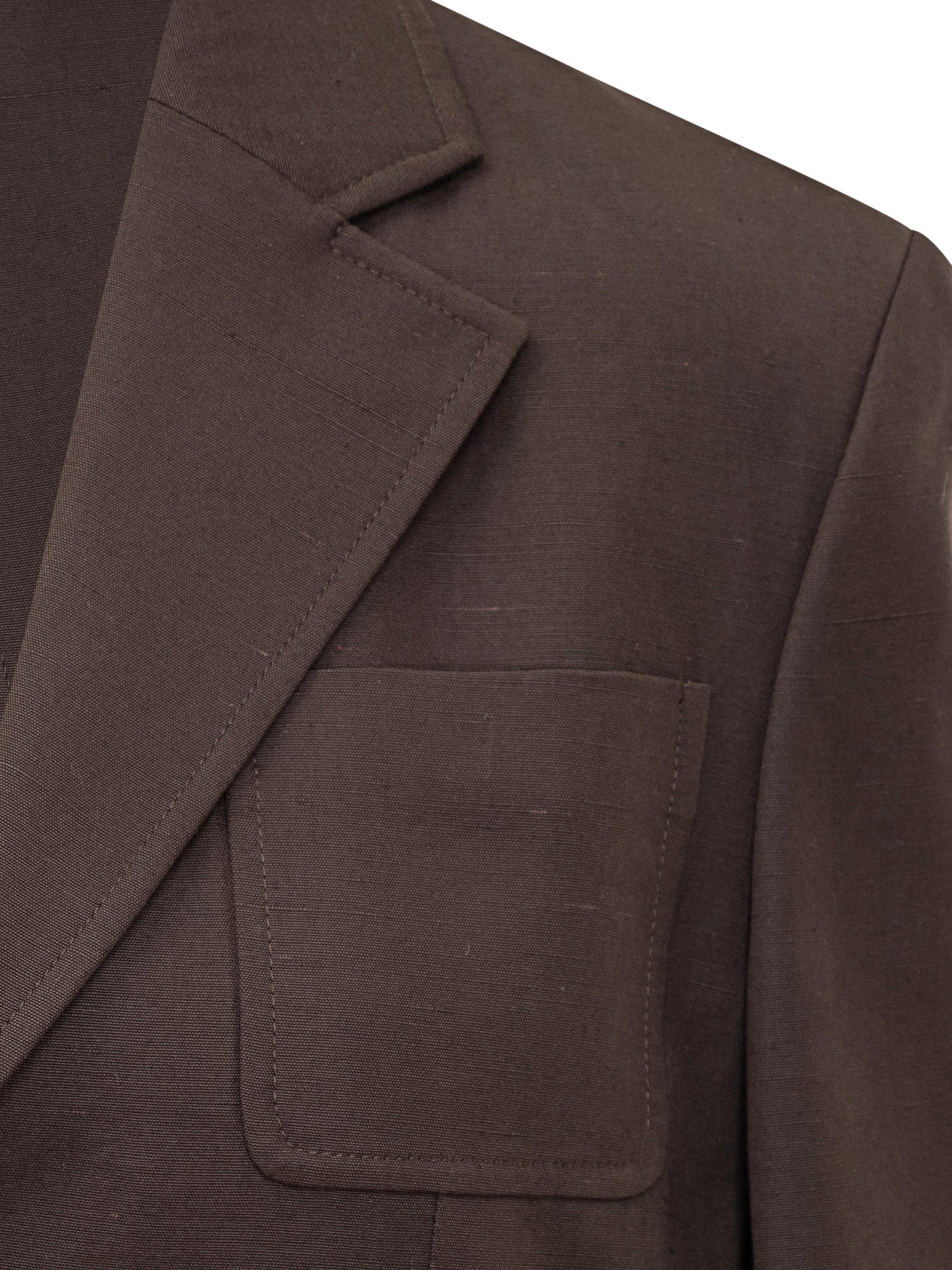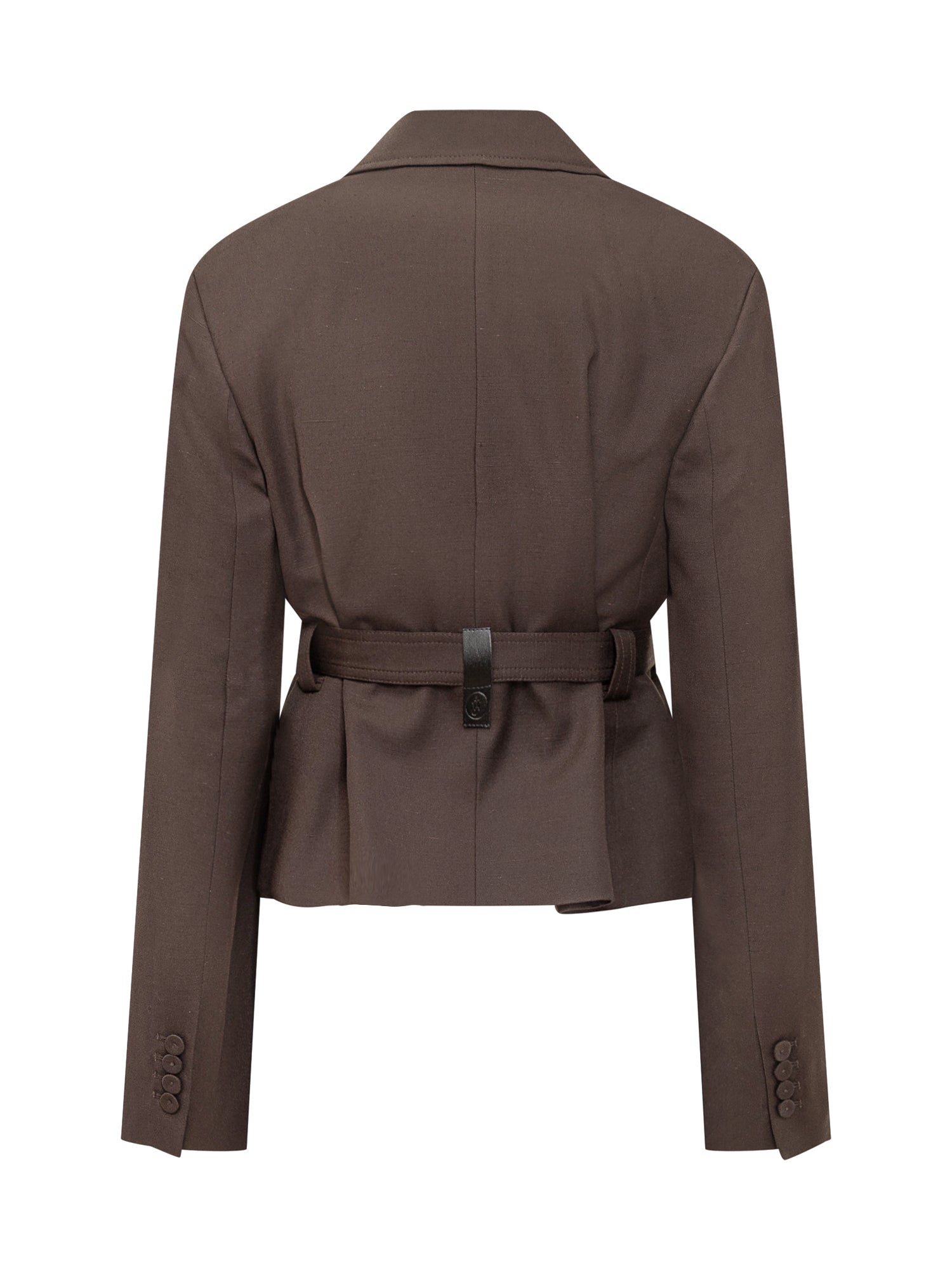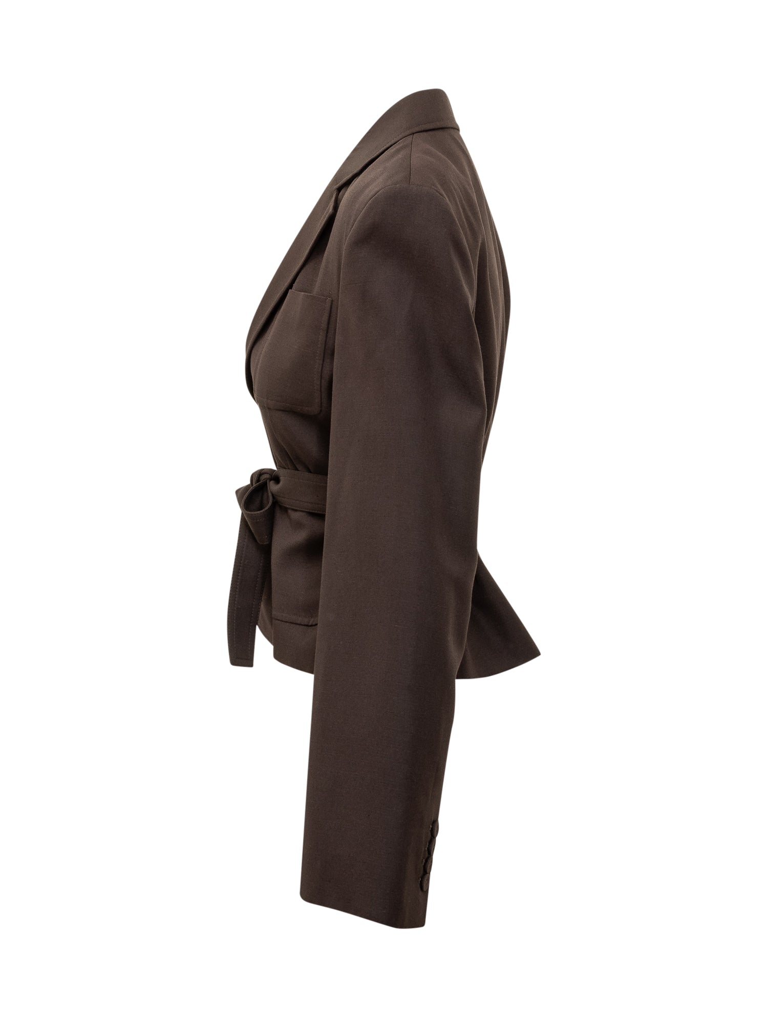 Brown cropped jacket by JW Anderson with waist belt and tailored details.