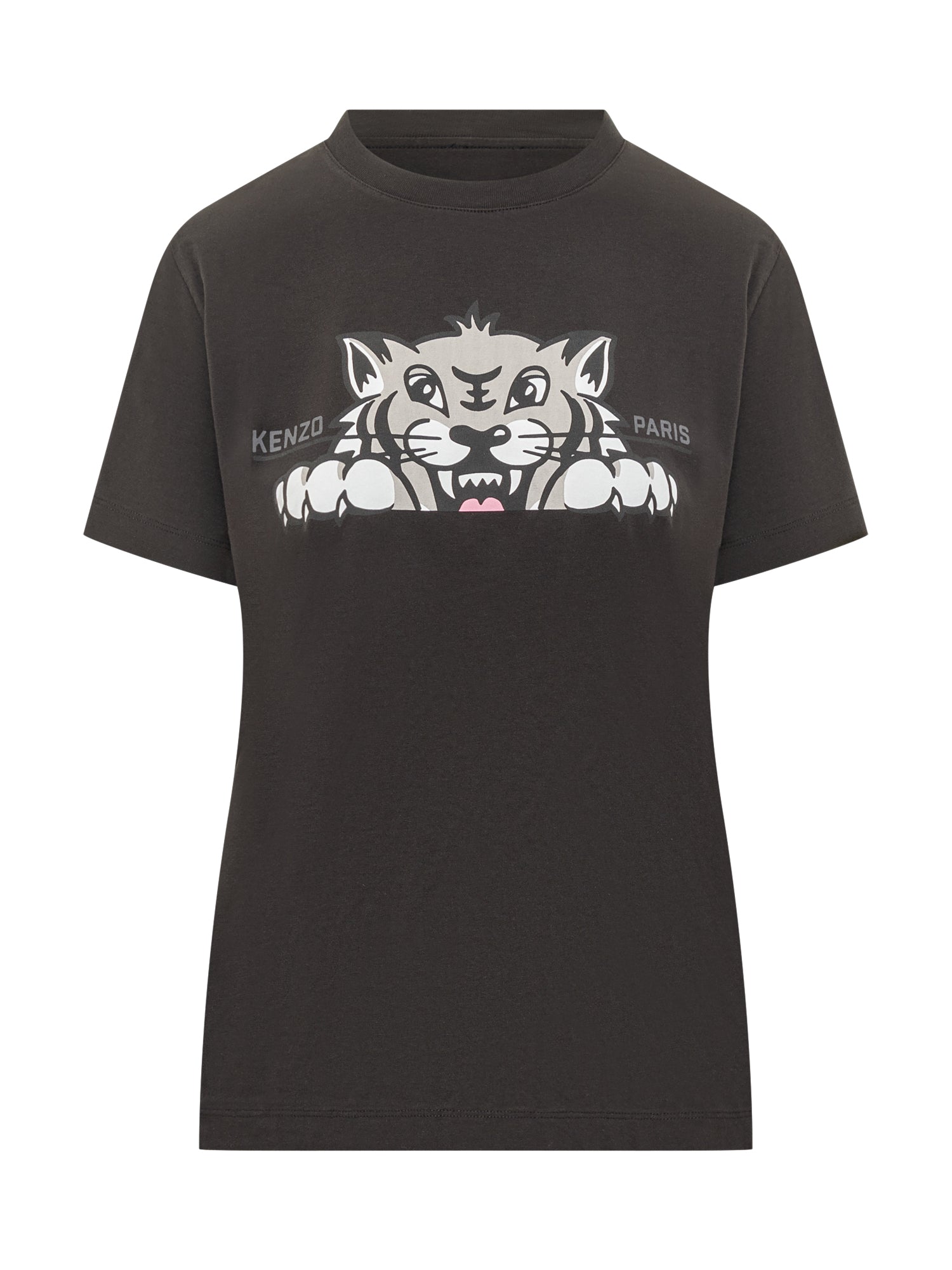 Black Kenzo cotton T-shirt featuring a stylized tiger graphic on the front.