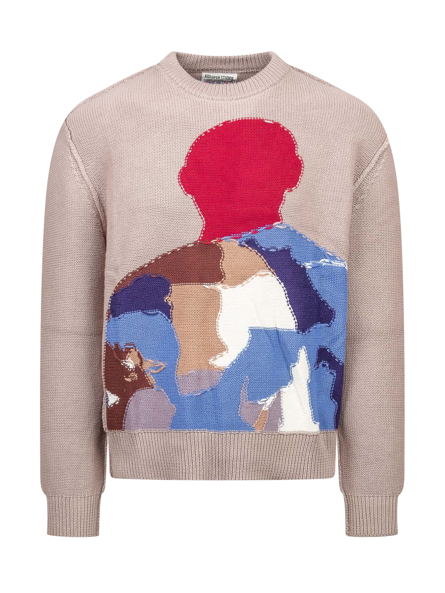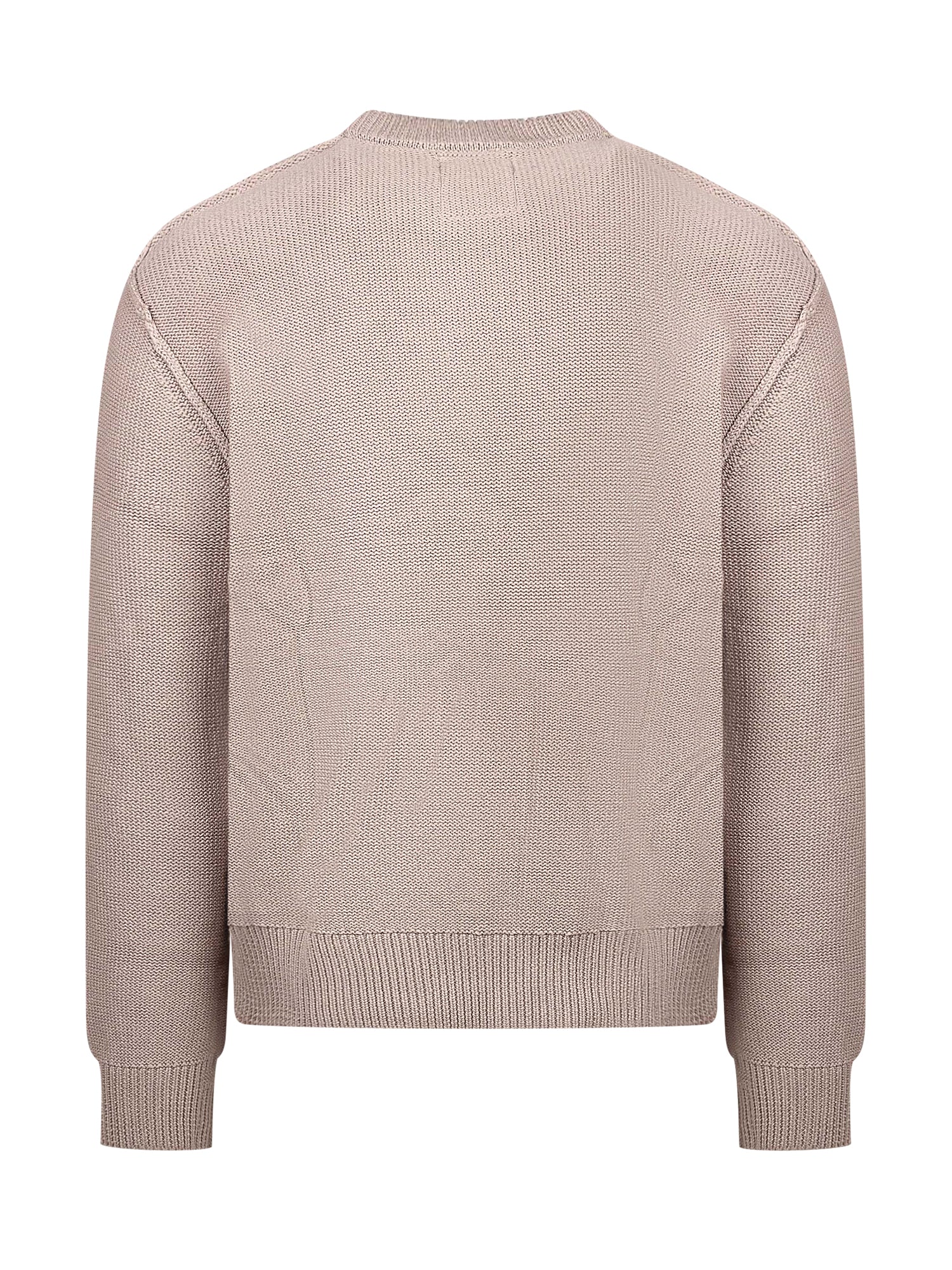 Long-sleeved cotton shirt. Crew neck. Ribbed hemline. Jacquard intarsia pattern on the front.