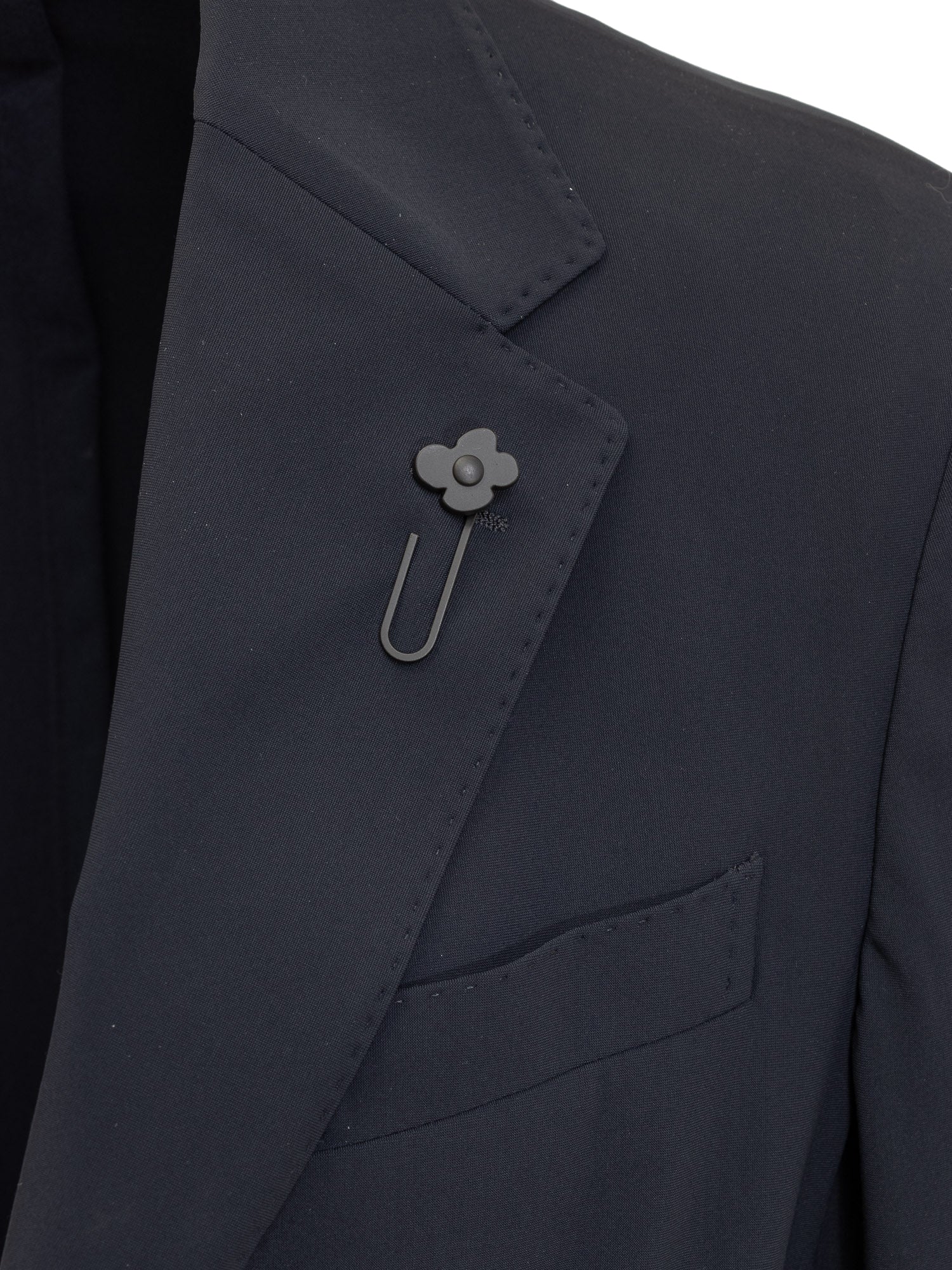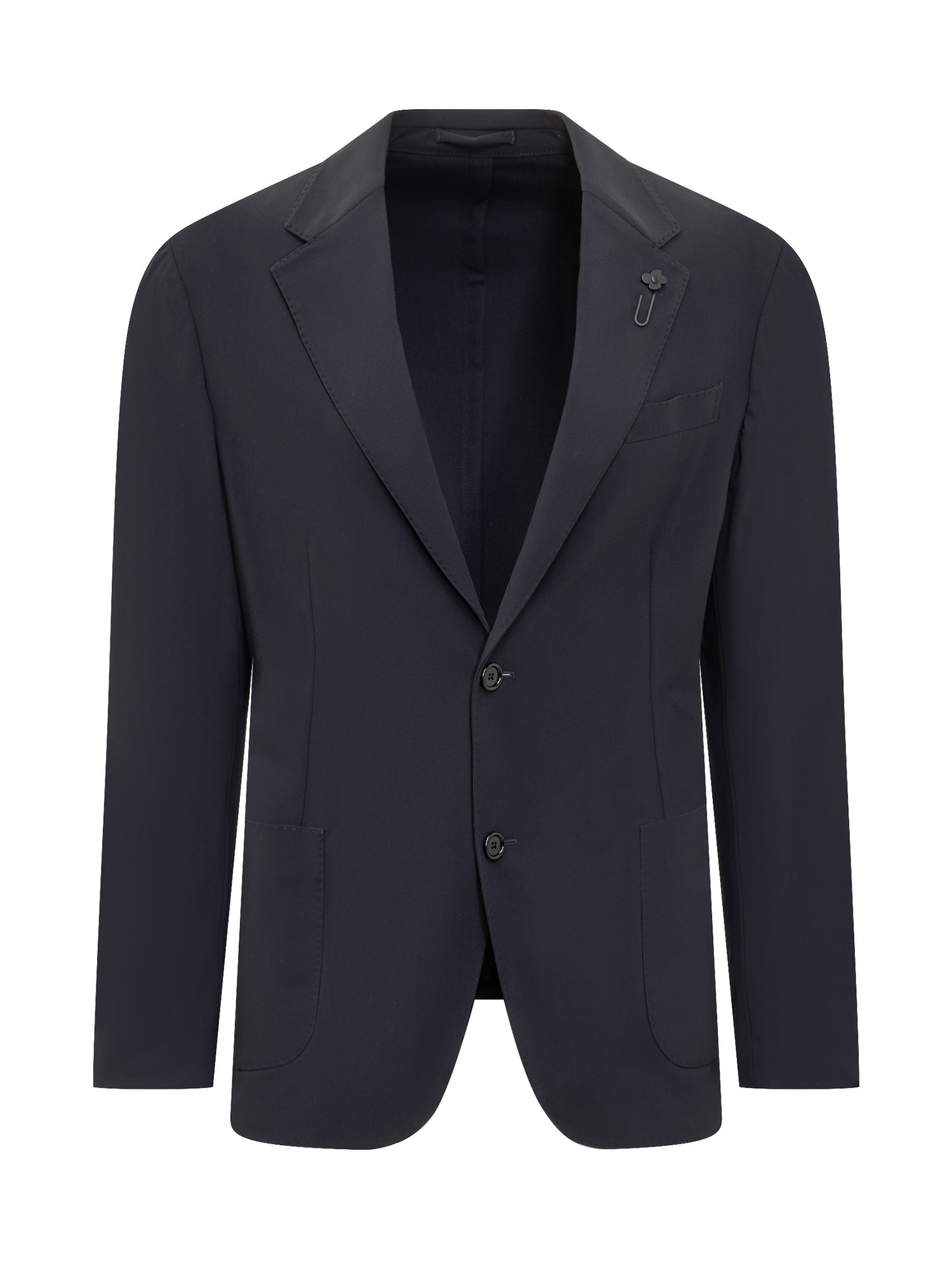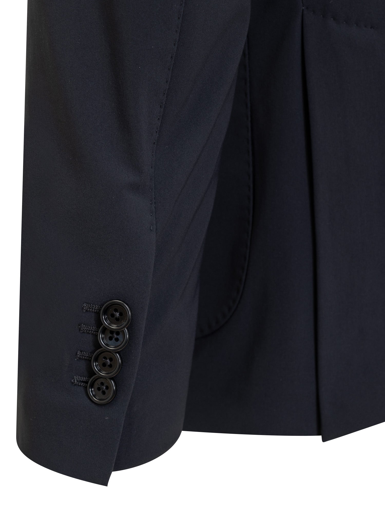 Suit with single-breasted jacket. Closure with buttons. Two side pockets and one on the chest. Buttons on the cuffs. Trousers with four pockets. Belt loops.
