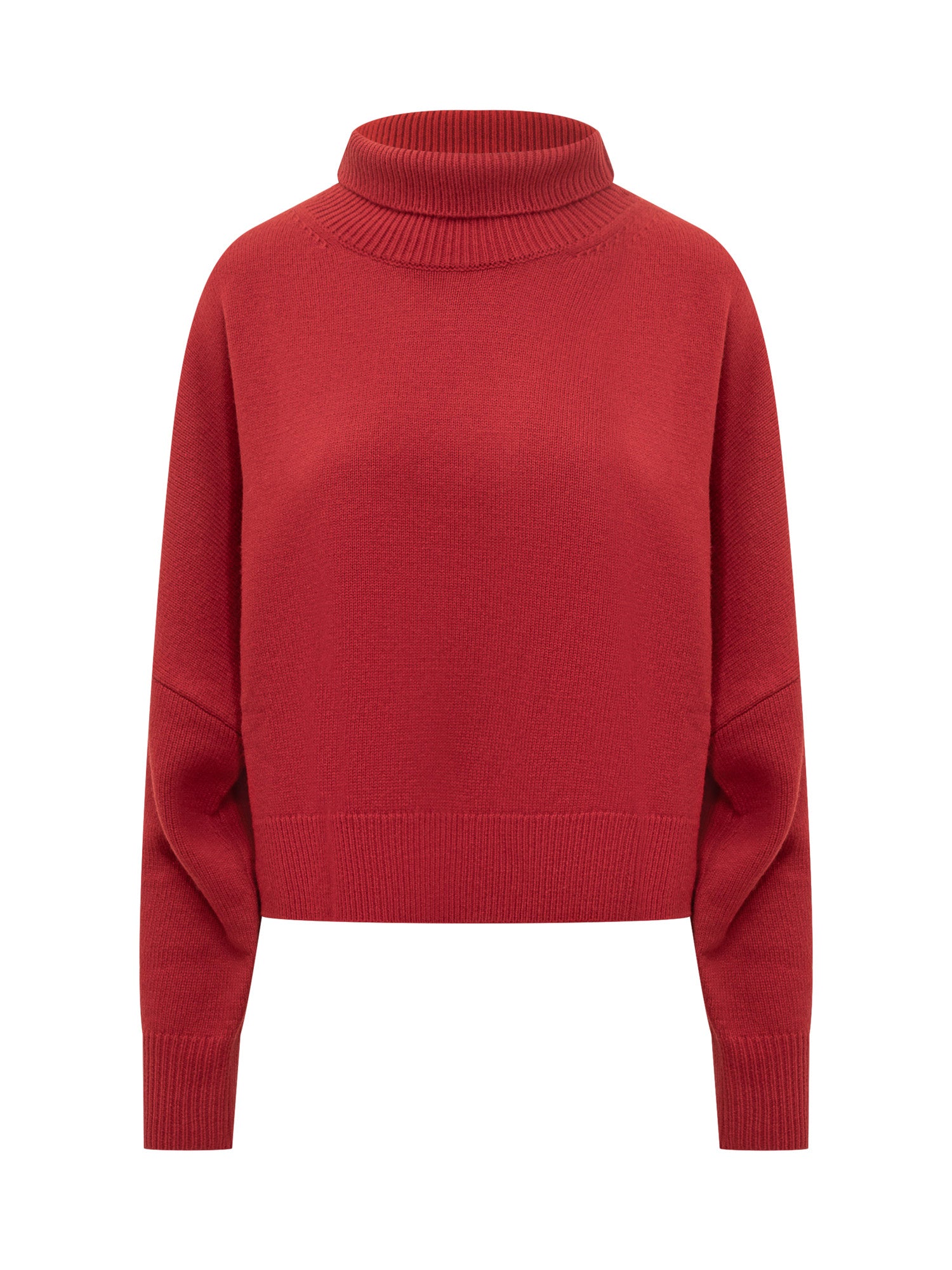 Loulou Studio red sweater in soft knit with high neck and long sleeves.