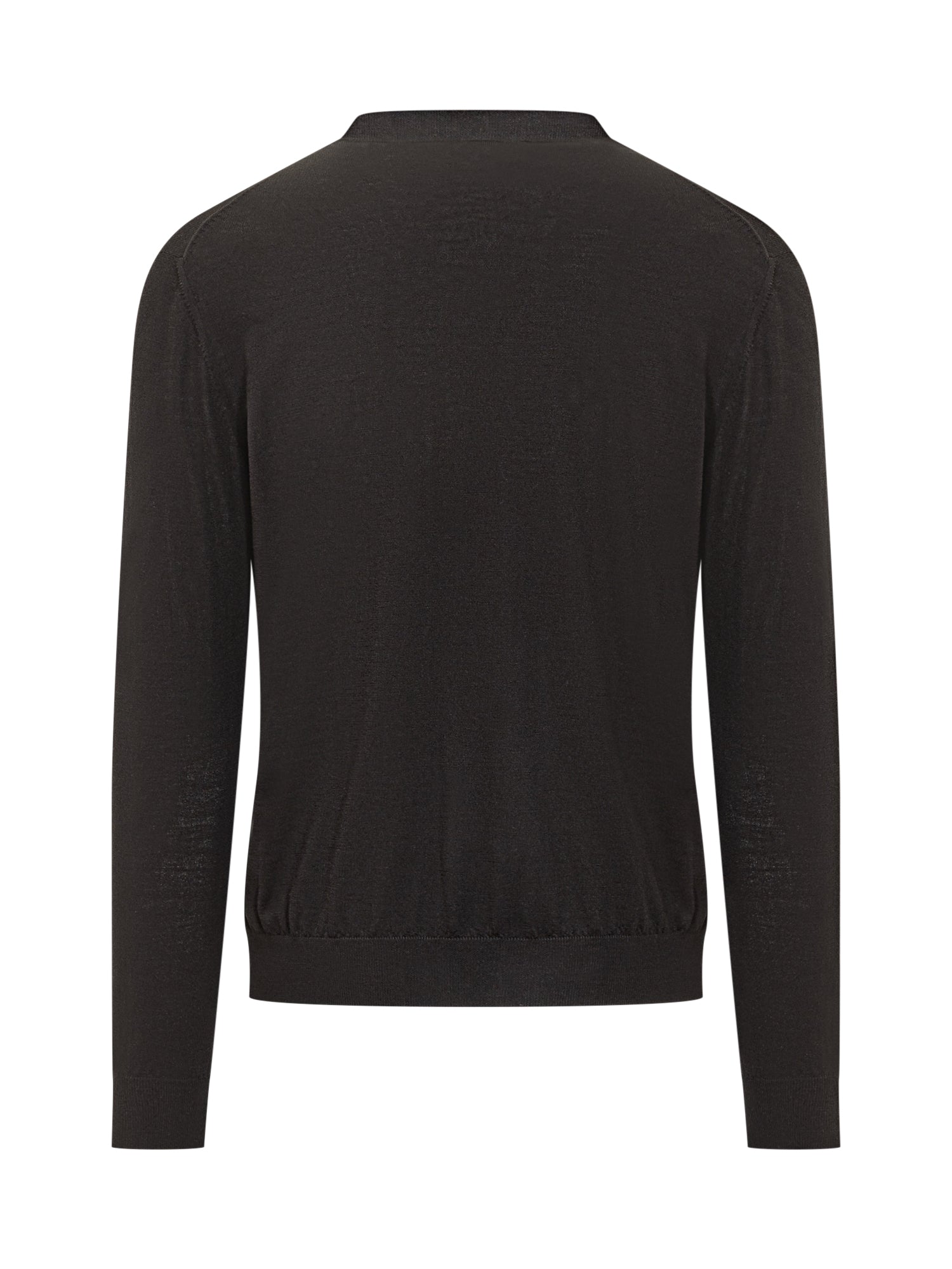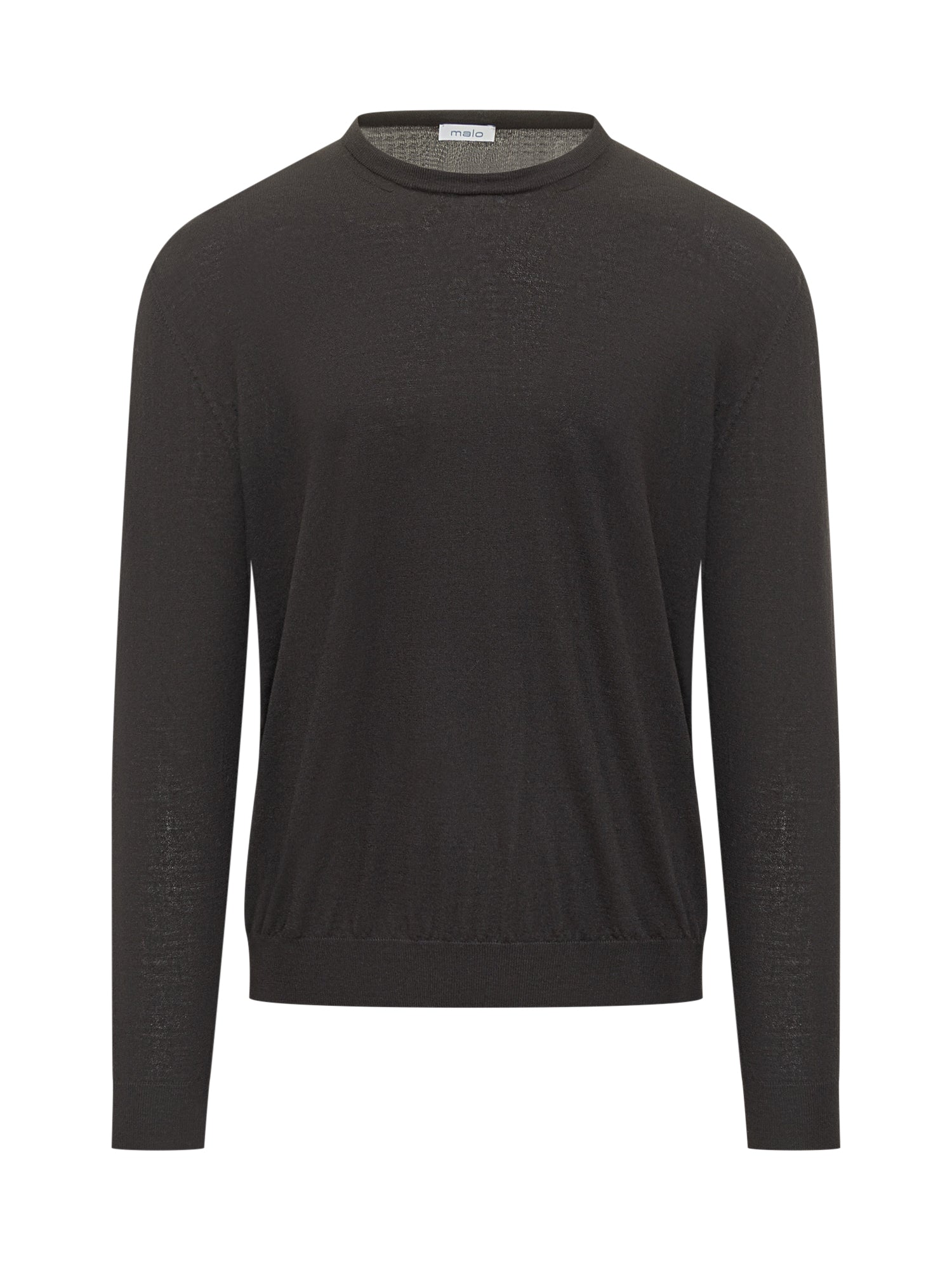 Malo black long-sleeve sweater made from lightweight wool. Minimal crew-neck design.