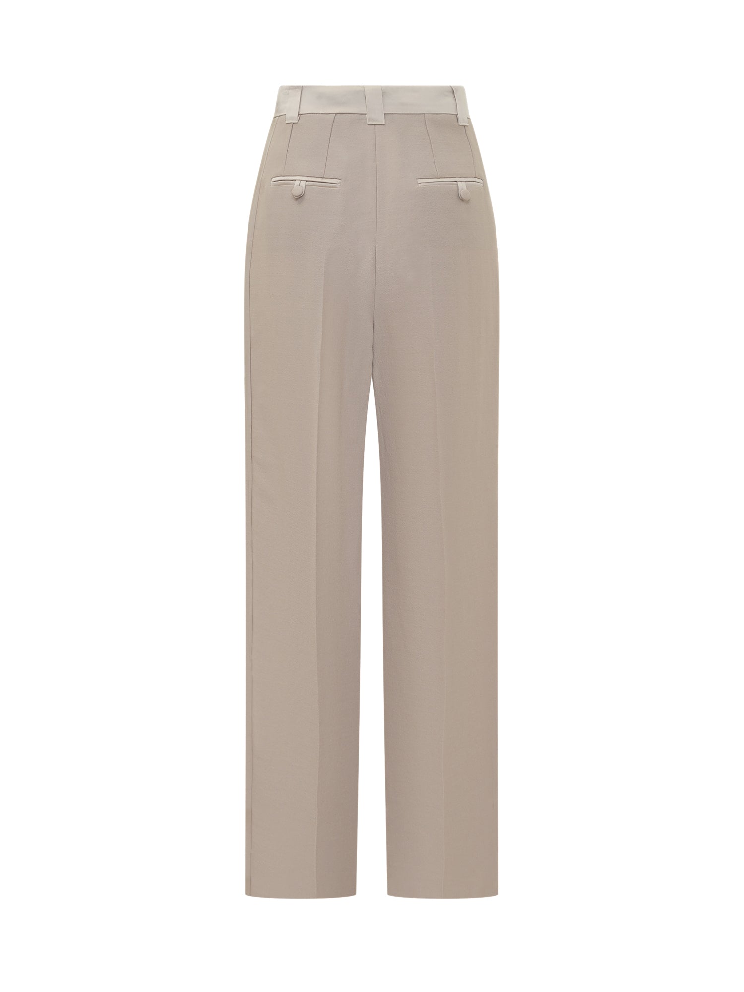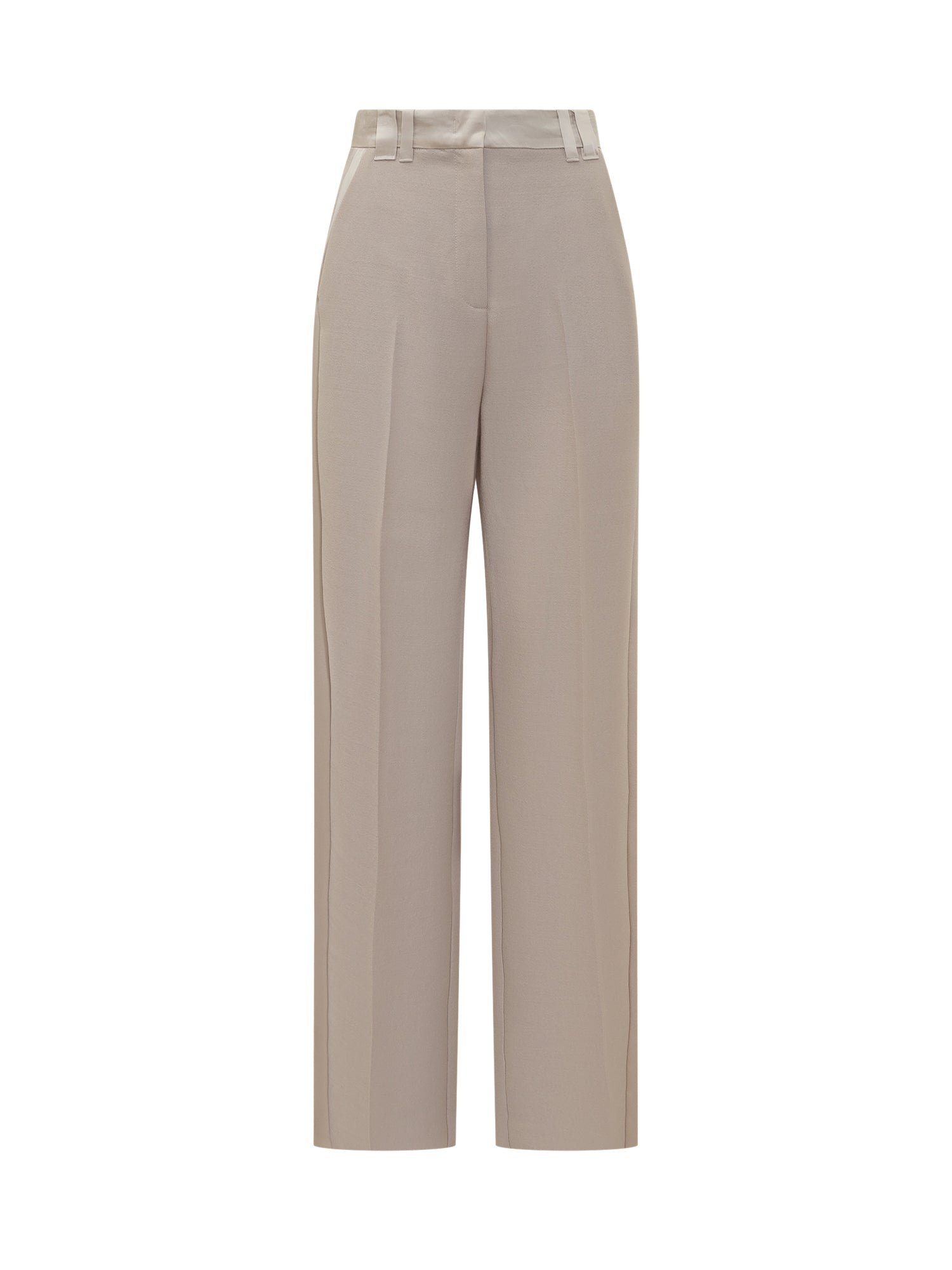 Marella Co-Design beige trousers with regular waist, zip and button closure.