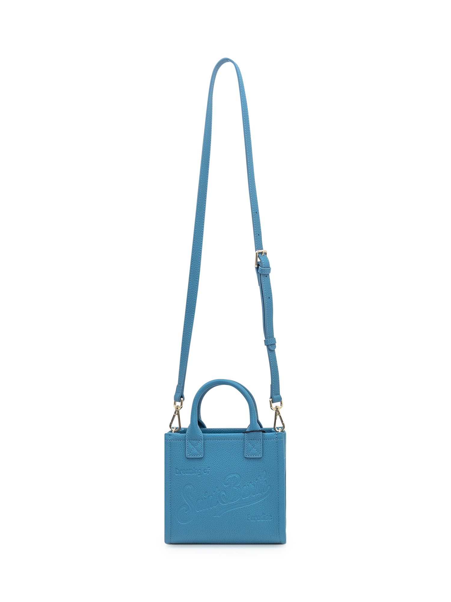 MC2 Saint Barth Vanity Bag Mini in textured light blue leather with embossed logo.