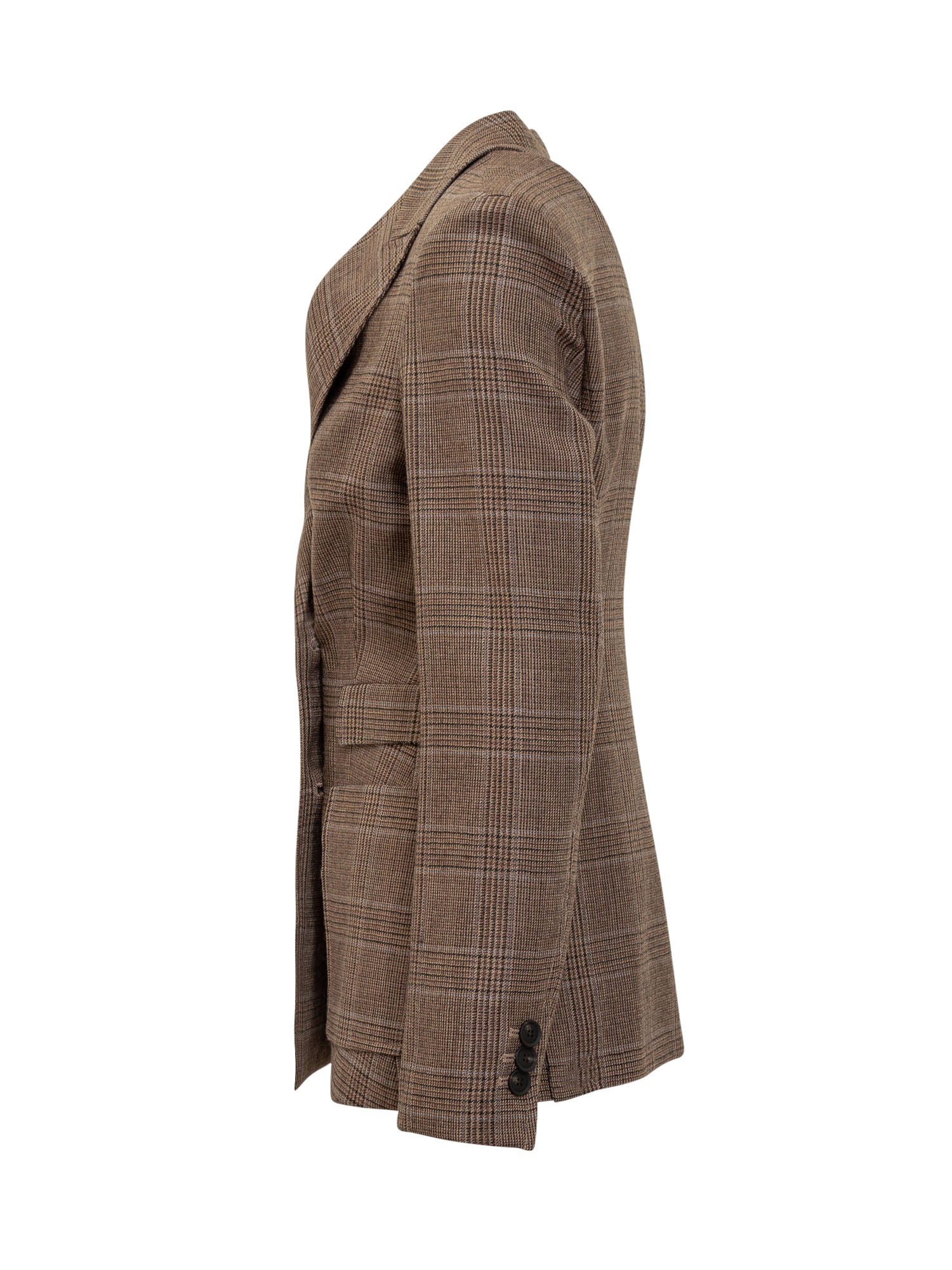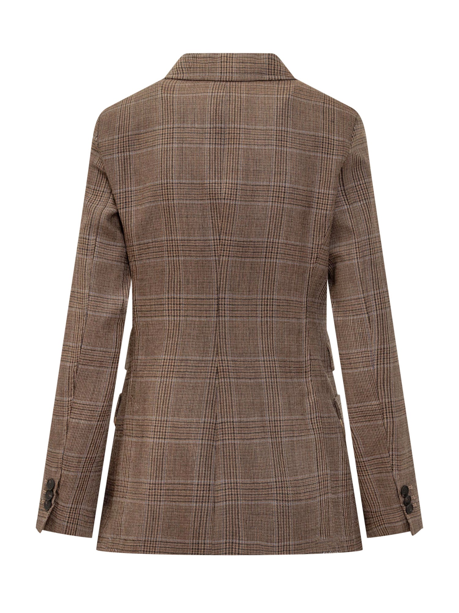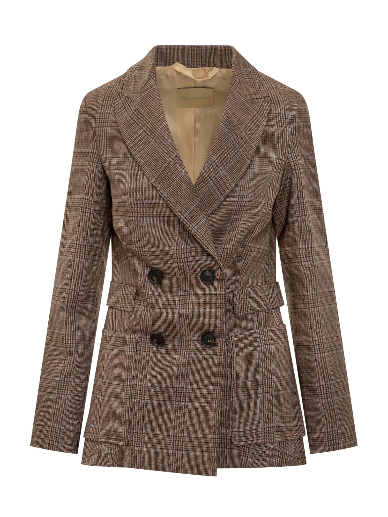 Monom\u00EC double-breasted blazer in Prince of Wales check fabric, with classic lapels and patch pockets.