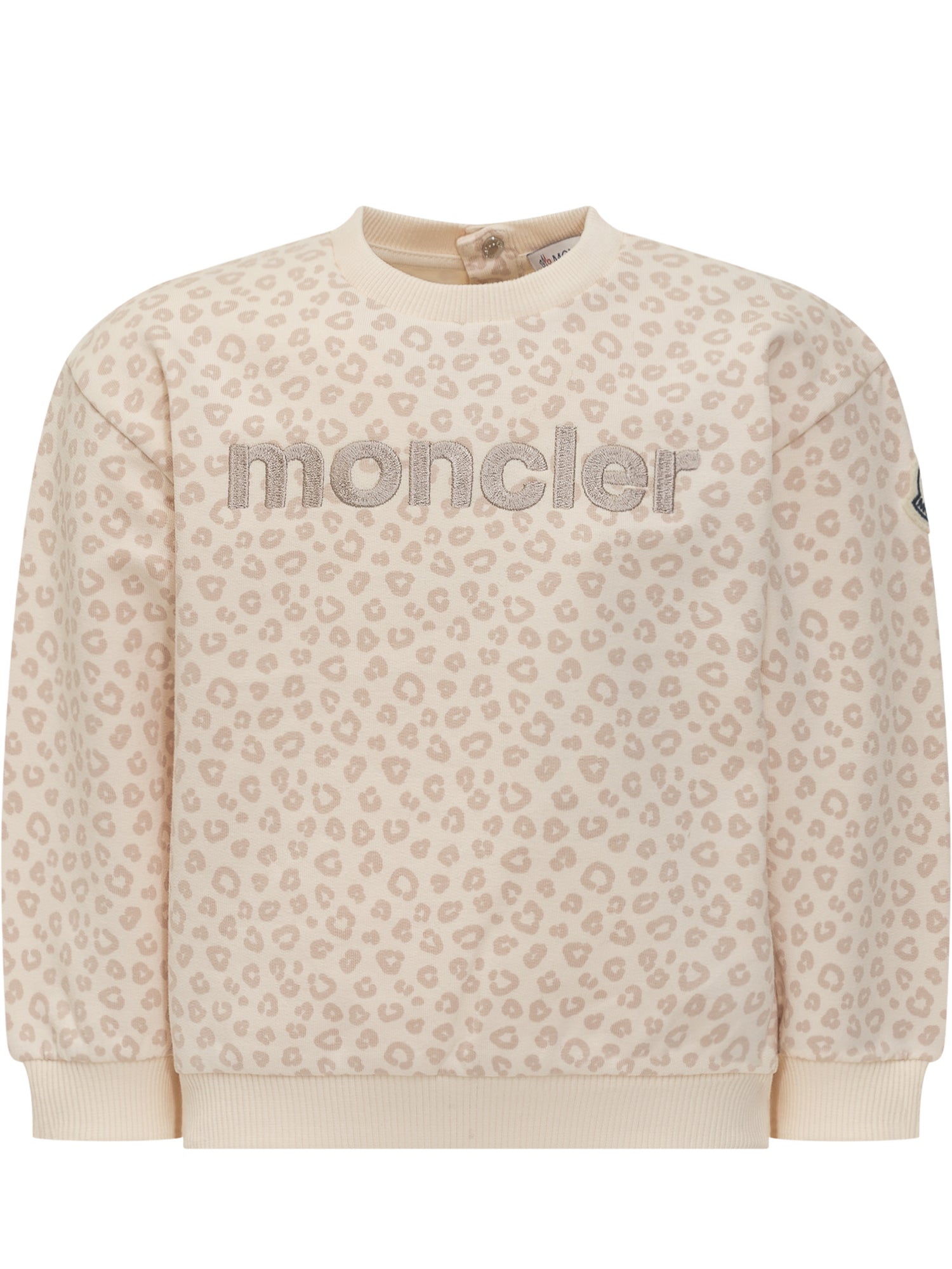 Two-piece suit. Crew-neck sweatshirt with ribbed hems. Button closure on back. Logo on front and sleeve.