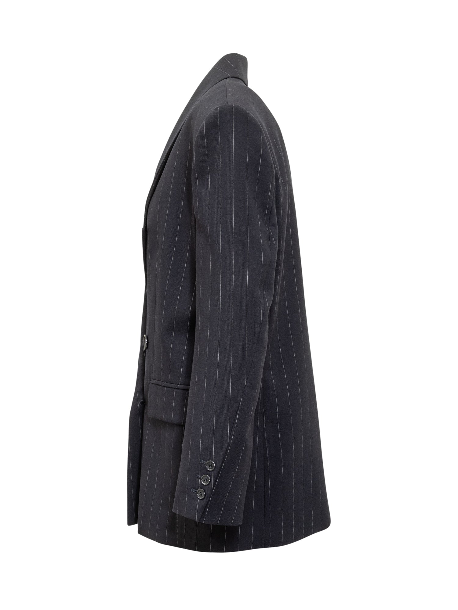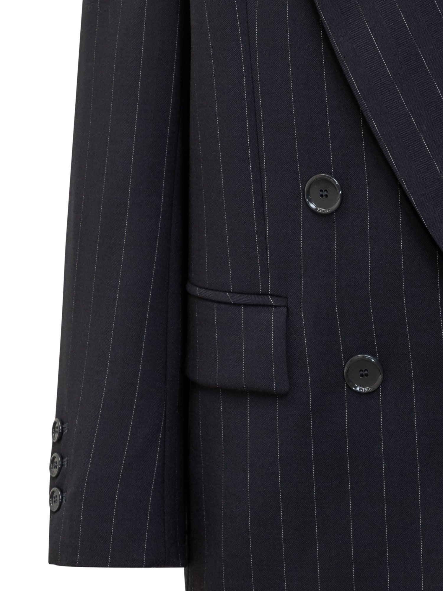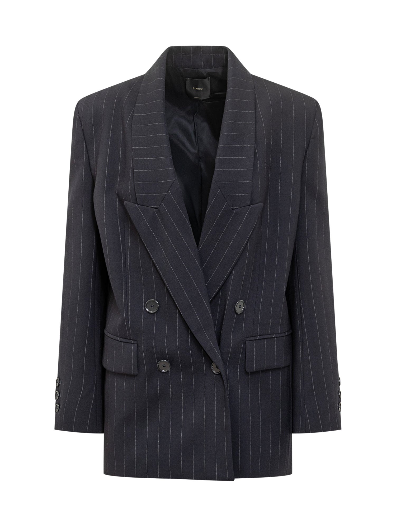 Pinko pinstripe blazer in an oversized fit with double-breasted closure. Features wide lapels, flap pockets, and tone-on-tone buttons.
