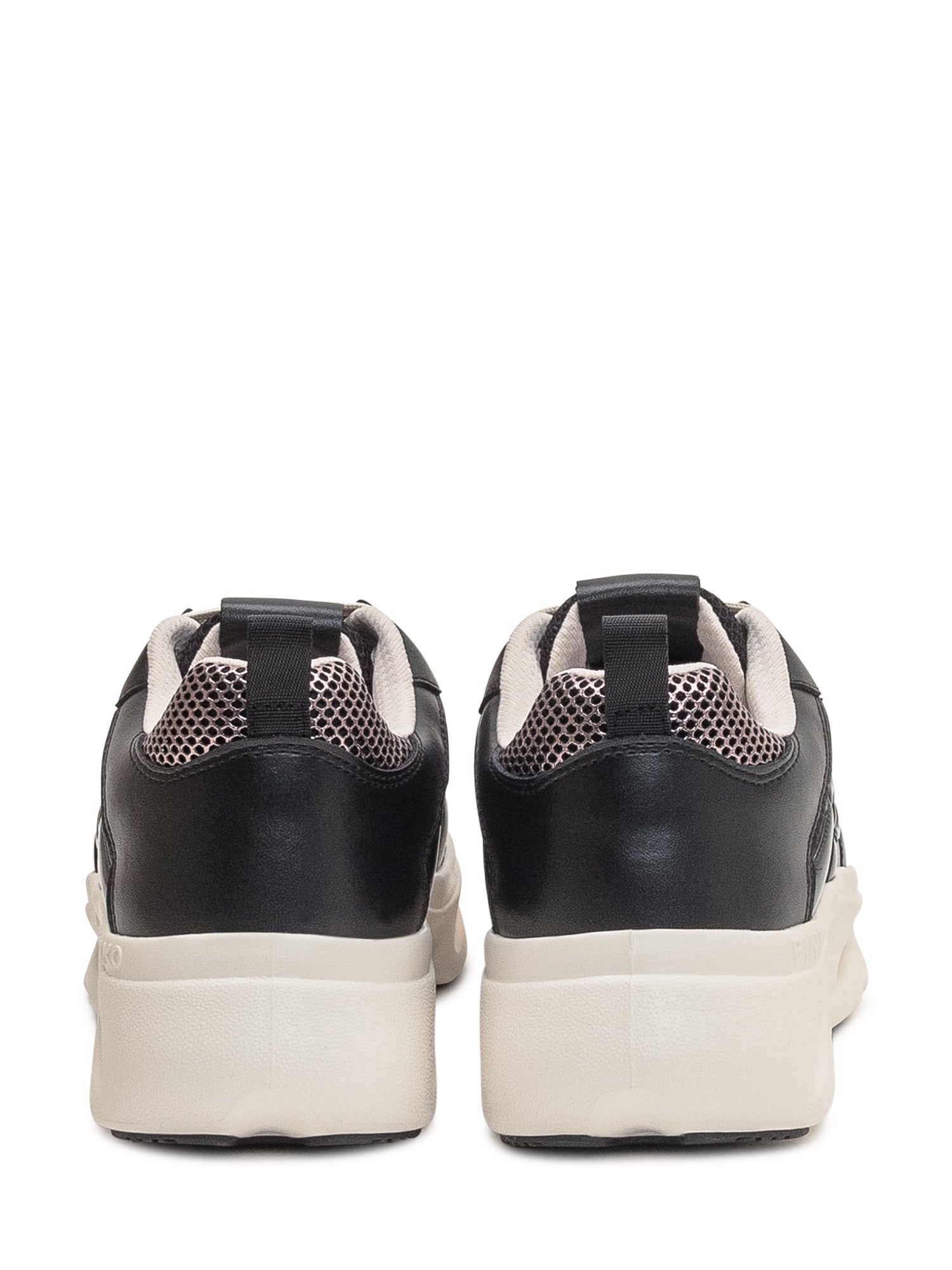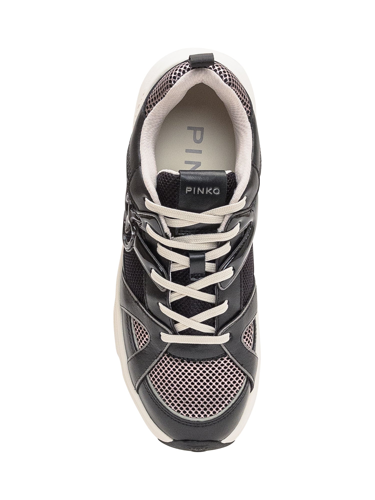 Pinko black mesh and leather sneakers with side Love Birds logo and contrasting chunky sole.