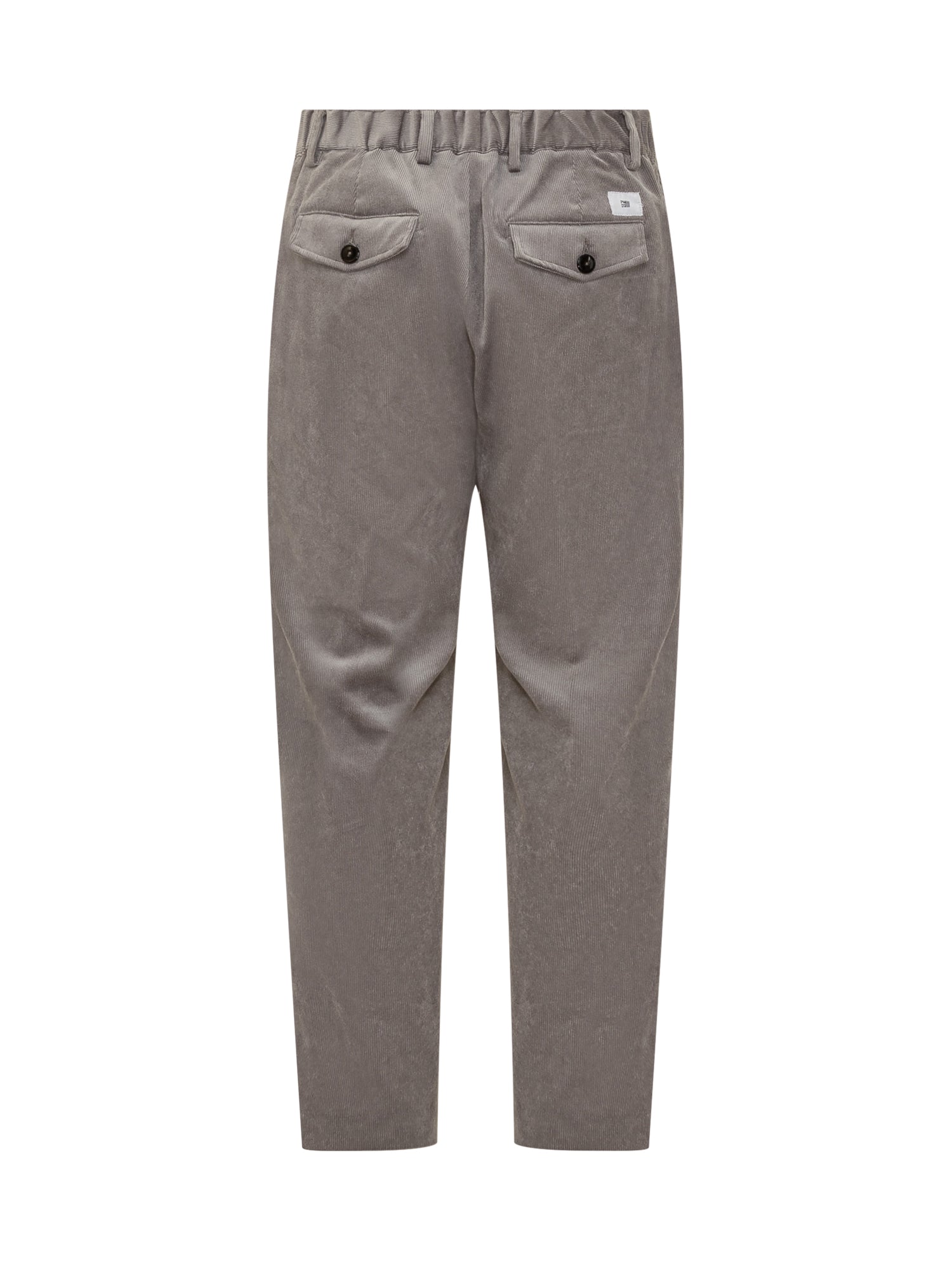 P.M.D.S grey corduroy pants with front pleats, side pockets and button closure.