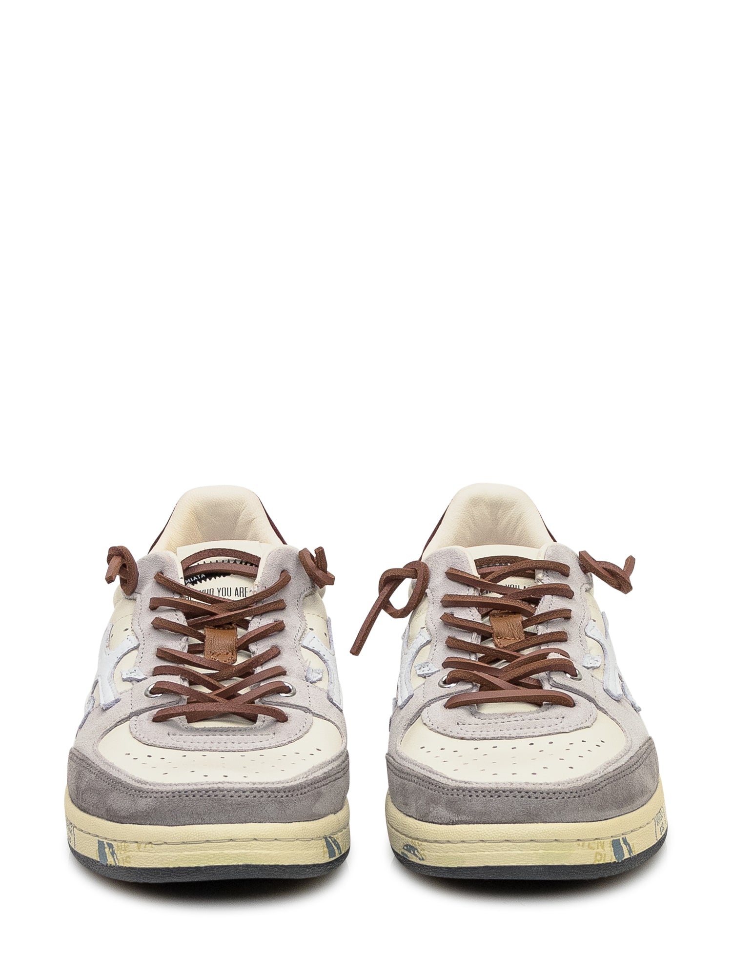 Premiata White and Grey Leather Suede Sneakers