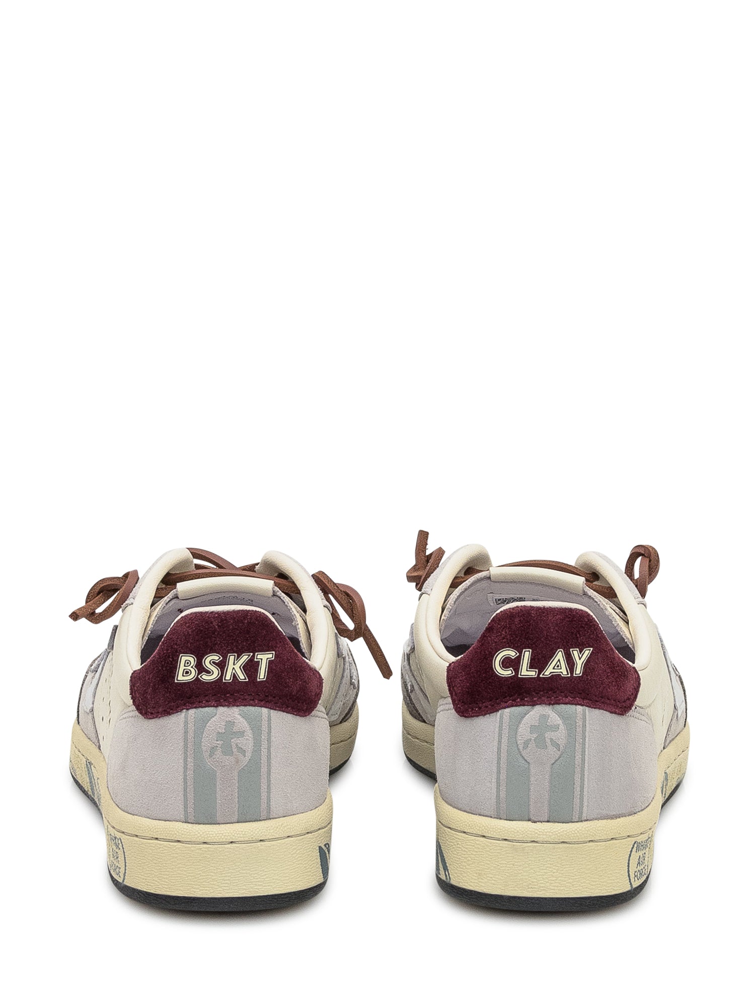 Premiata sneakers in white and grey leather and suede with burgundy details and side logo.