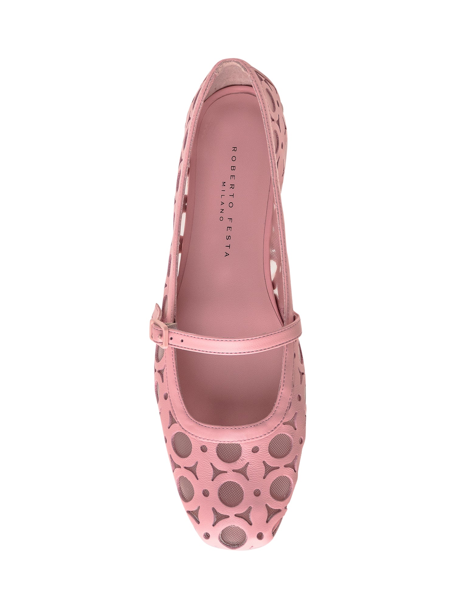 Powder pink ballerina. Side buckle closure. Blunt toe. Flat sole