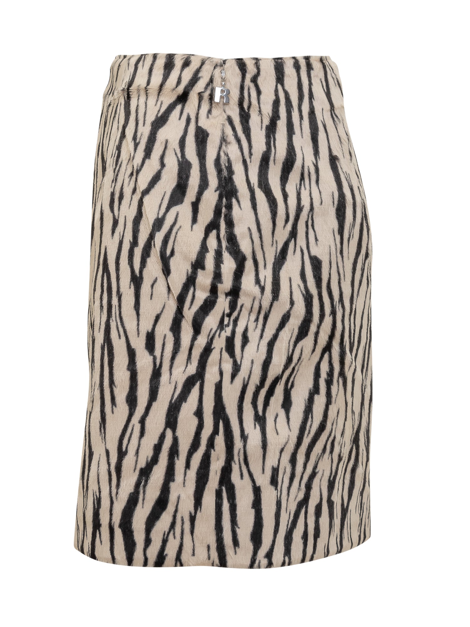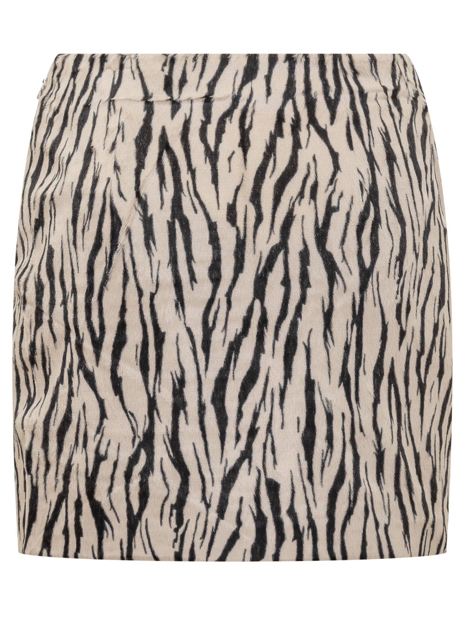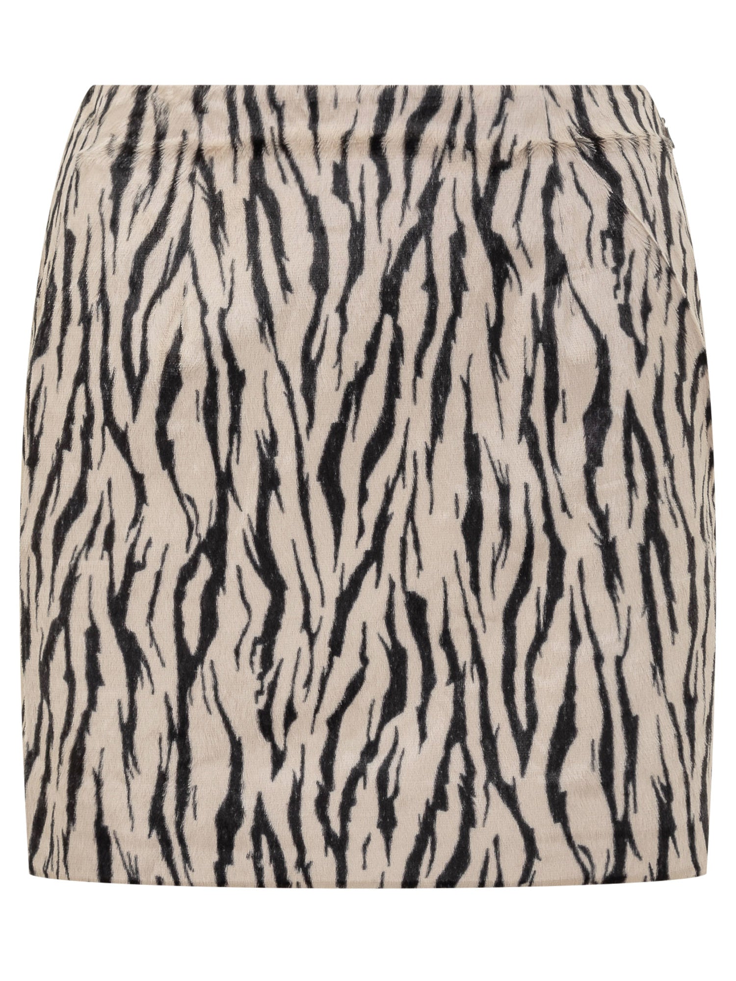 ROTATE mini skirt with zebra animal print on a beige background.