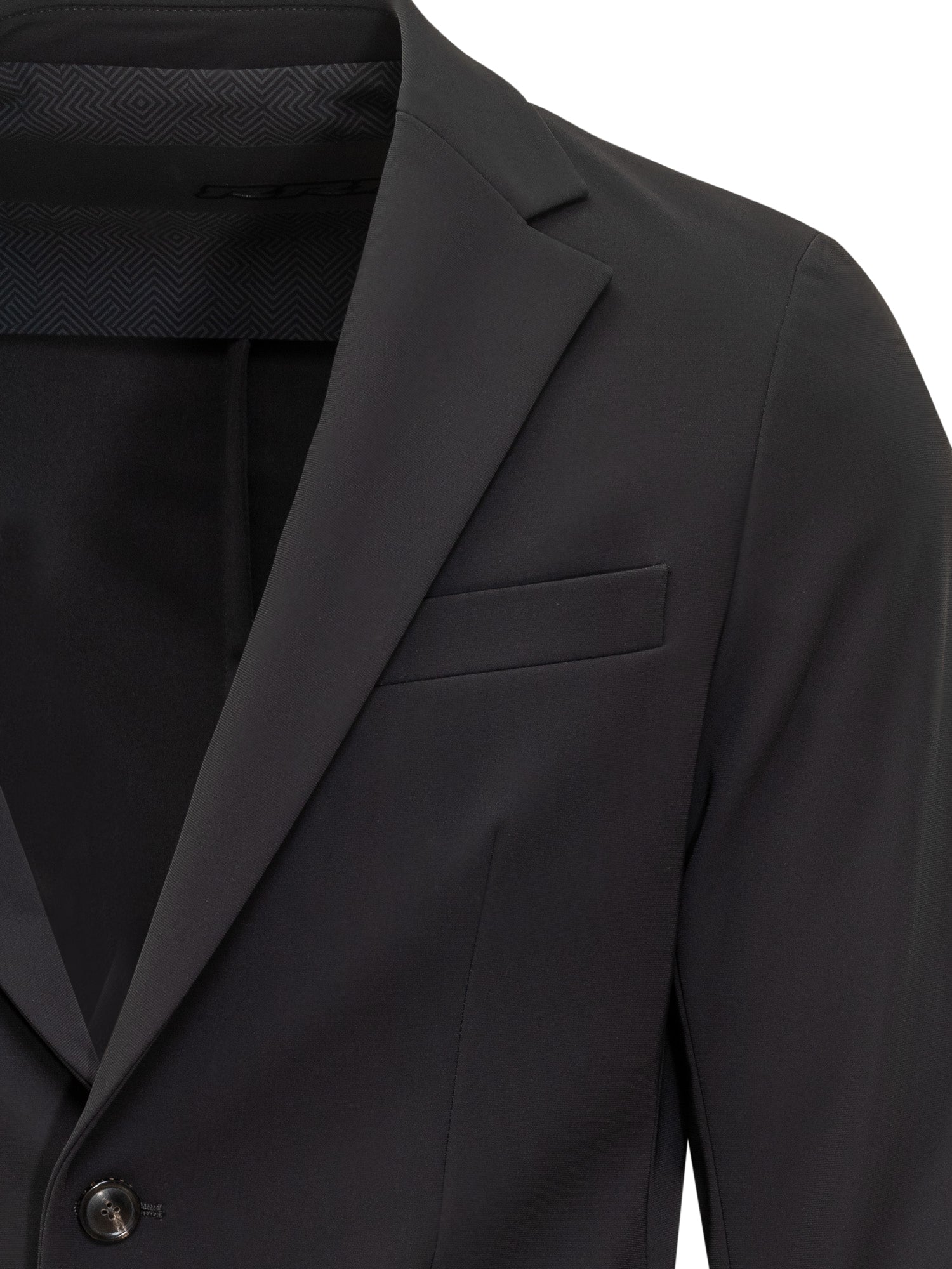 RRD black blazer in stretch technical fabric with two-button closure and flap pockets. Slim fit and refined design.