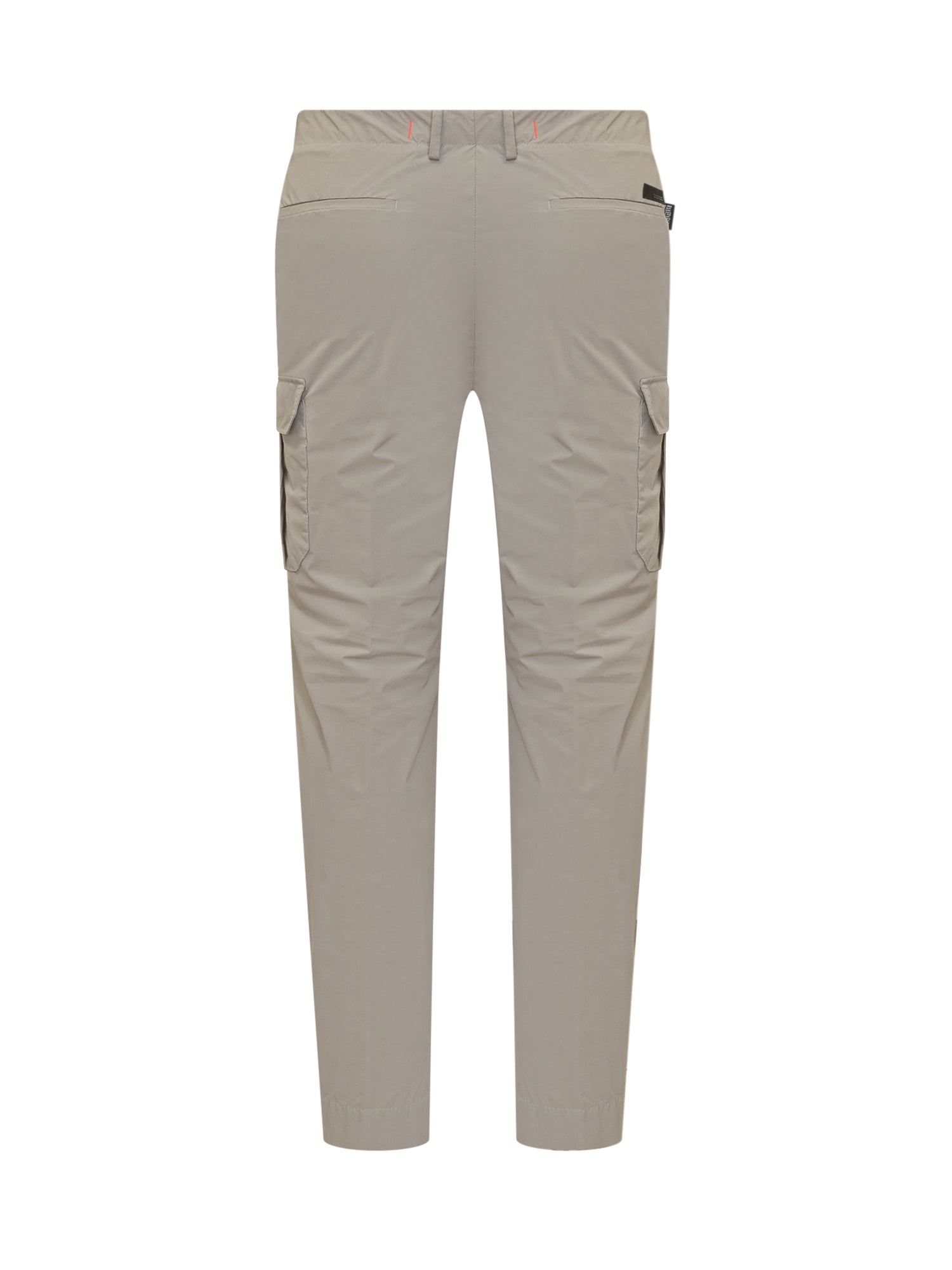 Beige cargo pants. Belt loops. Side pockets with flap. Back pockets. Side pockets. Button closure.