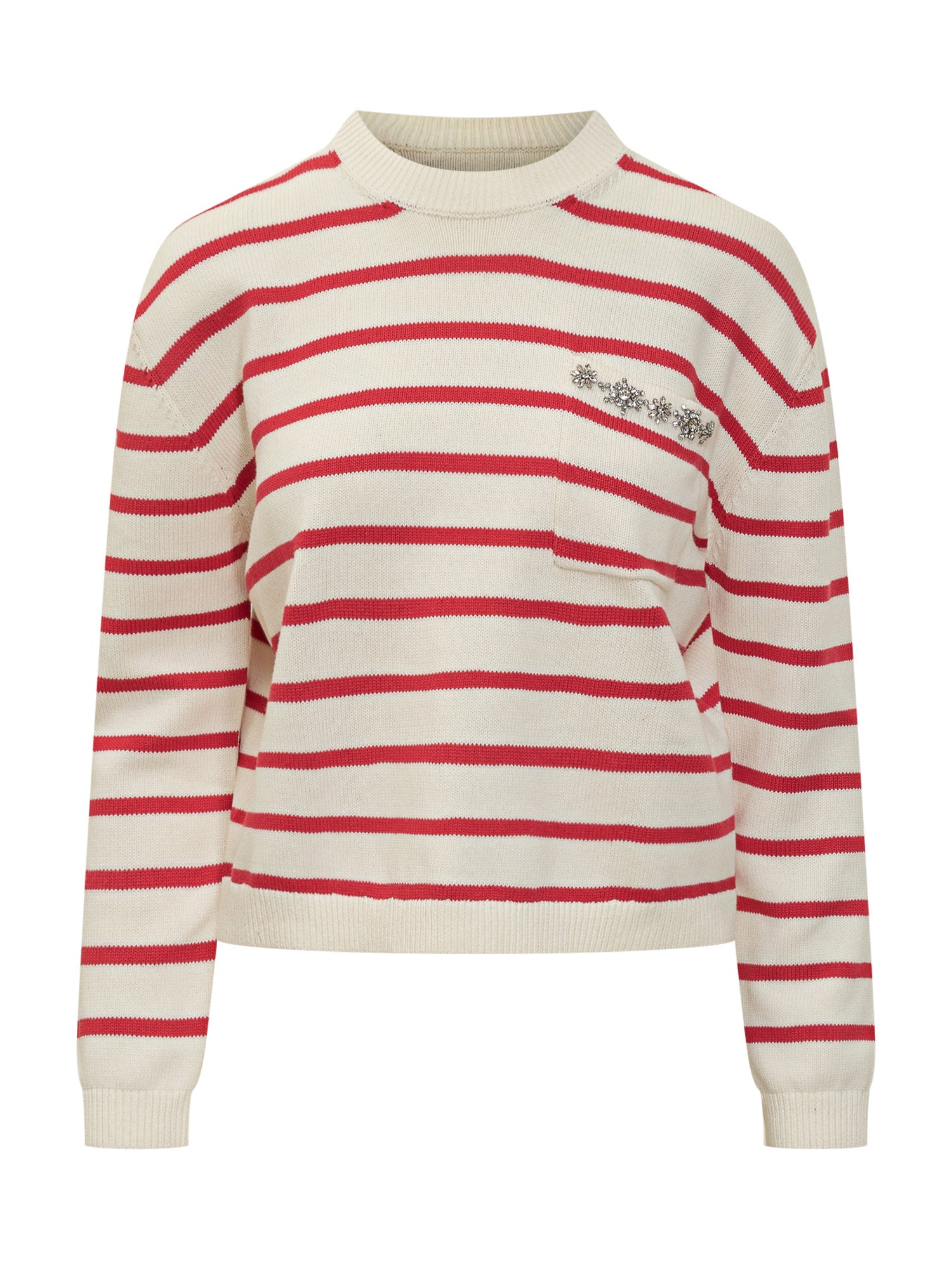 Crewneck. Chest pocket with jewel details. Long sleeves. Ribbed collar, hem and cuffs.