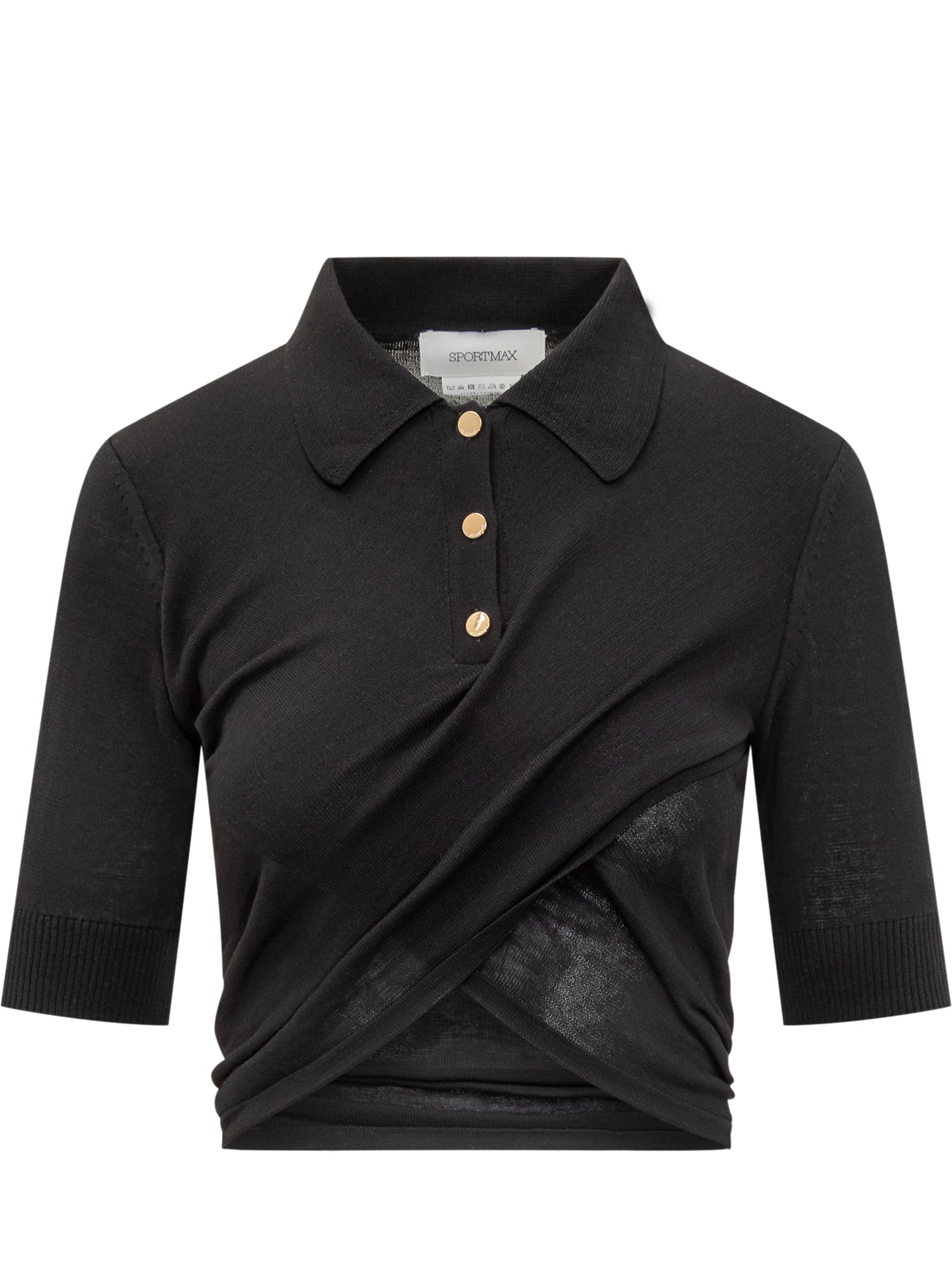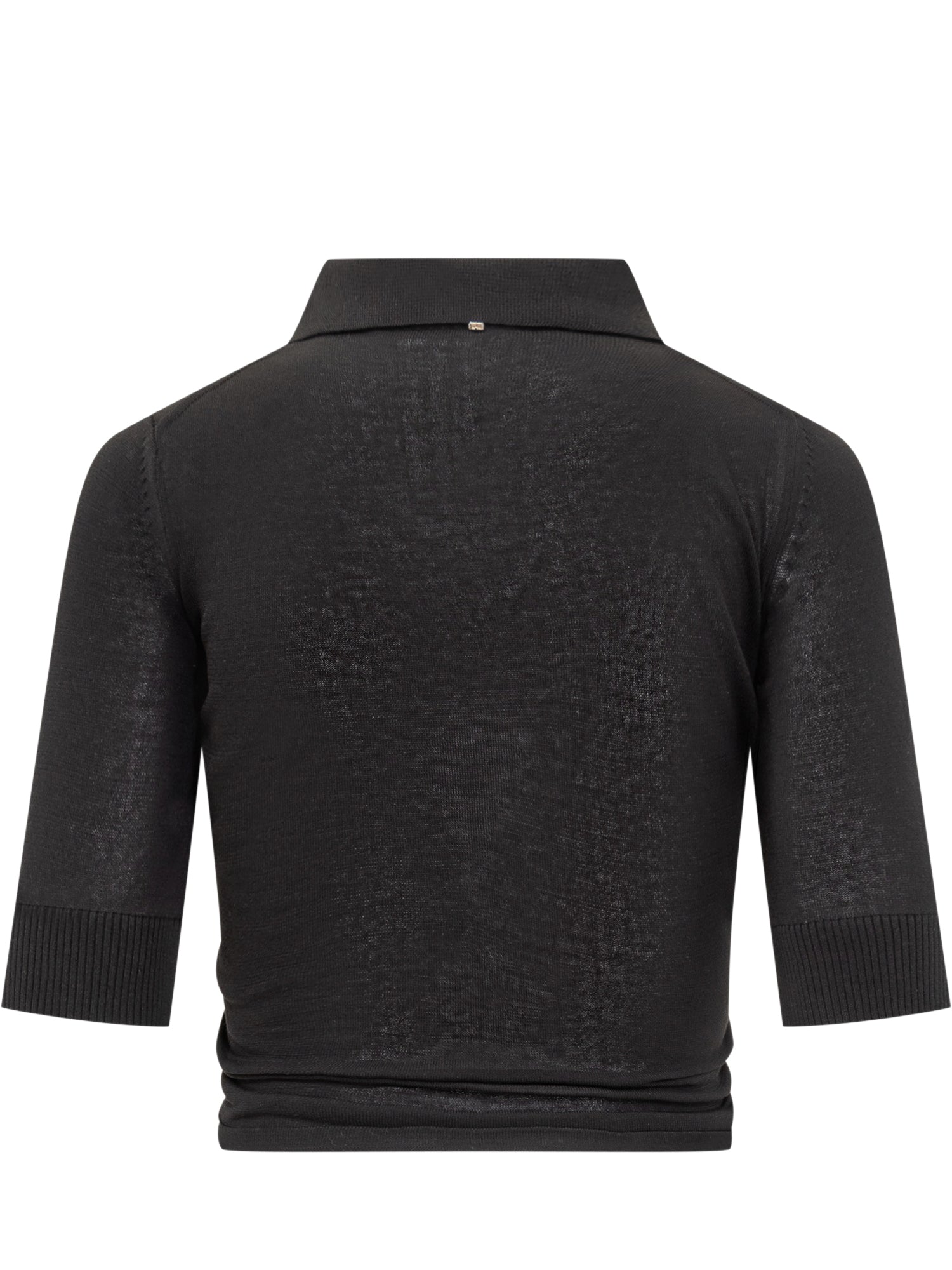 Point collar. Button closure. Short sleeves with ribbed hem. Cropped fit. Woven design.